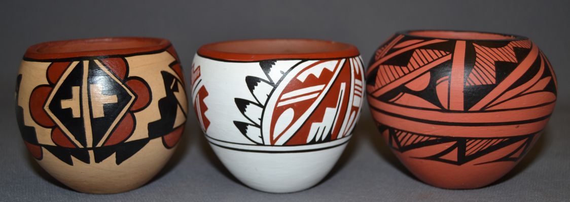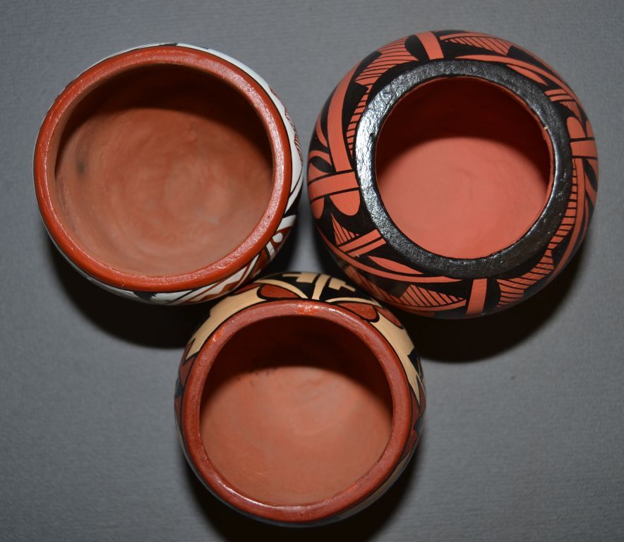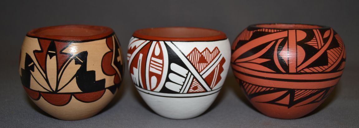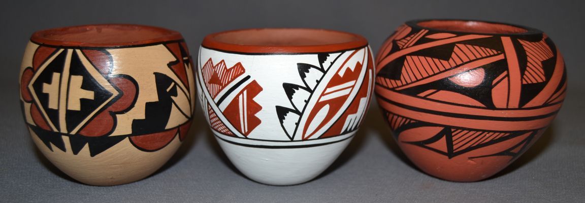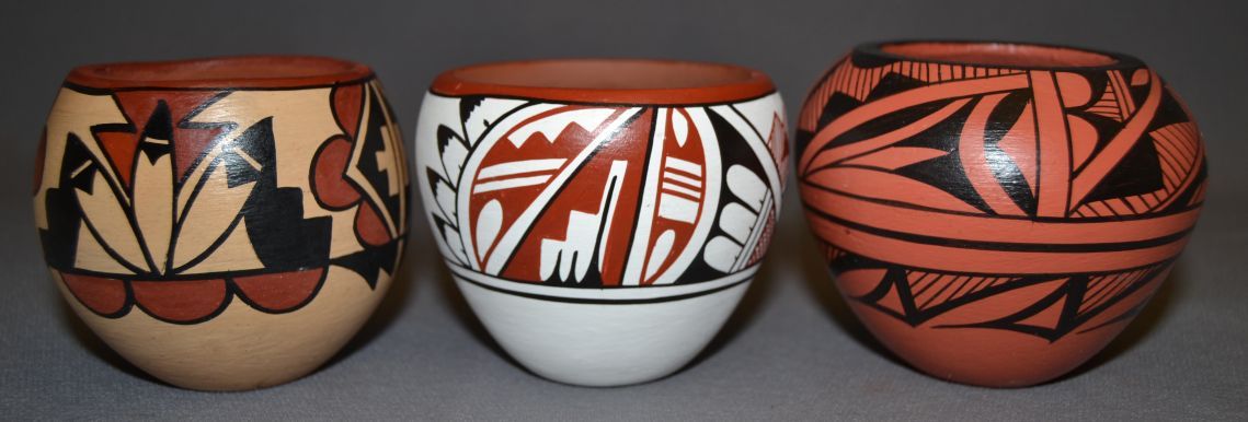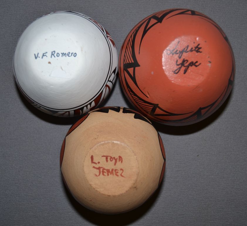 1980s 90s largest black on red signed 3"x3.75" medium red and black on white signed V.F Romero 3"x3.5" smallest red and black on tan signed L. Toya 2.75"x3"