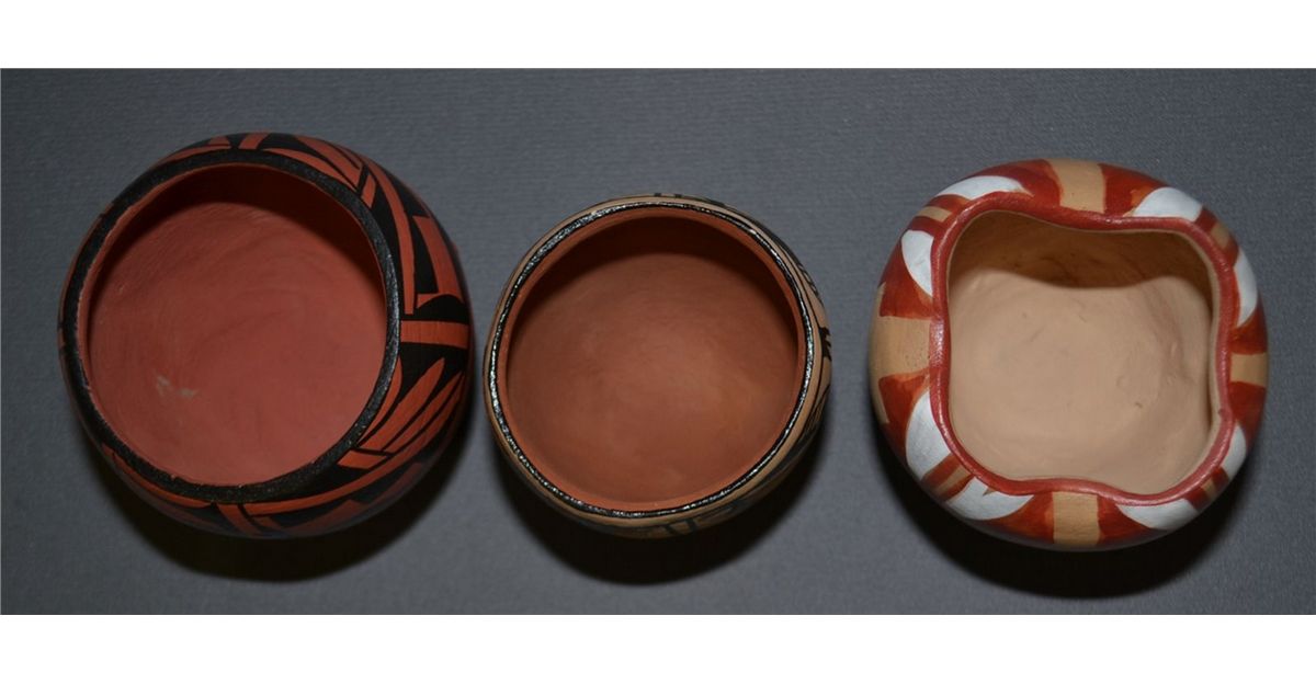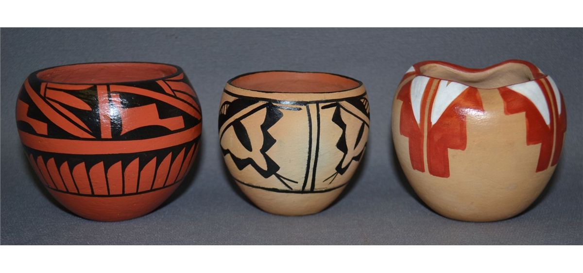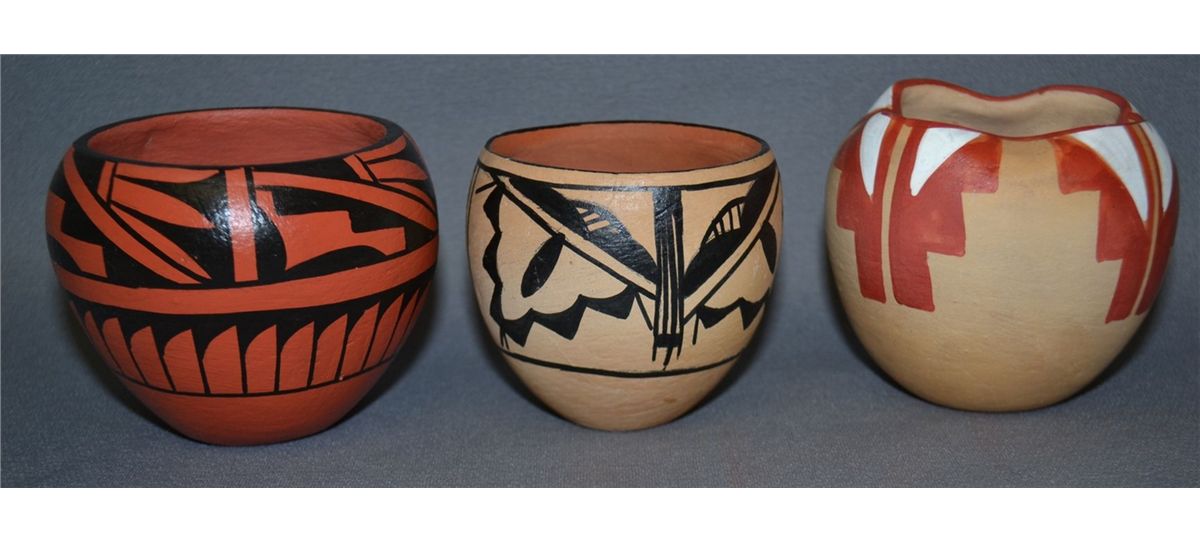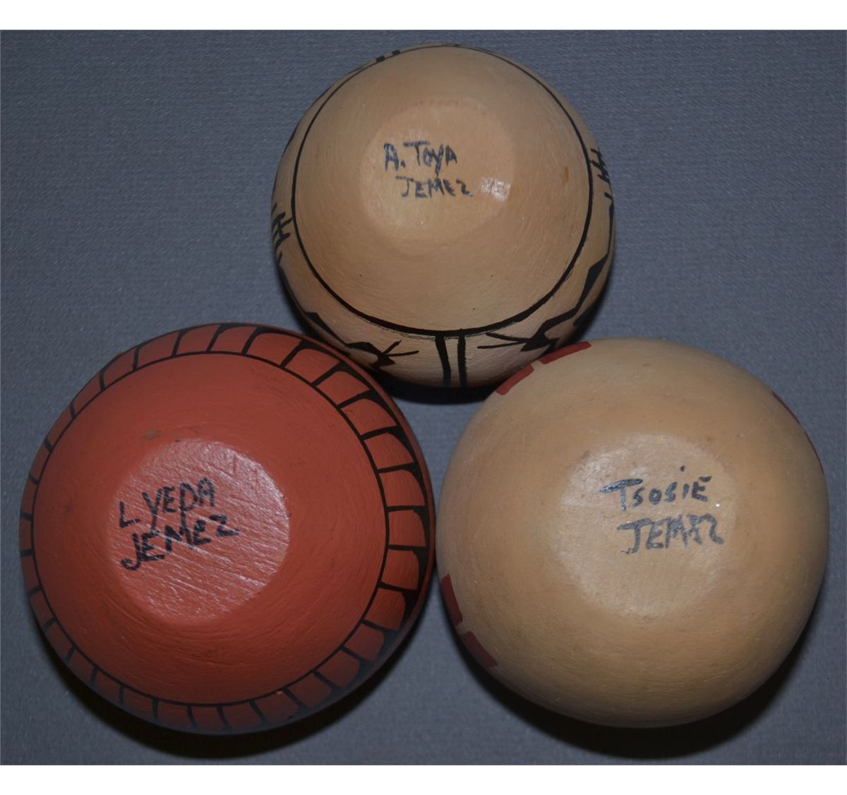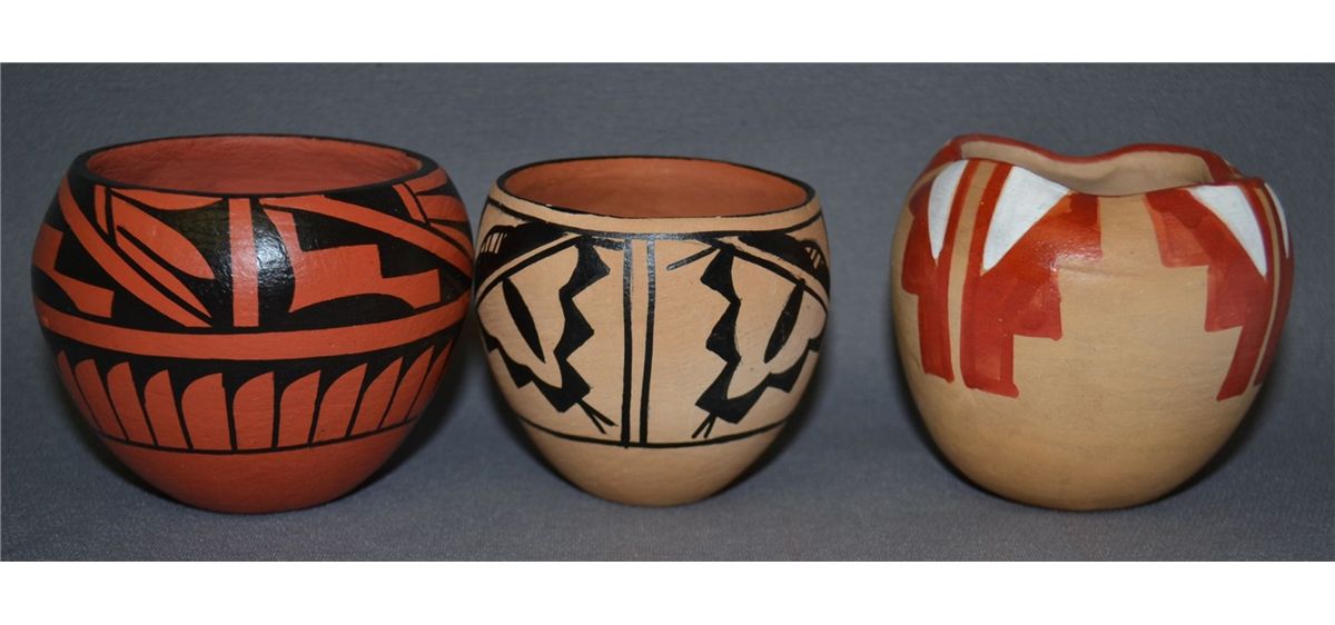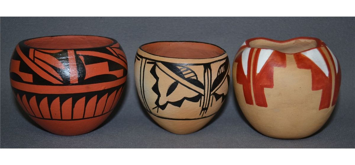 1980s painted geometric designs all signed smallest 3" x 3.5" largest 3" x 3.75"