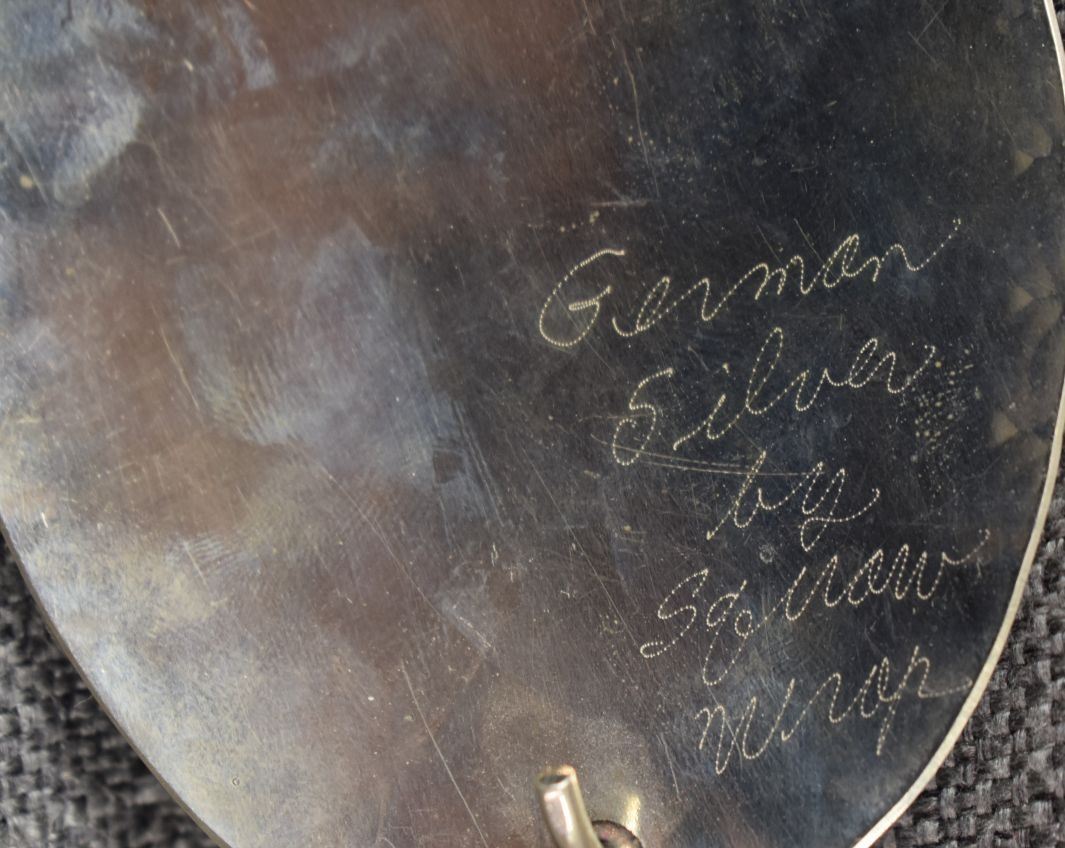 Damage that is visible in photos we do not note in description. Unless noted NO damage. All items have some amount of acceptable wear, scratches, nicks, missing stitches, etc. for their age. Measurements on paintings, pictures and prints are image size, paintings, pictures and prints that are in frames have not been examined outside the frame. Painting glass is not insurable Alvord/Munn auction is not responsible for brakeage of glass or frames during shipping. Bracelets measurements are width, inside circumference, opening. Weight on jewelry includes stones, leather from Concho belts and bolos removed when possible.