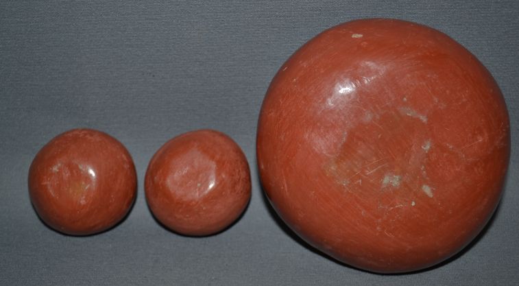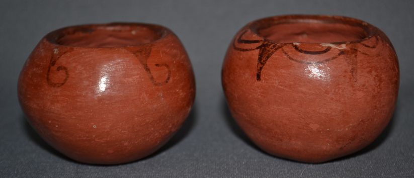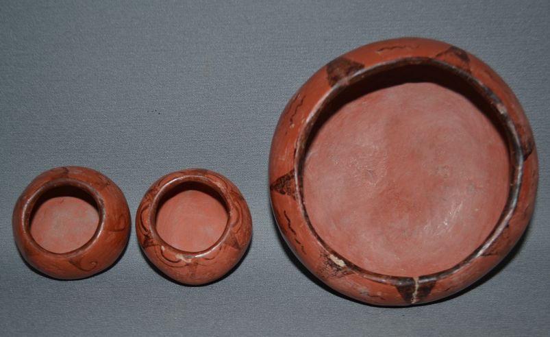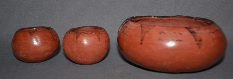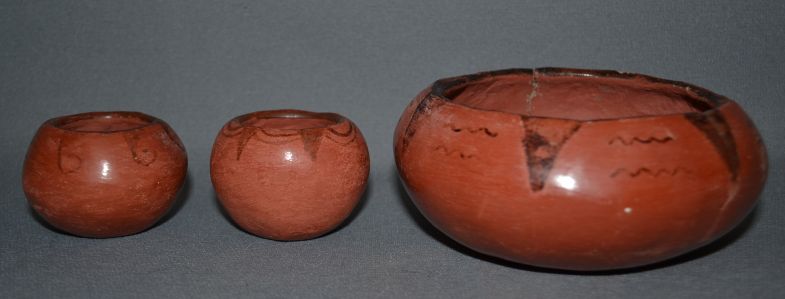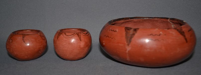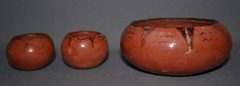1950s 60s black on red geometric design large one has crack and paint loss 2.25 "x5.75" two small ones 2" x 2.5" each