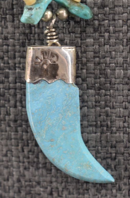 Three Native American necklaces. One Navajo Bead necklace with various stones, two pueblo nugget necklaces one with turquoise claw pendant. Longest 20.5"