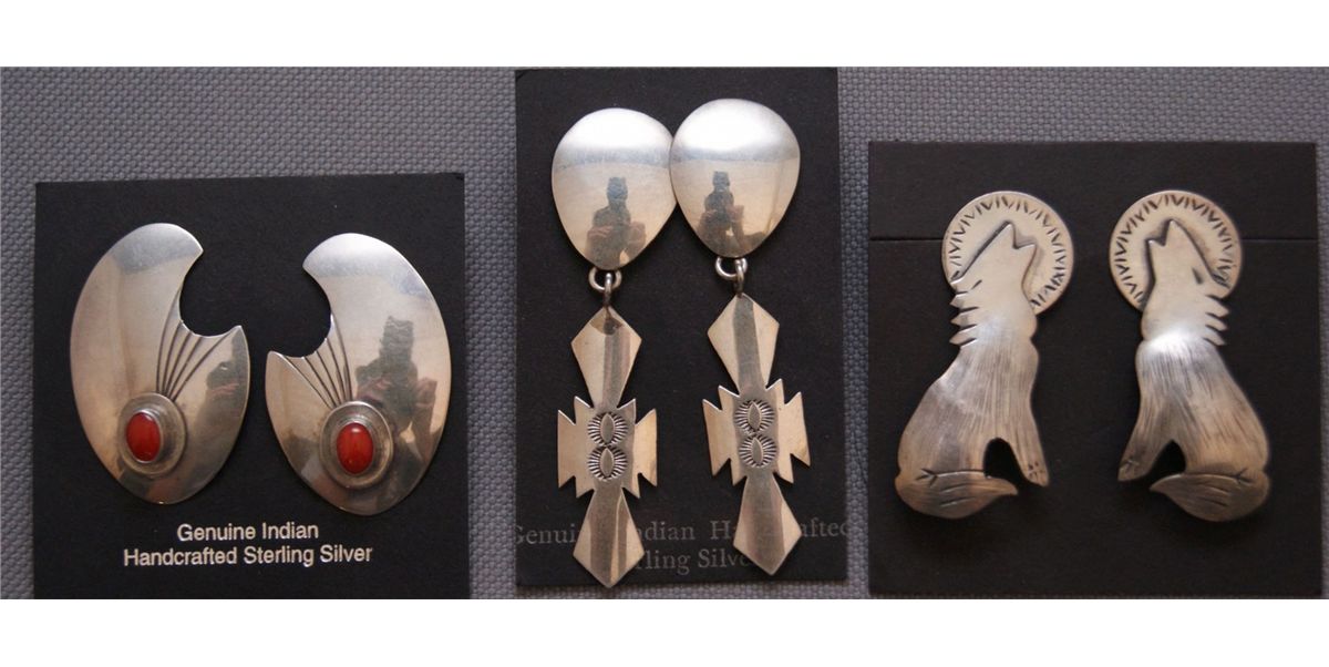1970s sterling sliver, one pair has coral setting, largest pair 2.5" long