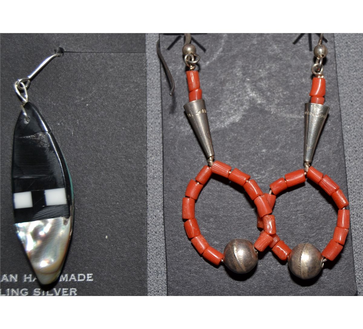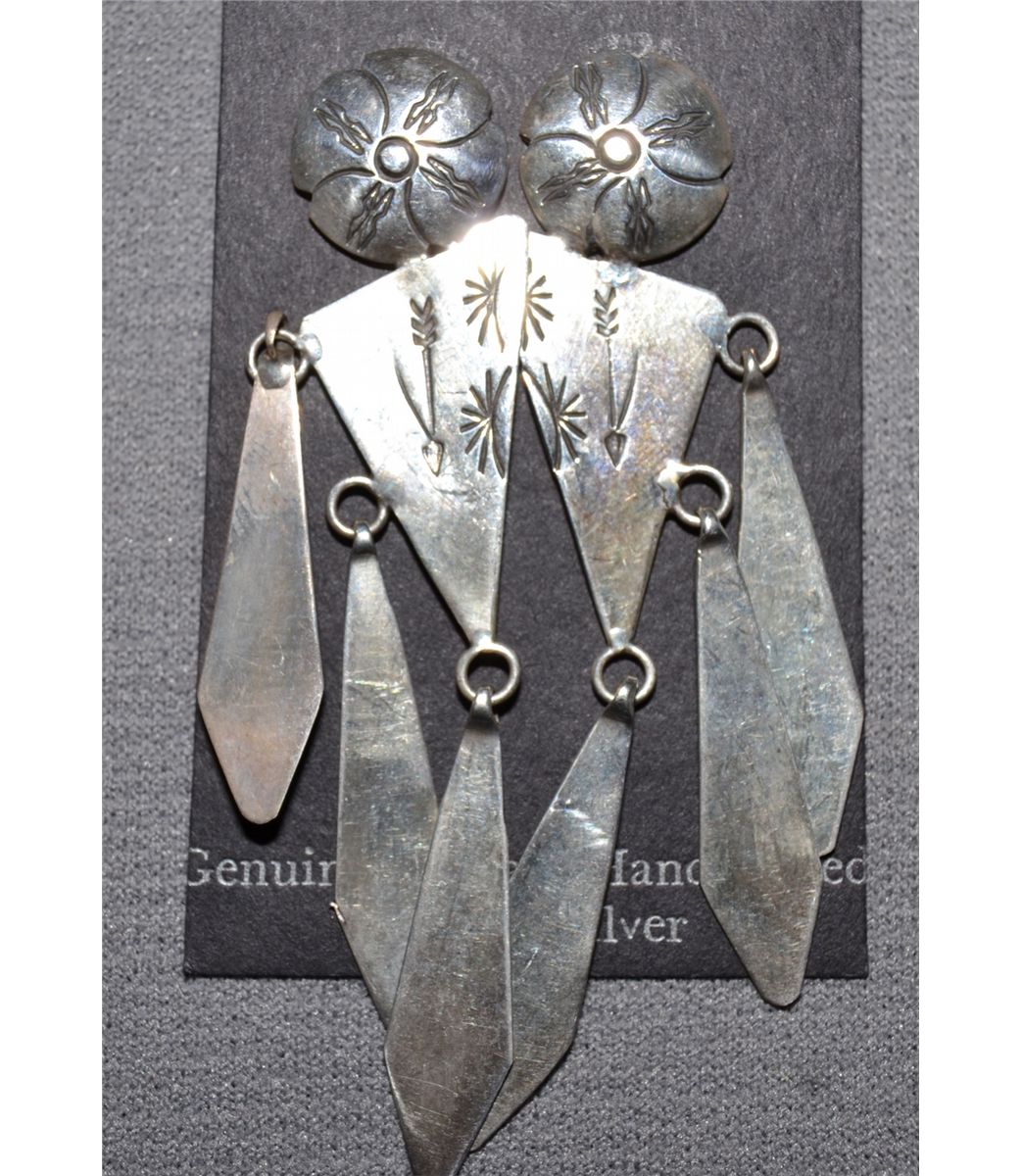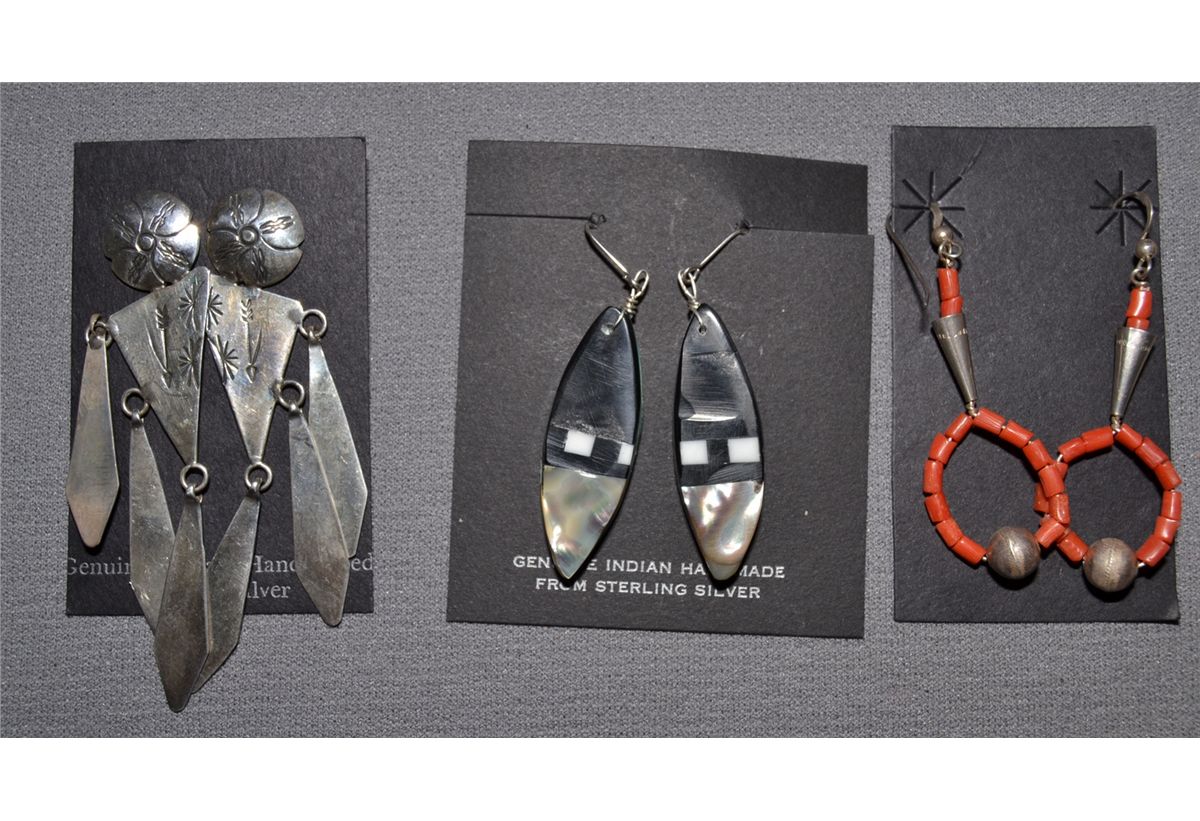 1980s 90s sterling silver stamped design 2"x1" overlay on turquoise pair 1.25"x.5"