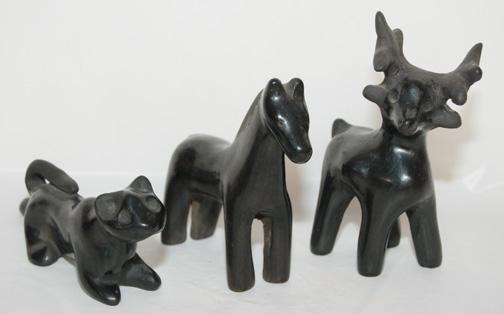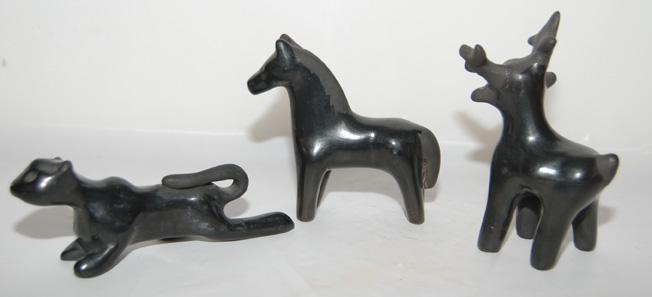 1970'S horse, cat & deer, antlers borken & glued, 4" x 4.5", 5" x 4" & 2" x 6"