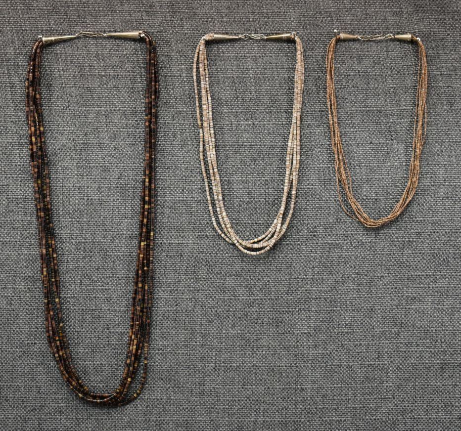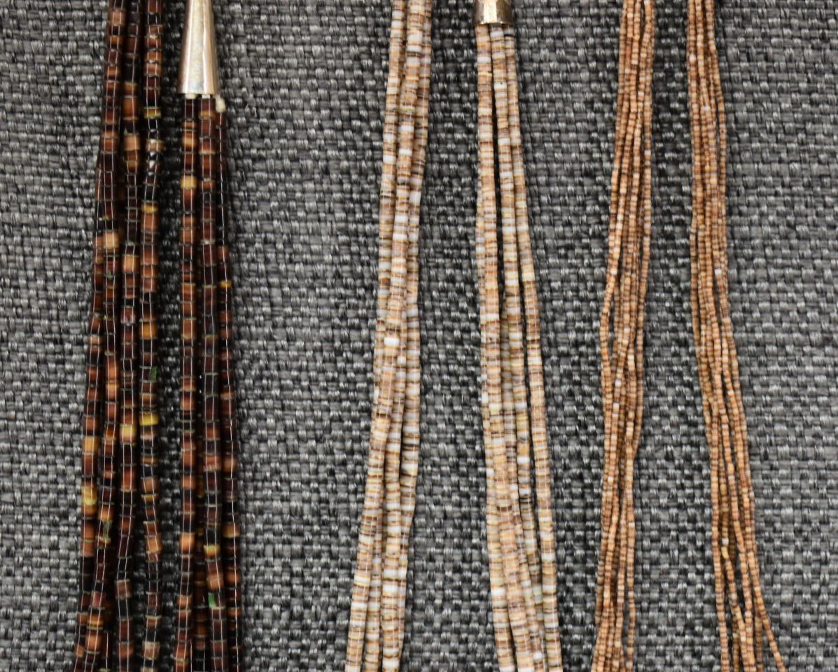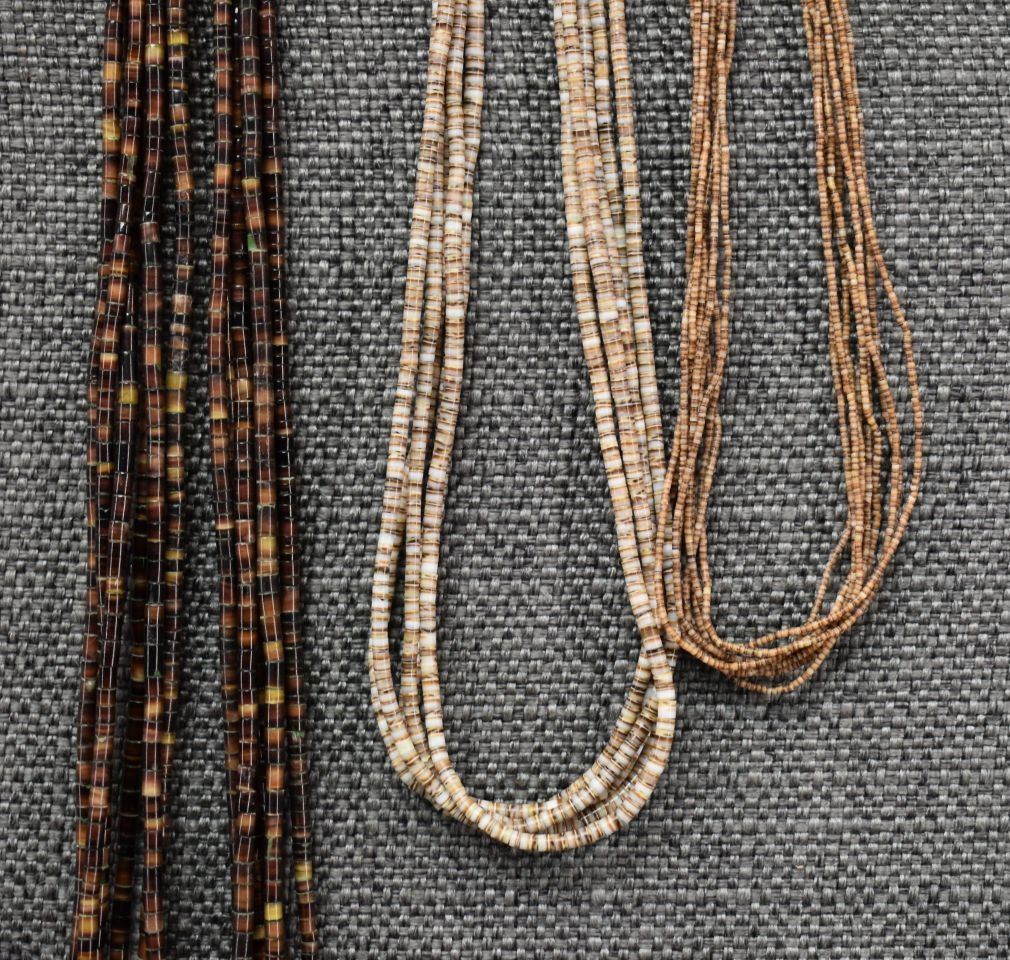 1980's Santo Domingo, shell heishe necklaces. Longest is 24'' long