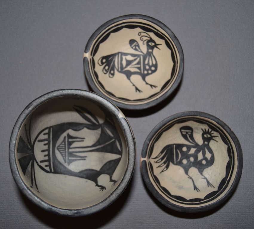 contemporary all are black on cream bird design largest 2.25"x3.5" medium .75"x3.25" smallest .75"x3.25" all signed with logo