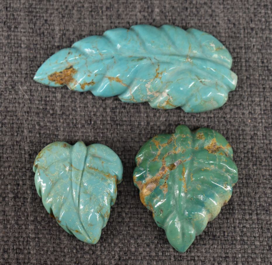 1970's carved turquoise leaves largest is 3'' x 1.25'' total weight 300ct