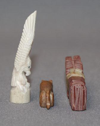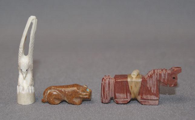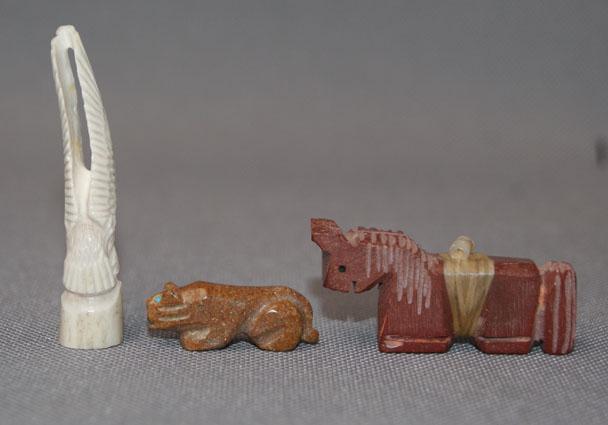 1980s 90s eagle carved from horn signed with logo horse is Pipestone tallest one 2" x 2.5"