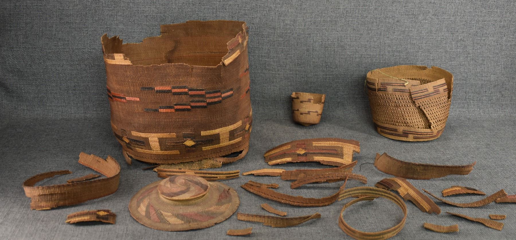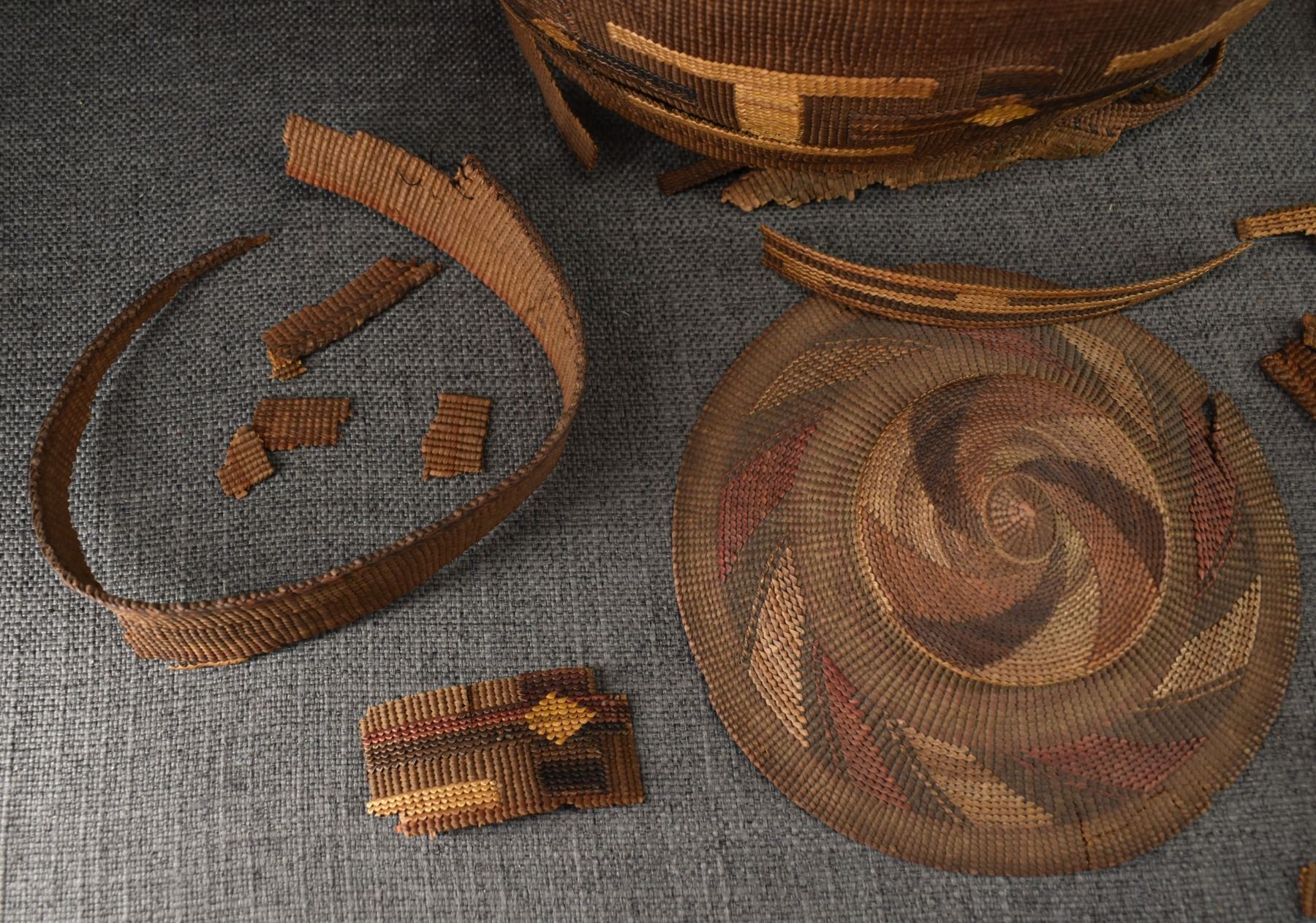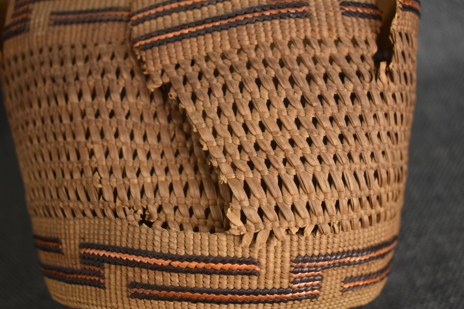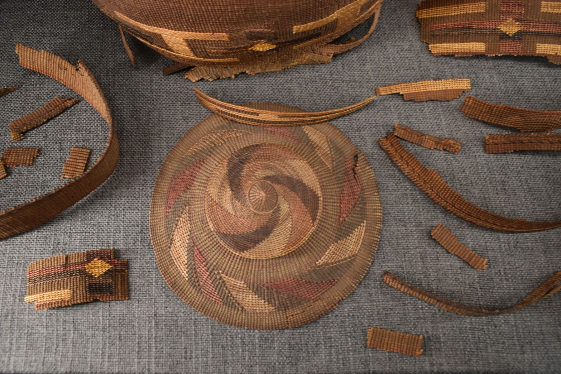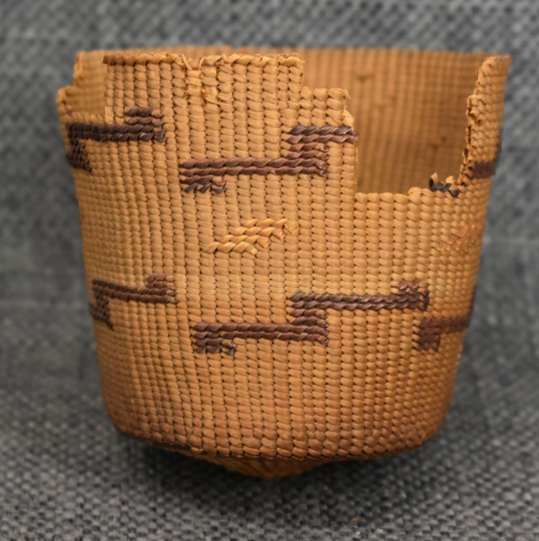 19th century Tlingit basketry items all are damaged, largest item 9'' tall