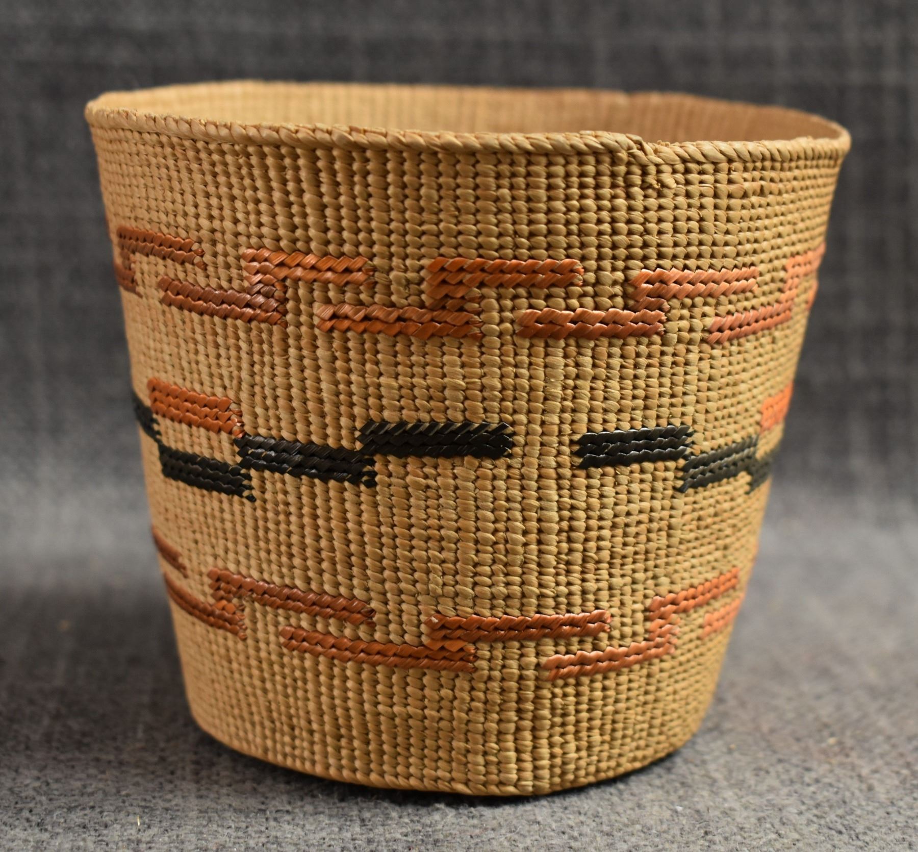 1940's Tlingit , hand woven banded design basket. 3'' x 4'' no damage