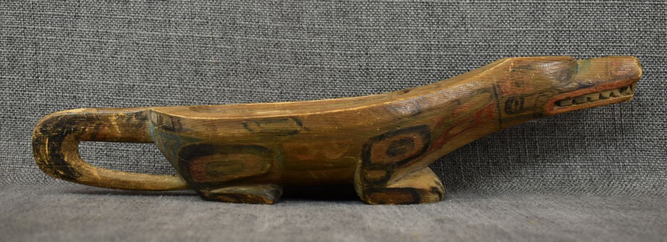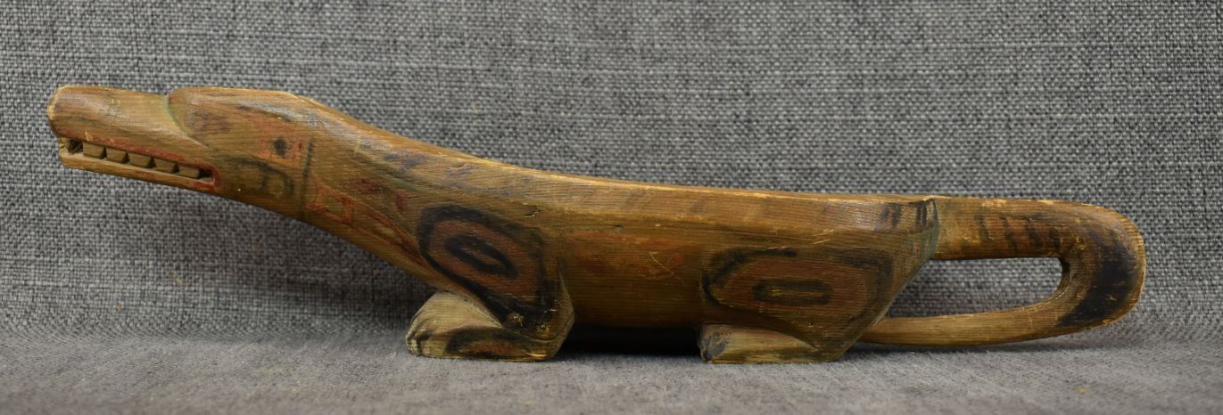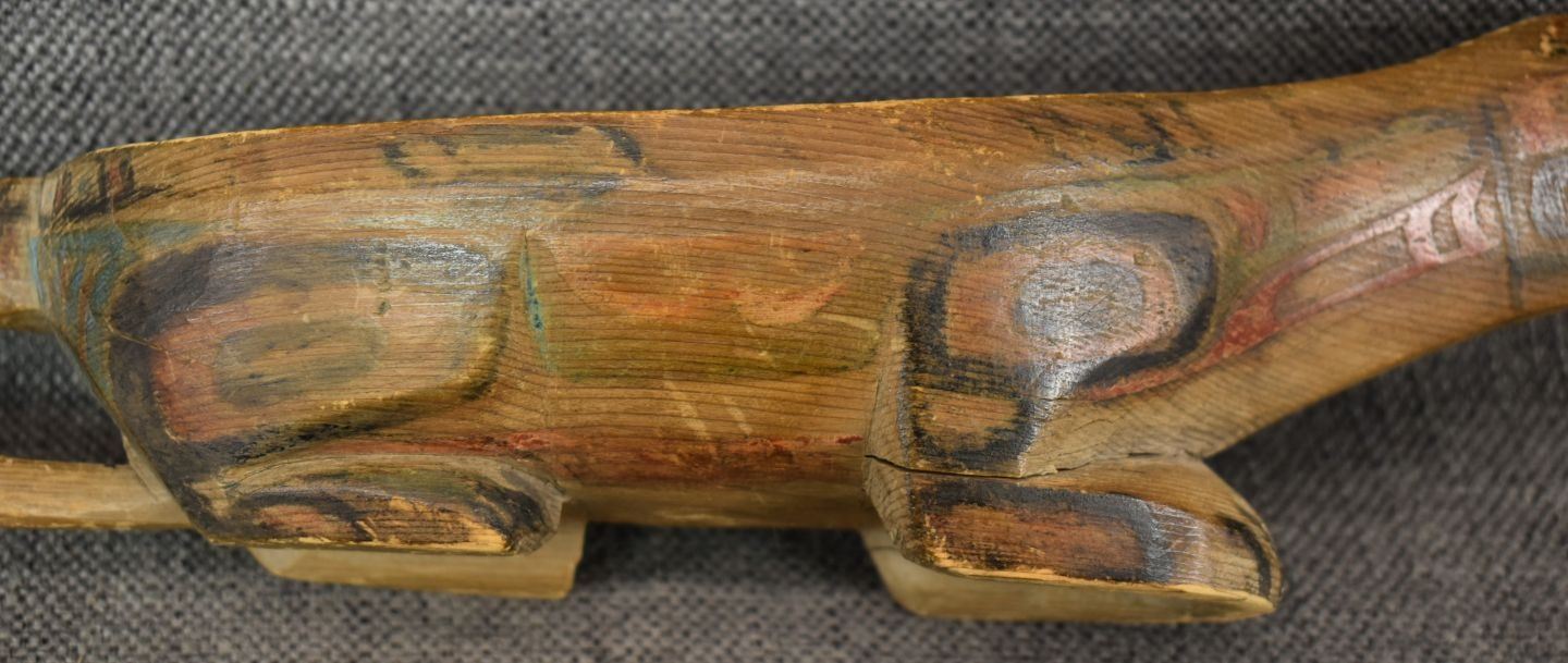 1950's Tlingit, hand carved cedar with painted animal effigy design 3.5" x 14.5" x 3.5"