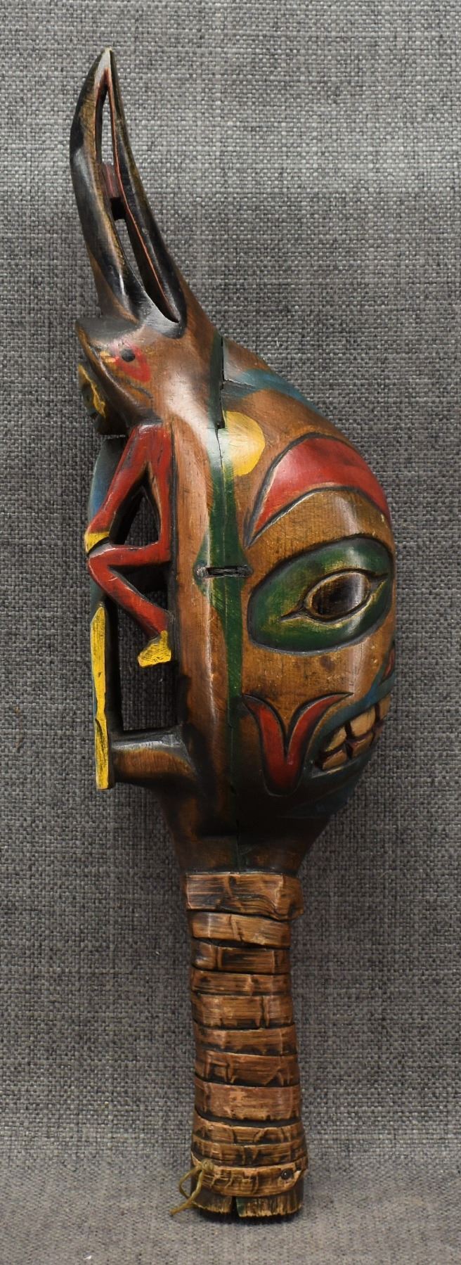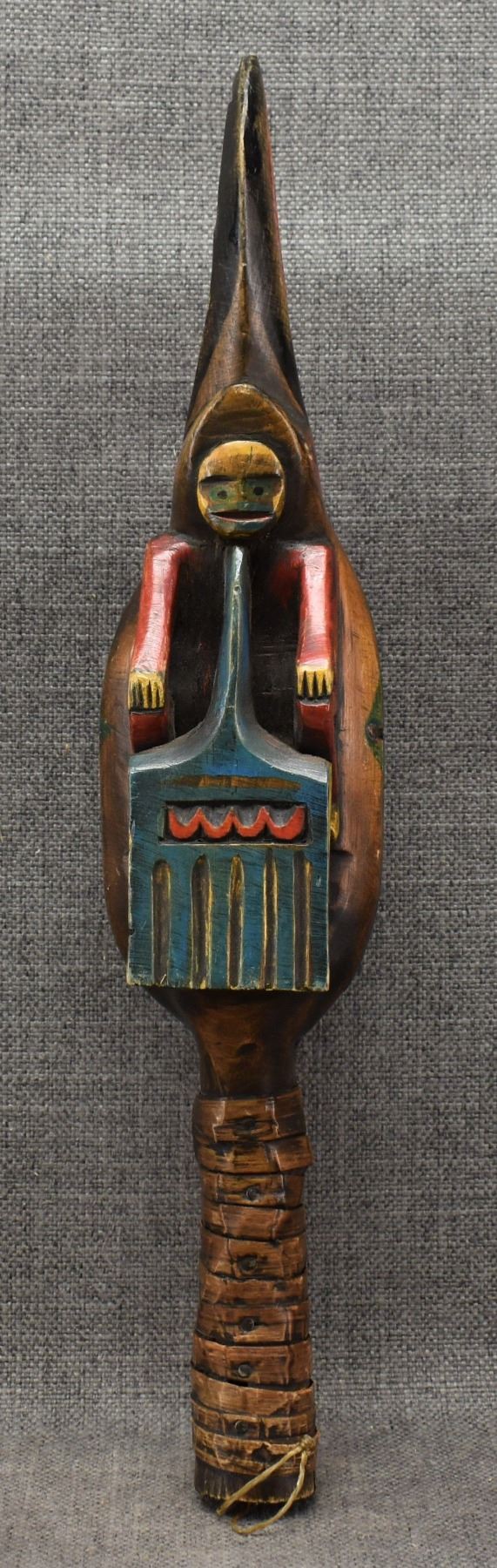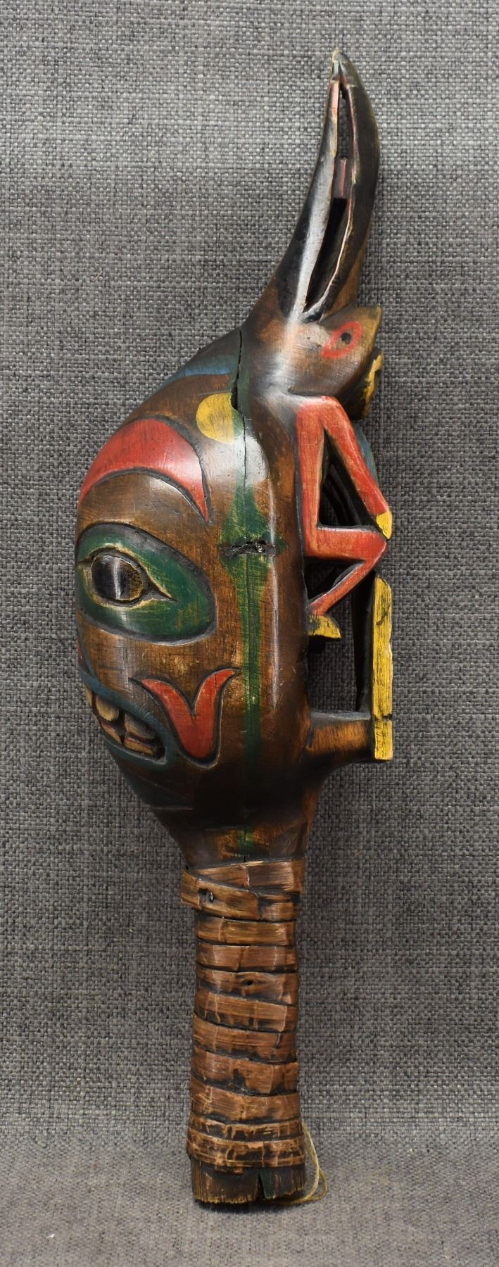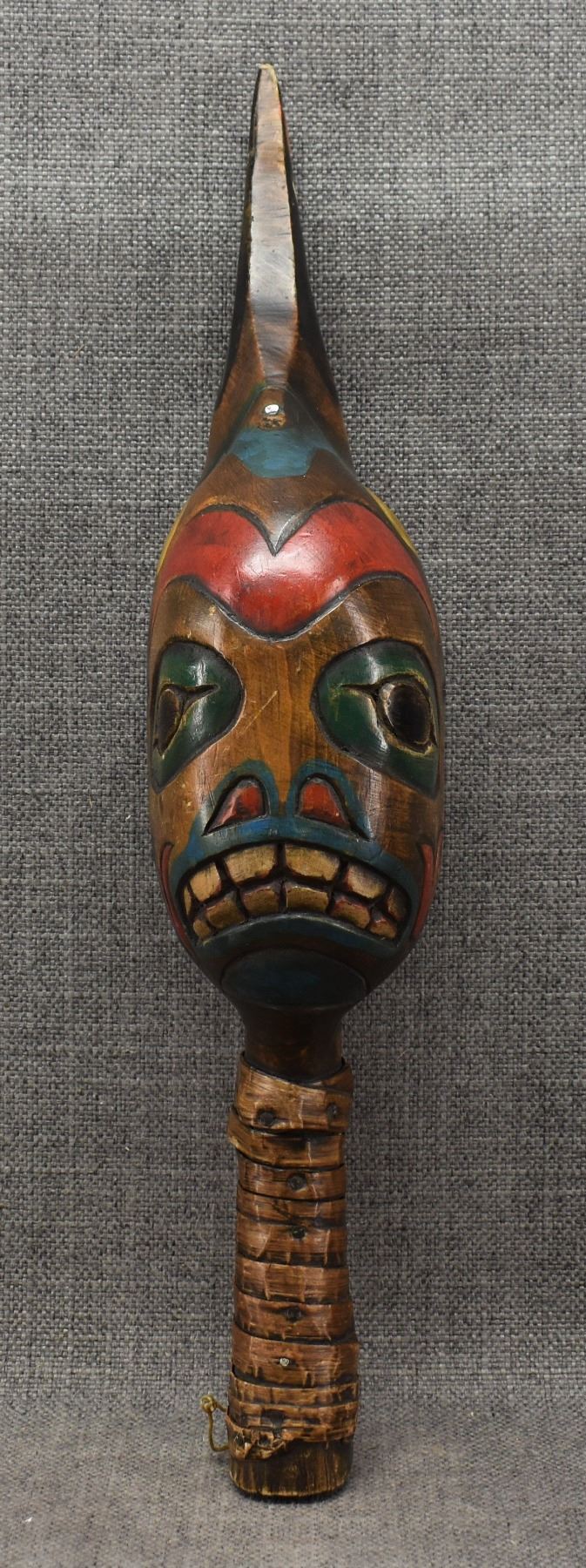 20th century Tlingit, carved and painted cedar with cedar bark wrapped handle 16.25" x 4.25" x 3.25"