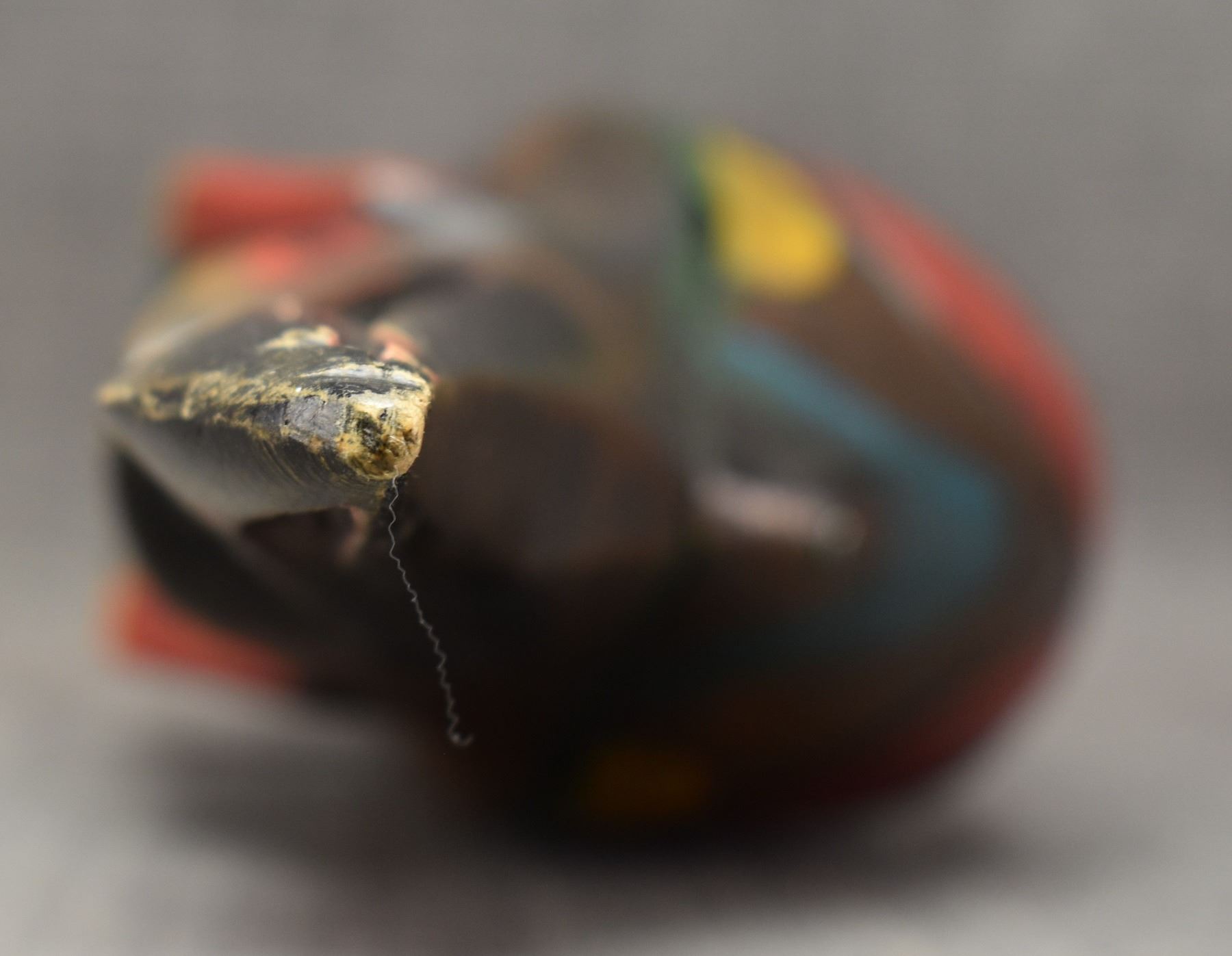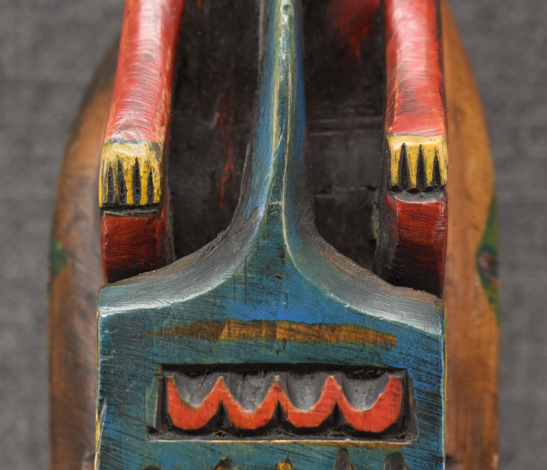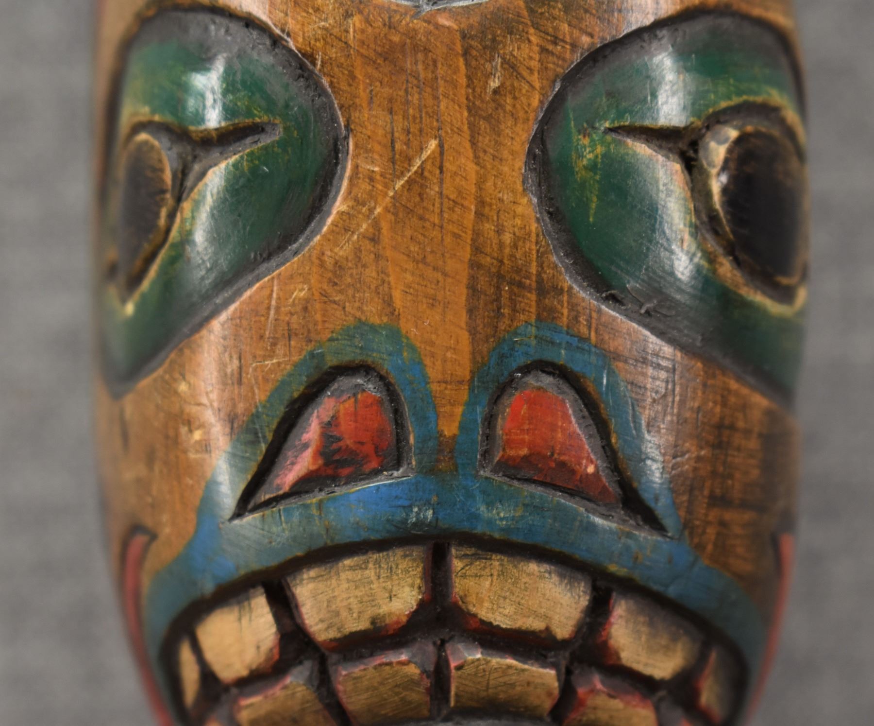 20th century Tlingit, carved and painted cedar with cedar bark wrapped handle 16.25" x 4.25" x 3.25"