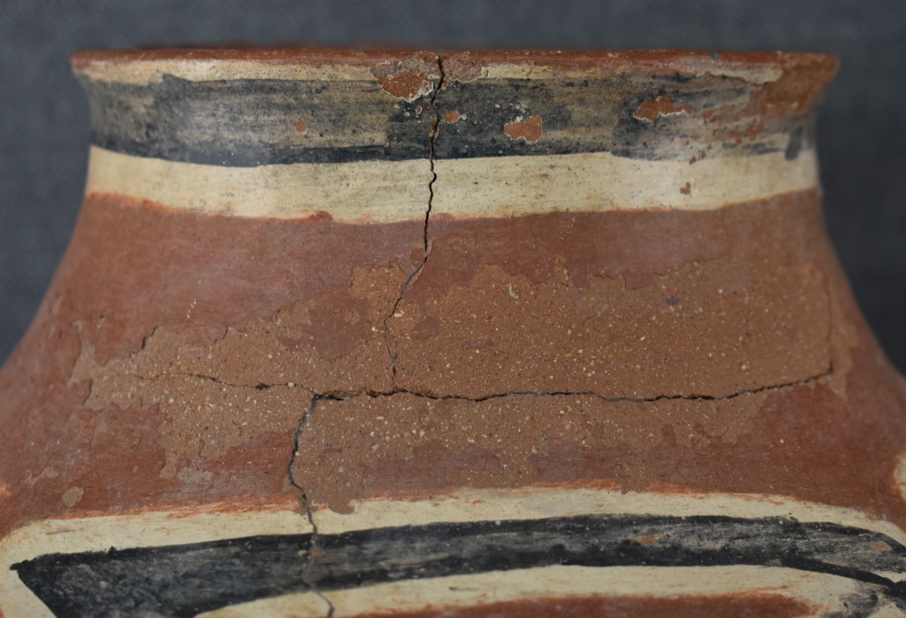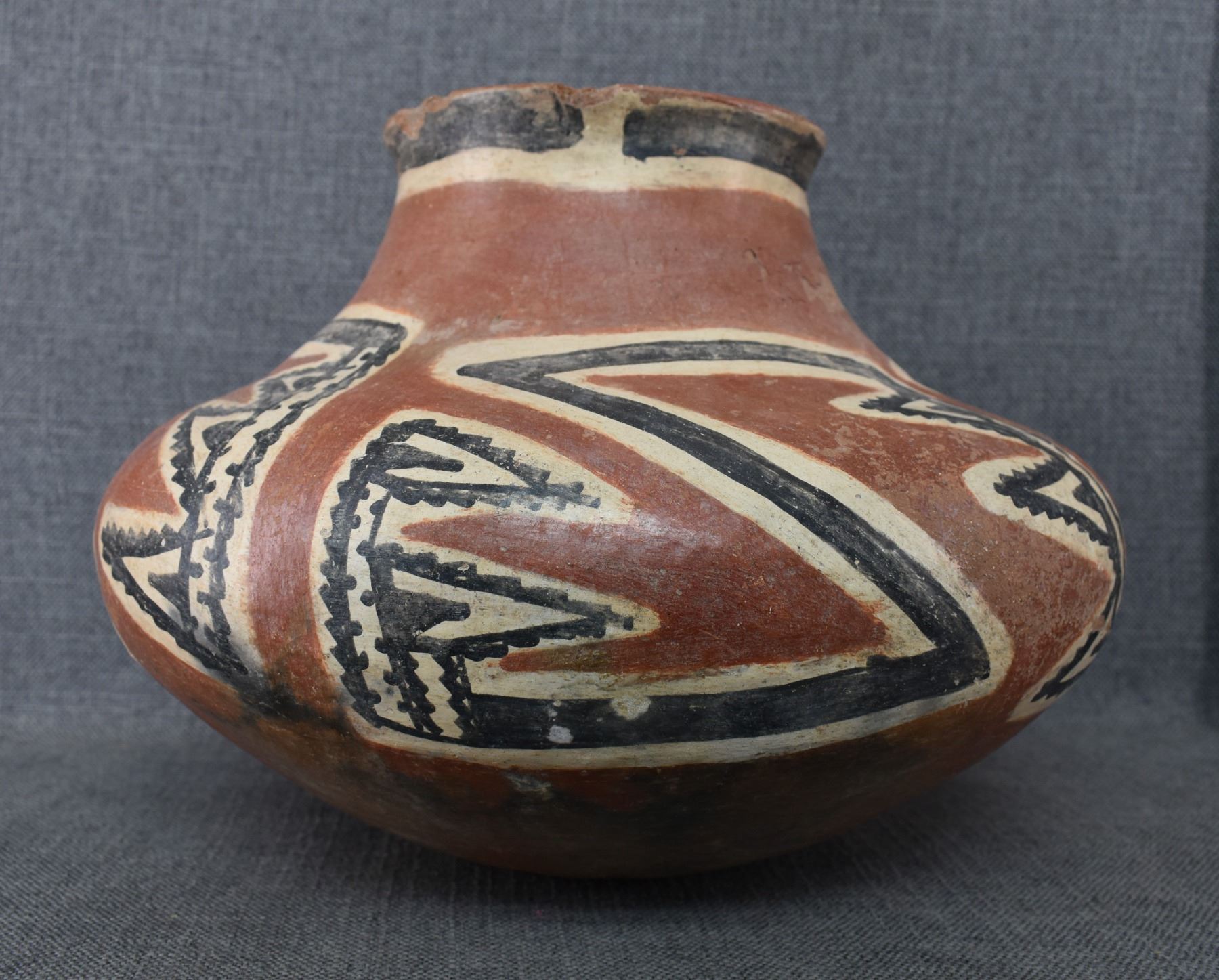 prehistoric tonto. hand painted polychrome design has restoration 11'' x 14''