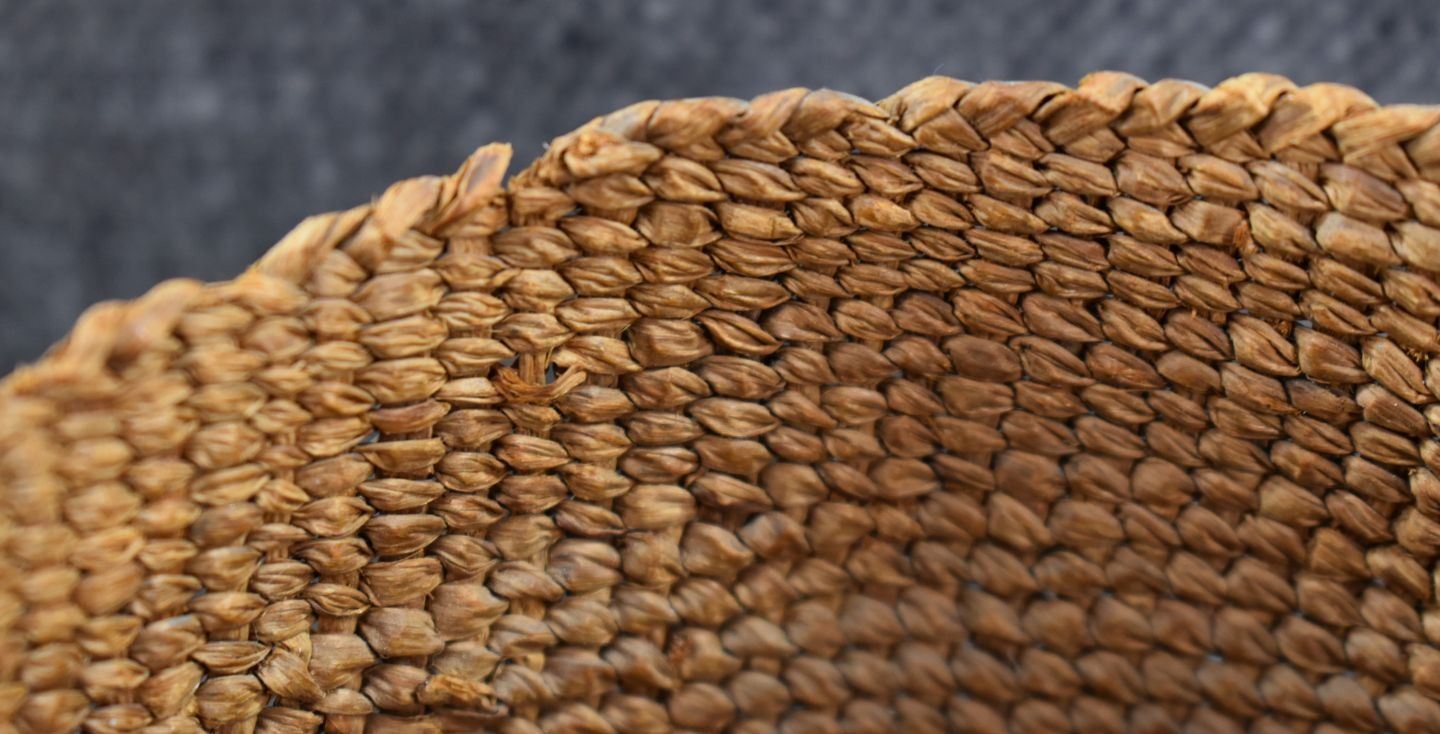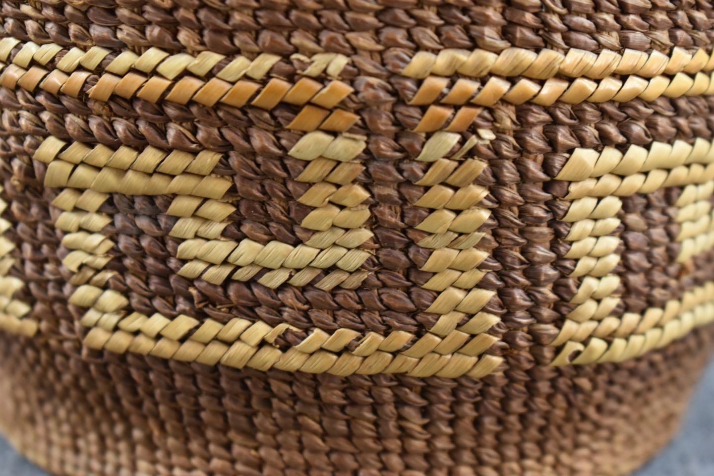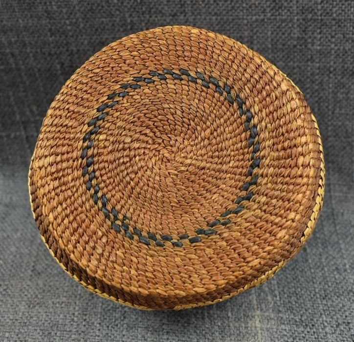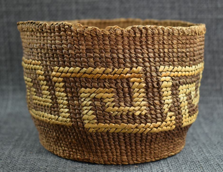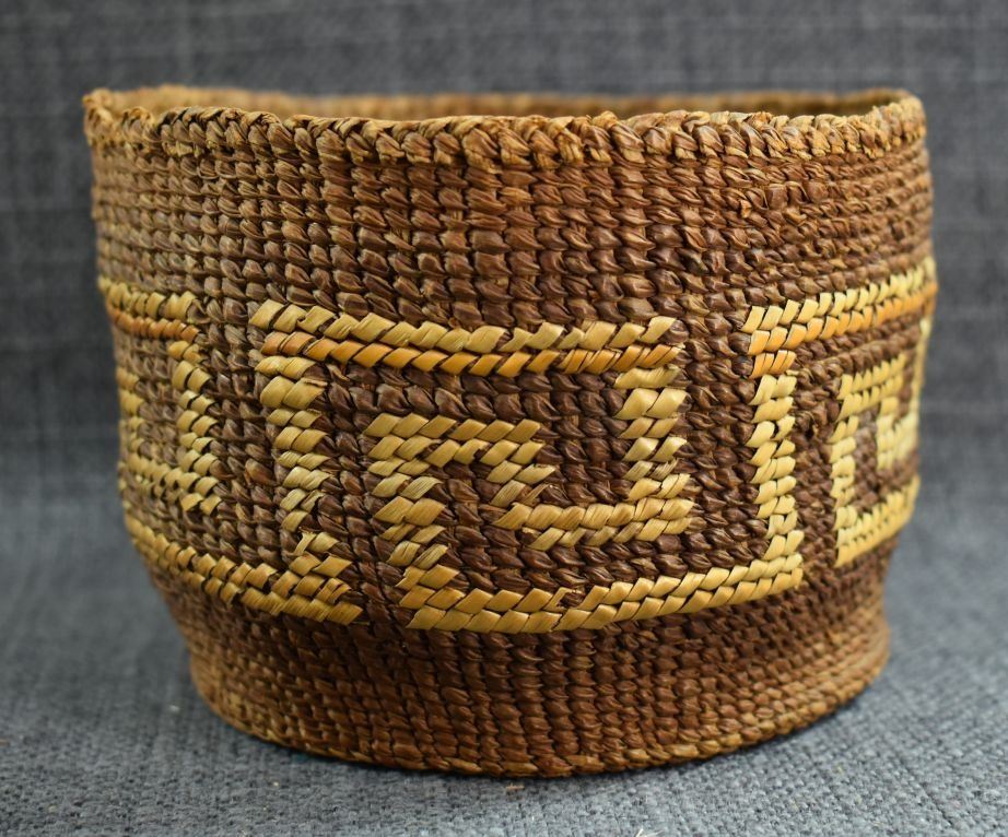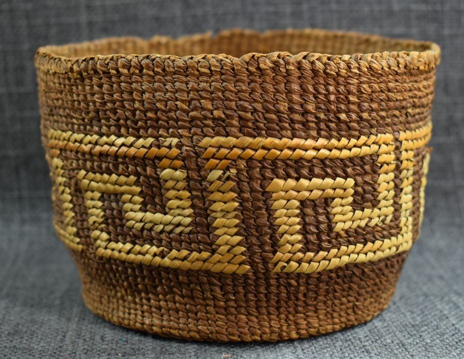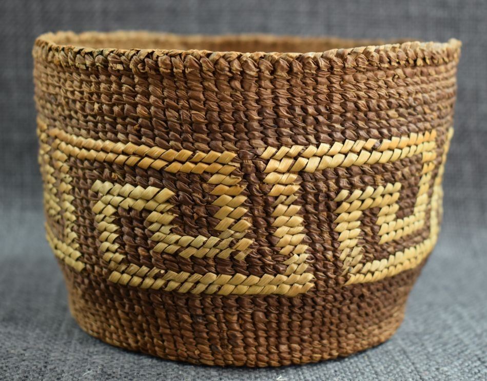 1920's Tsimshian Hand woven geometric design cedar bark basket. 3.5'' x 5.5''