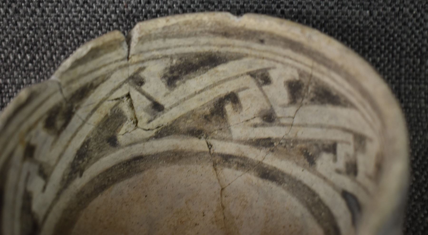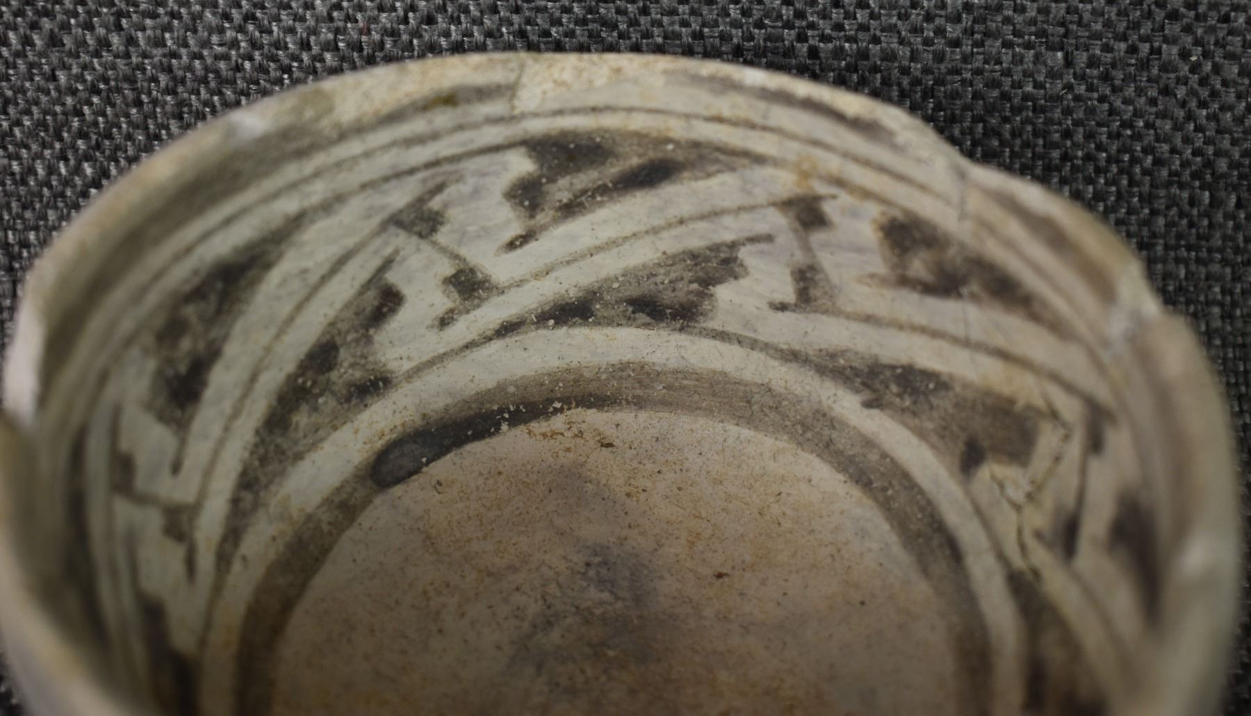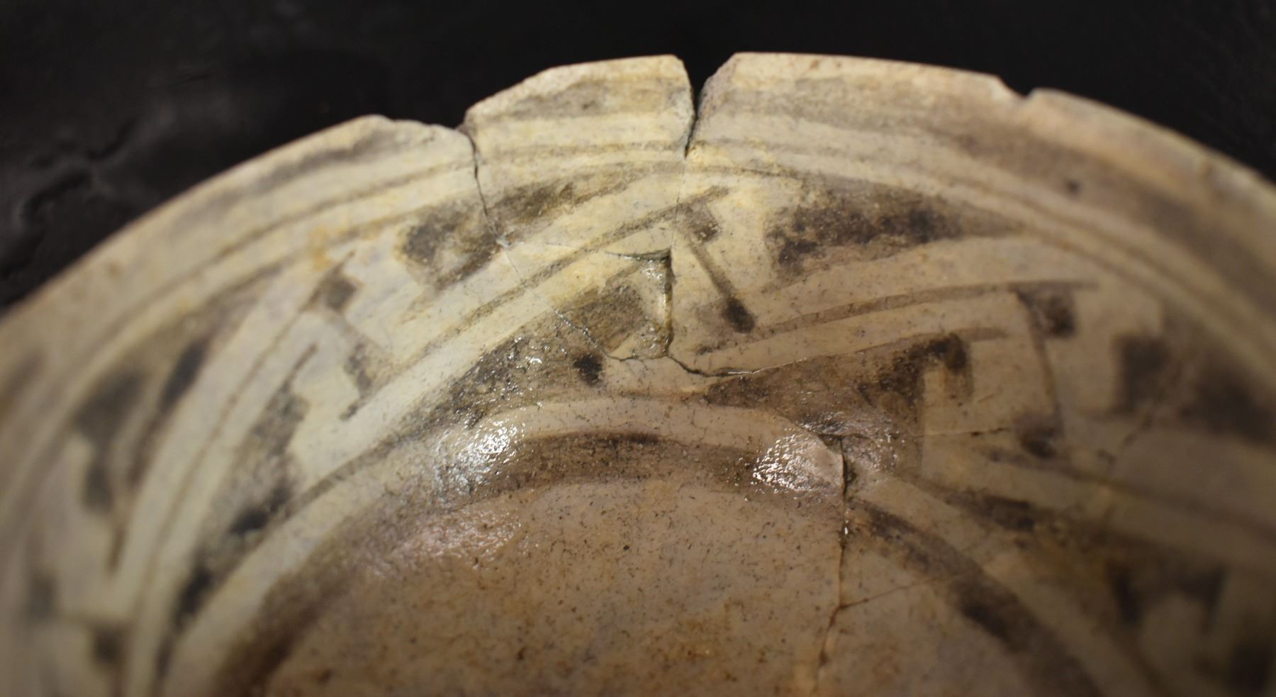 prehistoric Tularosa, hand made with black on white painted design. 2.75" x 4.25" x 9", broken and glued