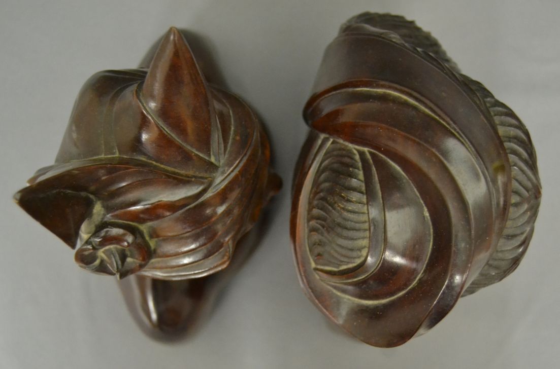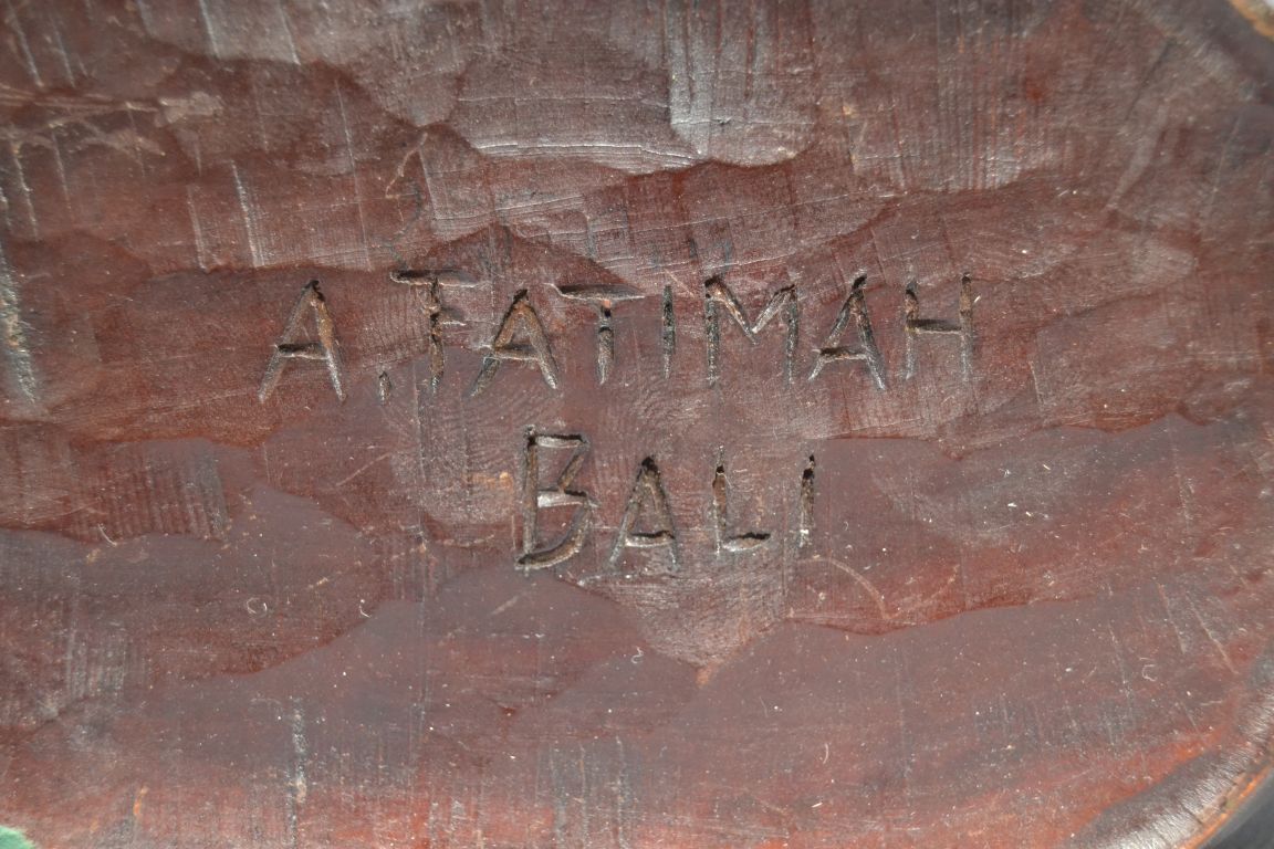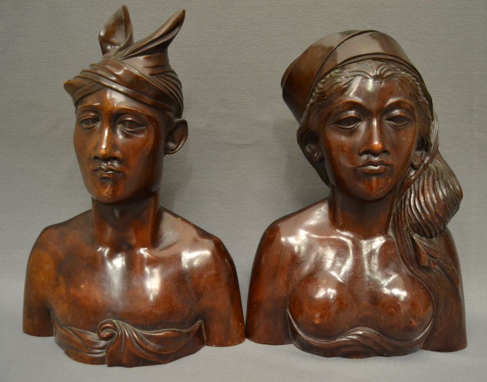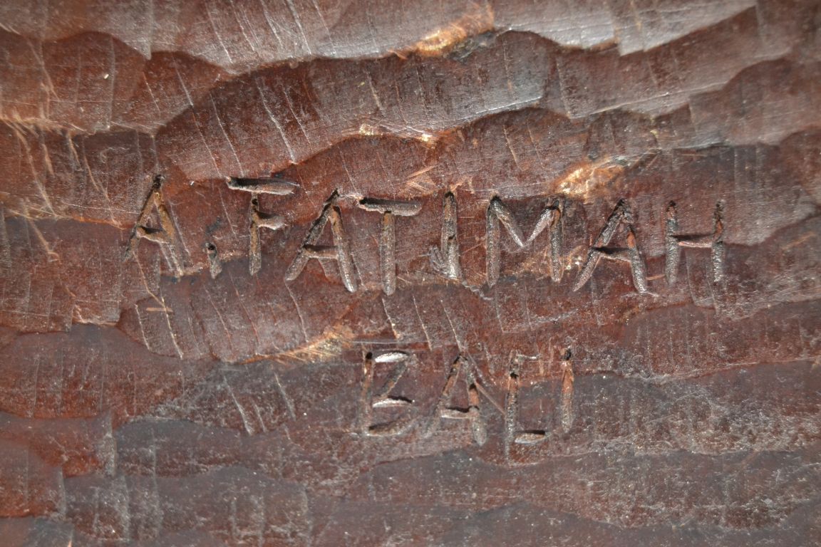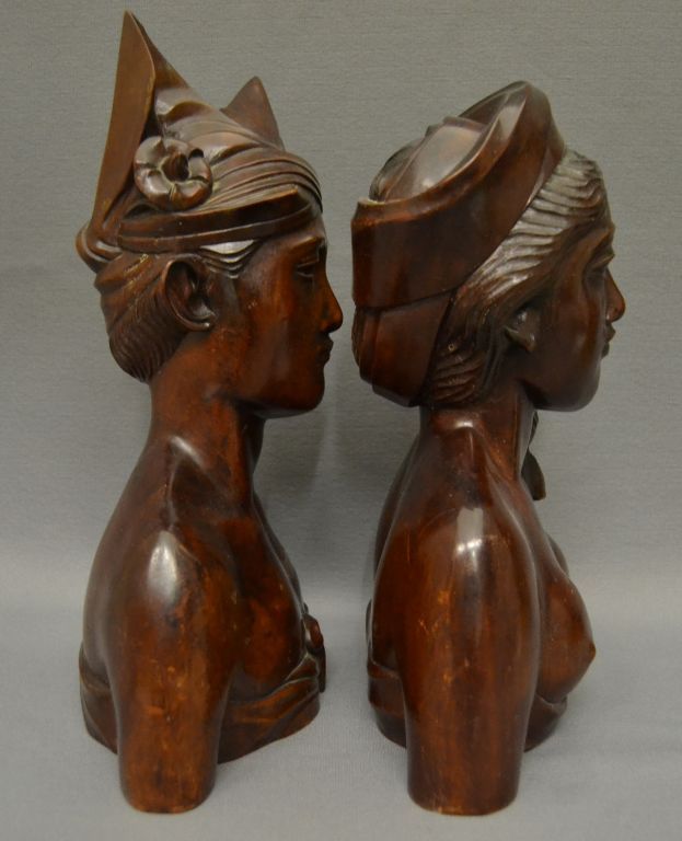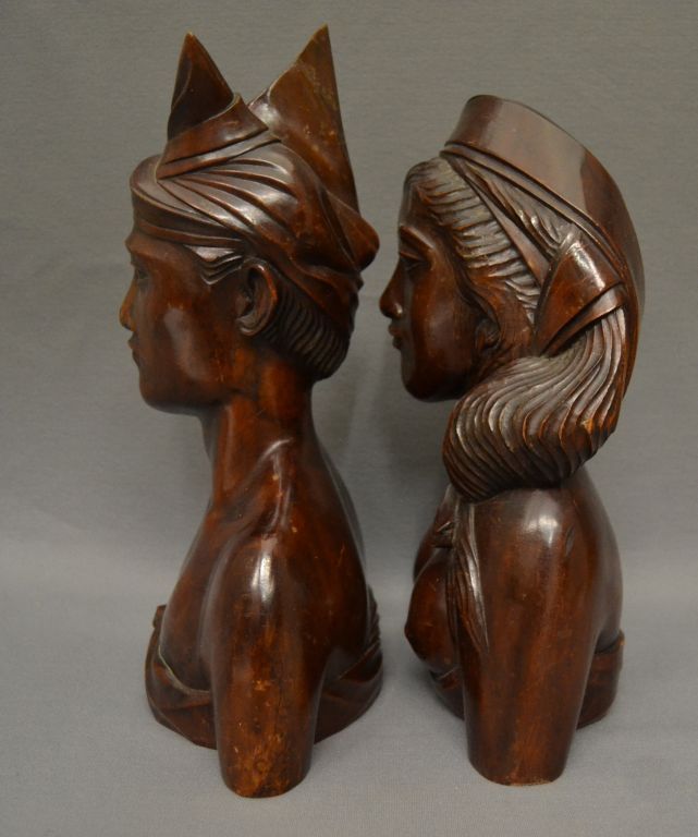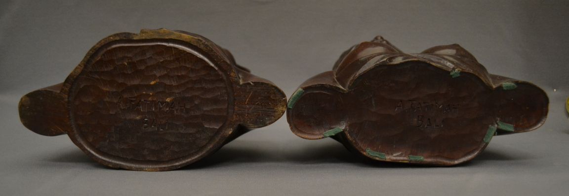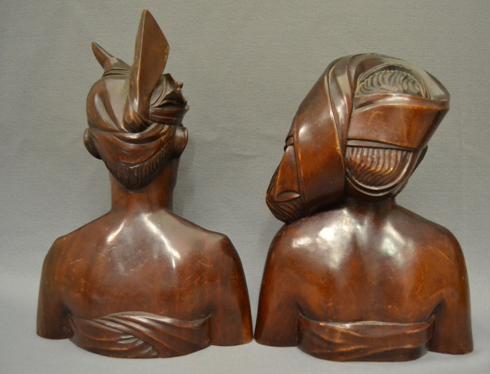 1940s hand carved wood male and female figure signed A. Fatimah Female both have rubs 12.5" male 14.5"