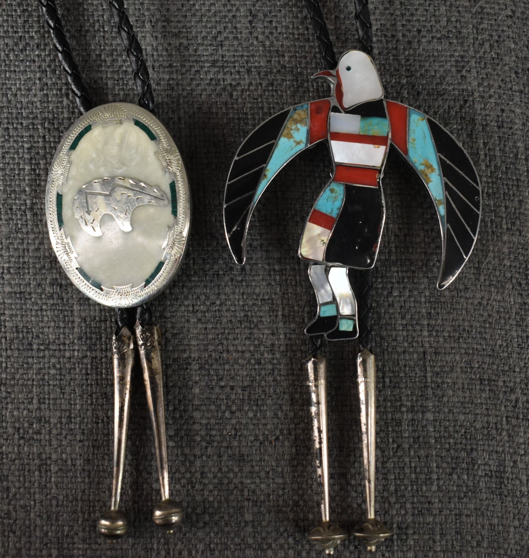vintage inlaid eagle dancer 3" x 2.5". Bear with stamped design signed with hallmark,2.25" x 1.5".
