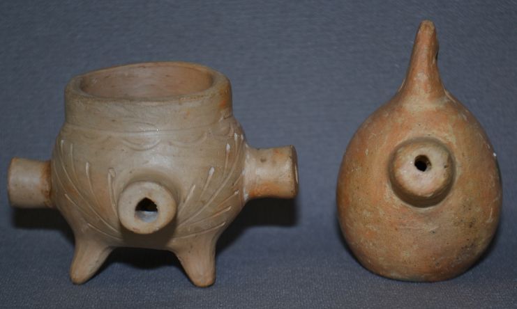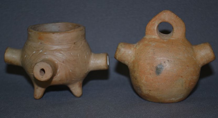 1980s unusual pottery forms 3" x 3" x 2" and 2.25" x 3.5"x 3.5 inches