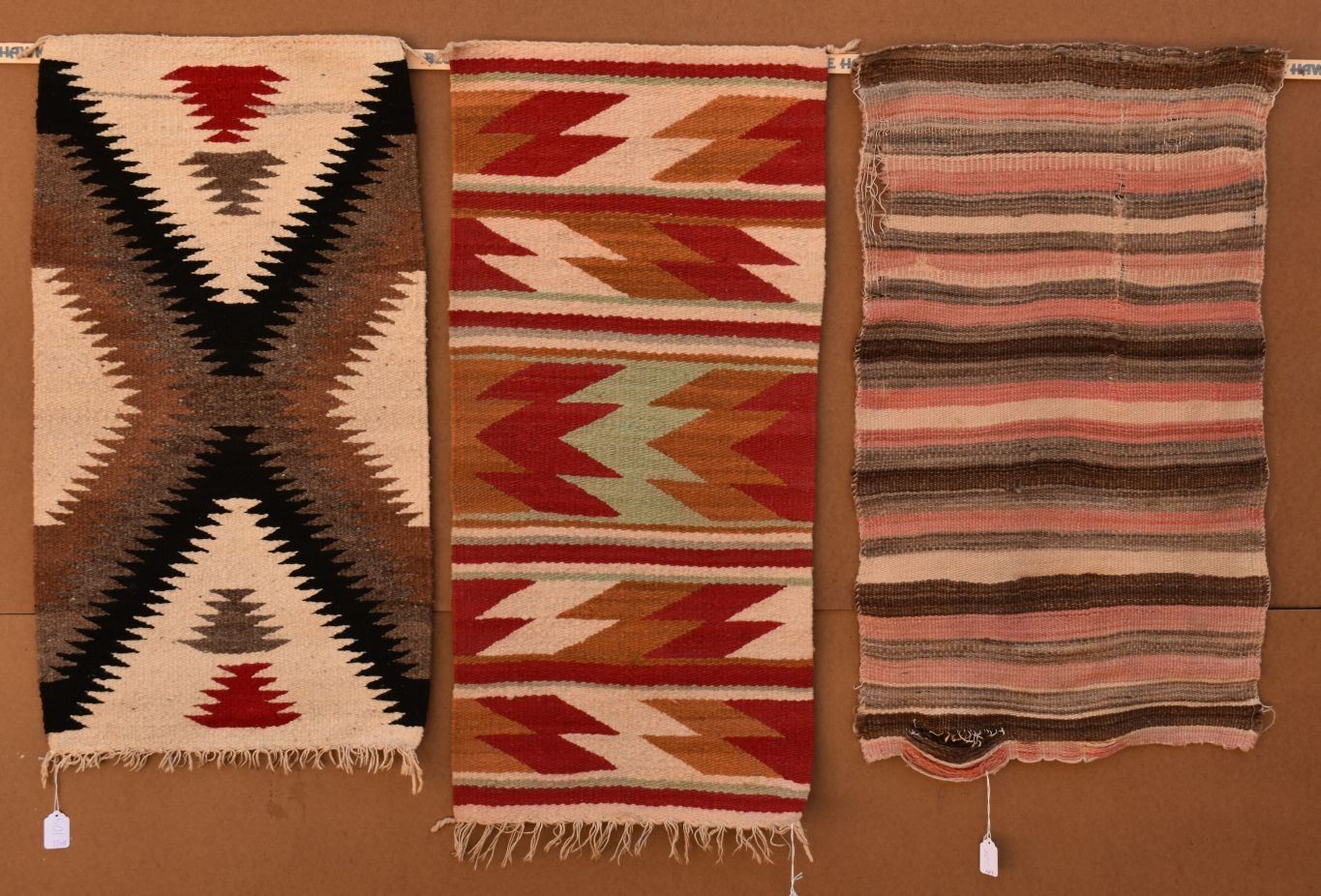 1970's/80's Gallup throw textiles with geometric design 36" x 18" & 32" x 18". Navajo childes blanket 32" x 19"