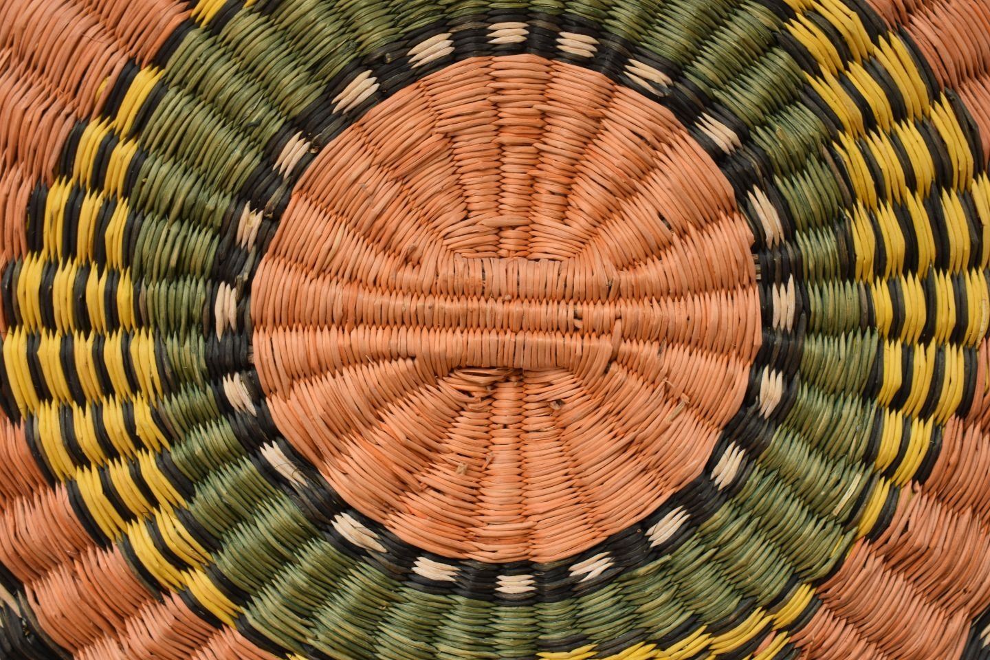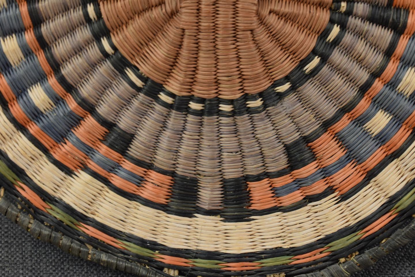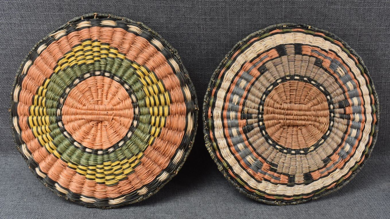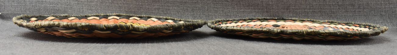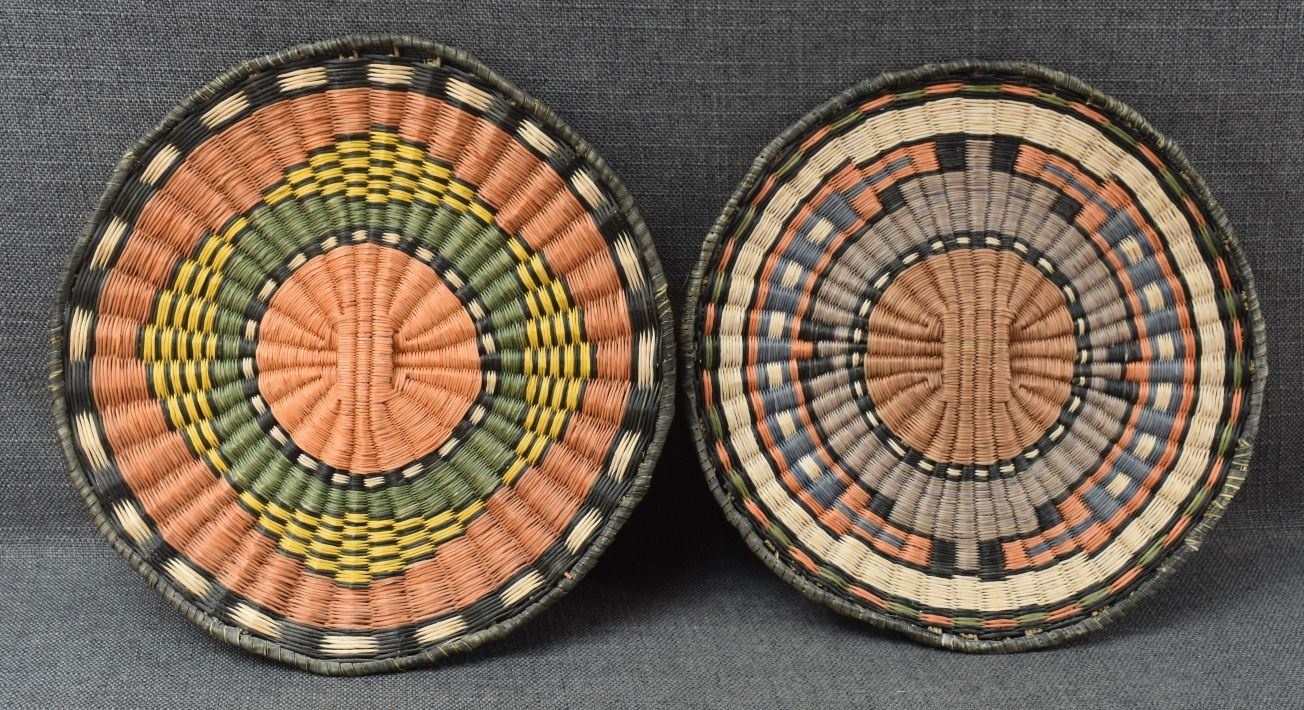1970-80's Hopi 3rd mesa wicker, hand woven polychrome design 11.75" and 12.25" diameter