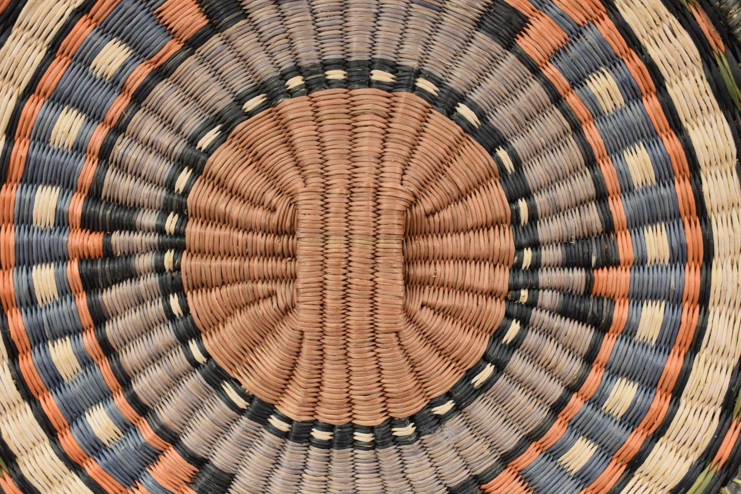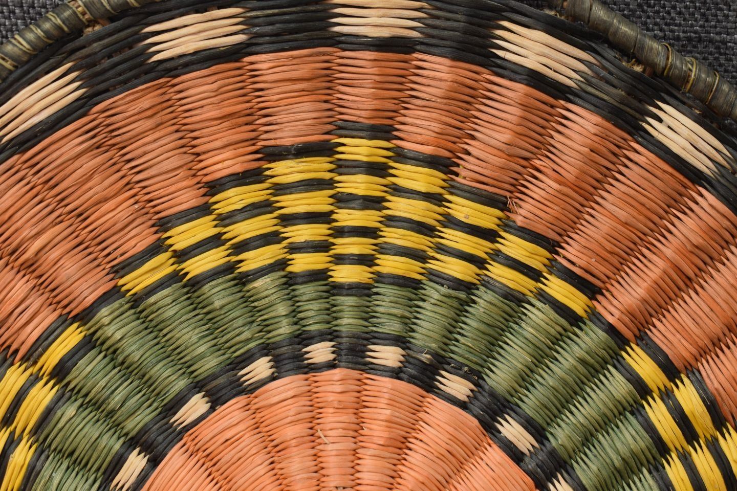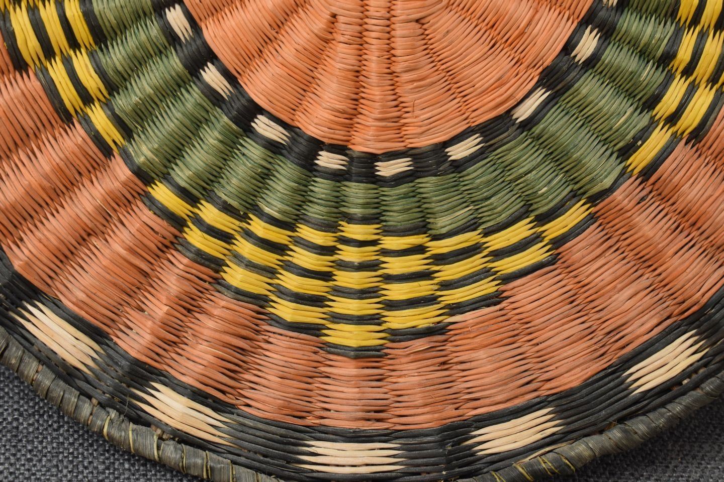 1970-80's Hopi 3rd mesa wicker, hand woven polychrome design 11.75" and 12.25" diameter