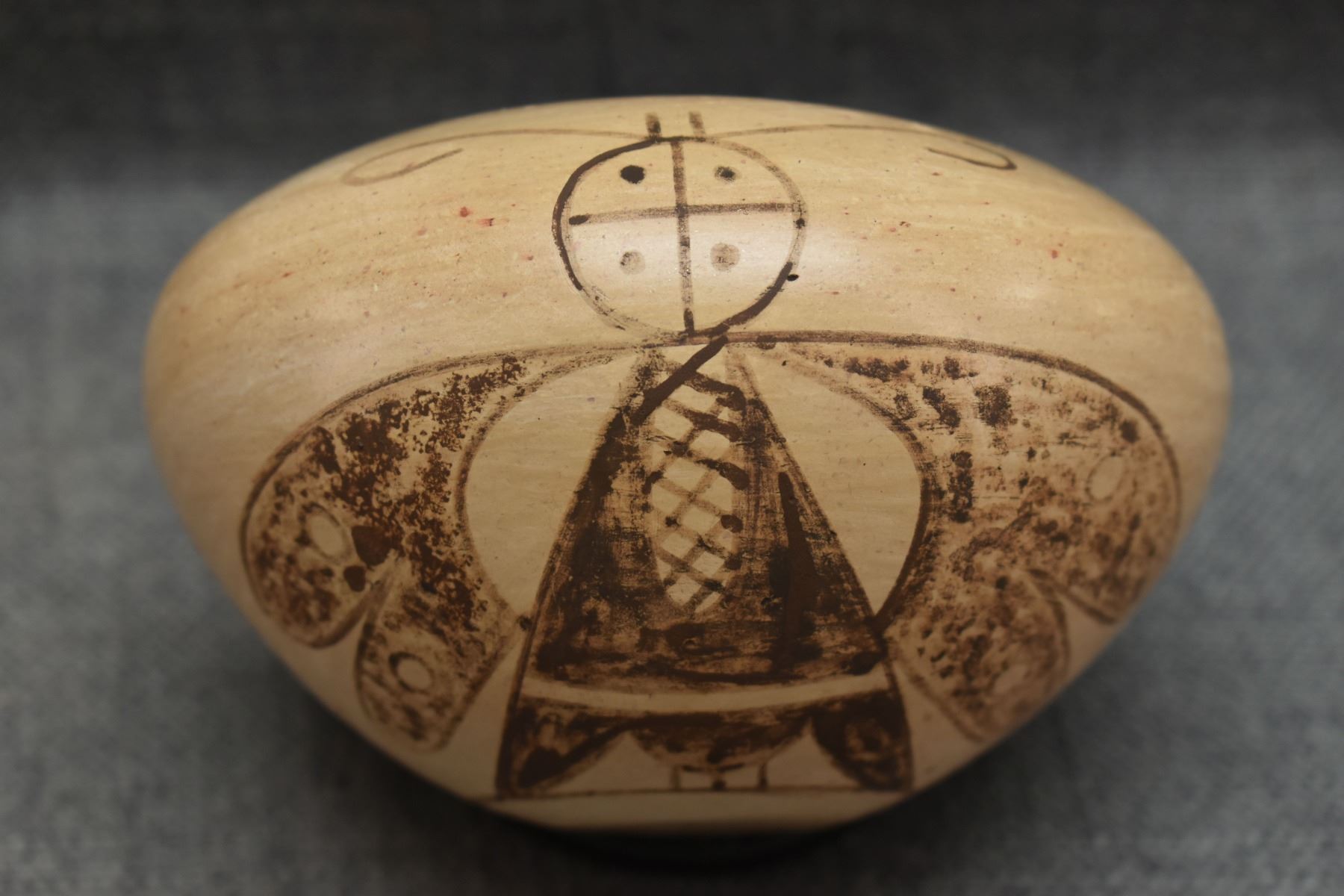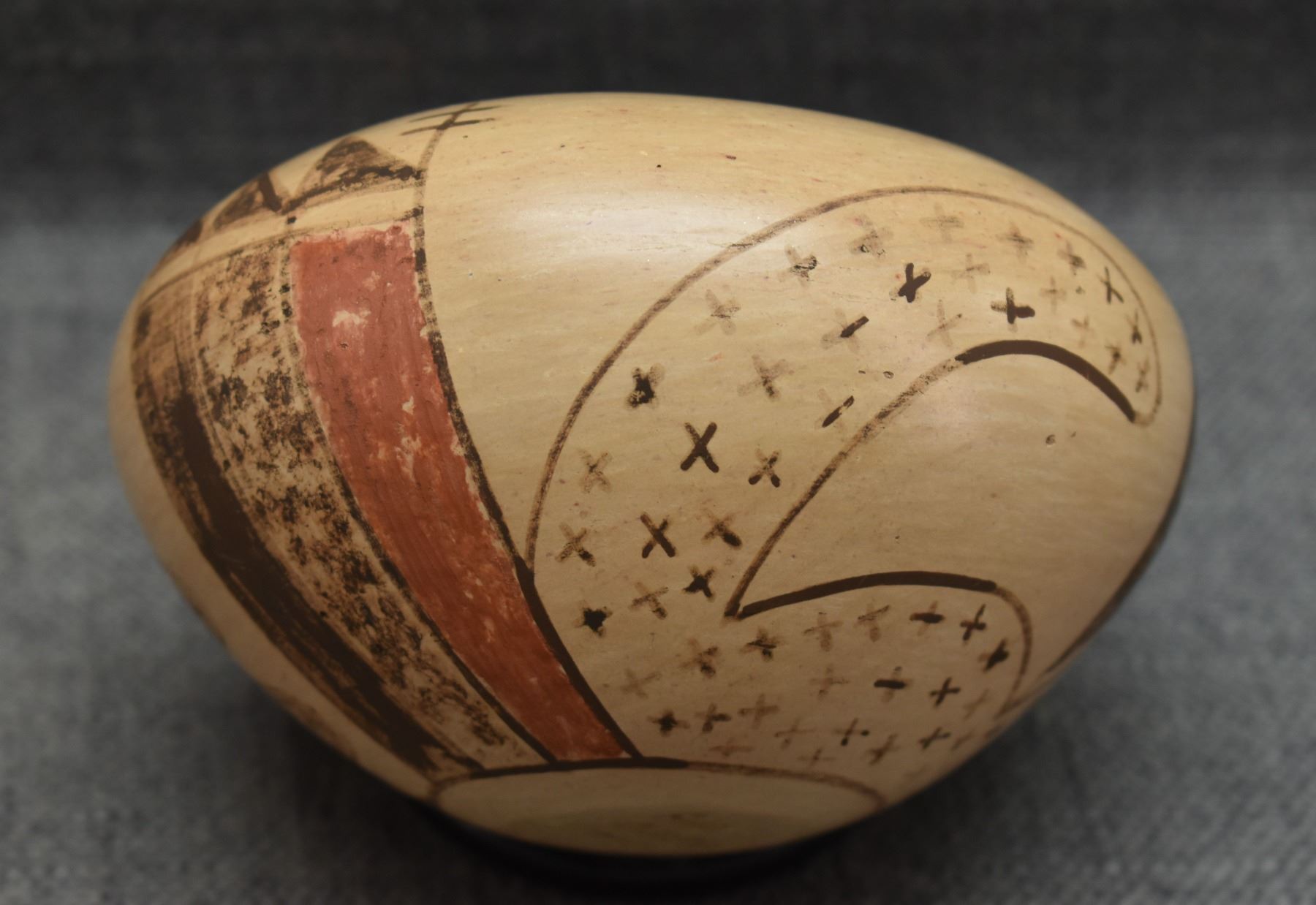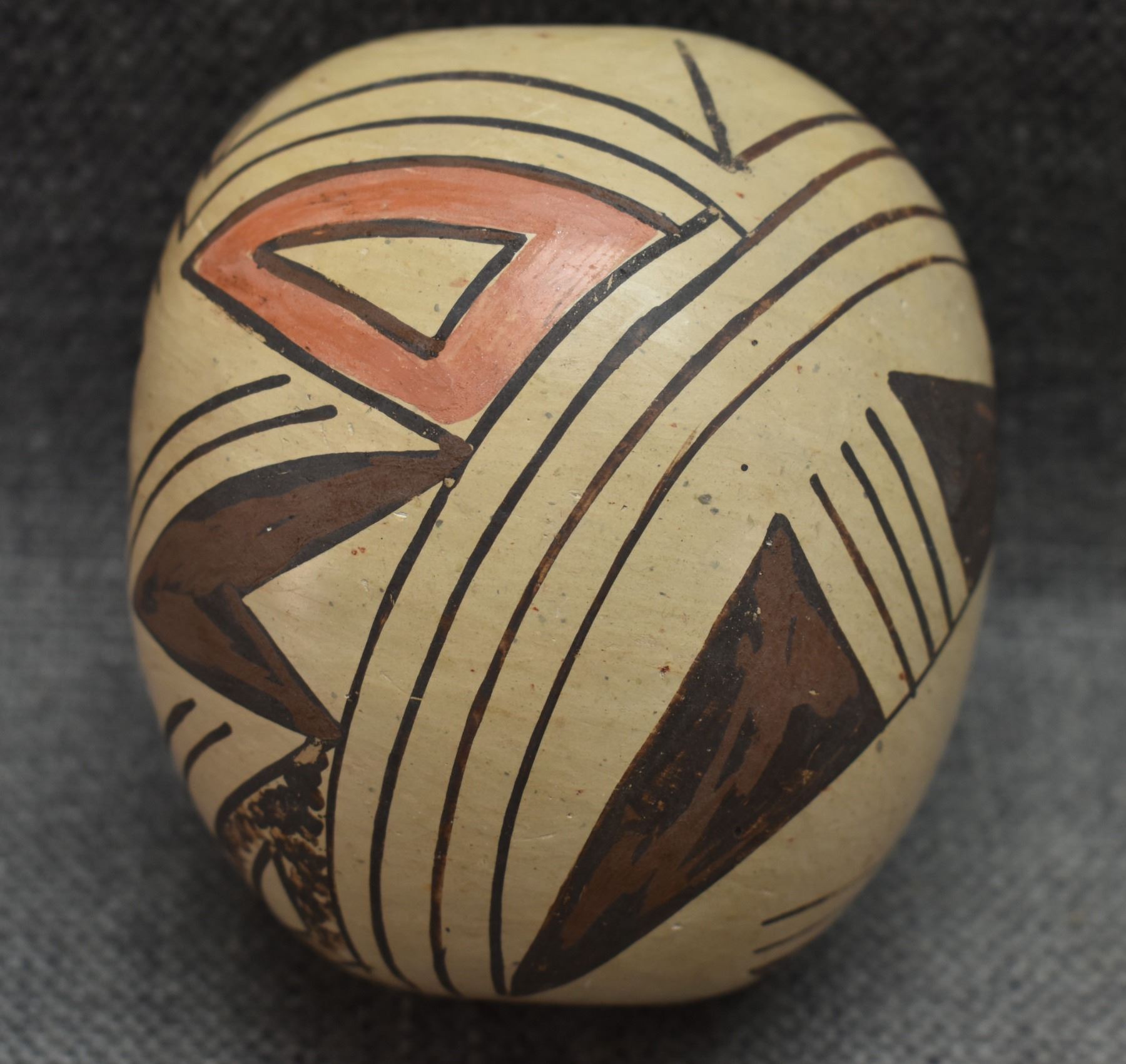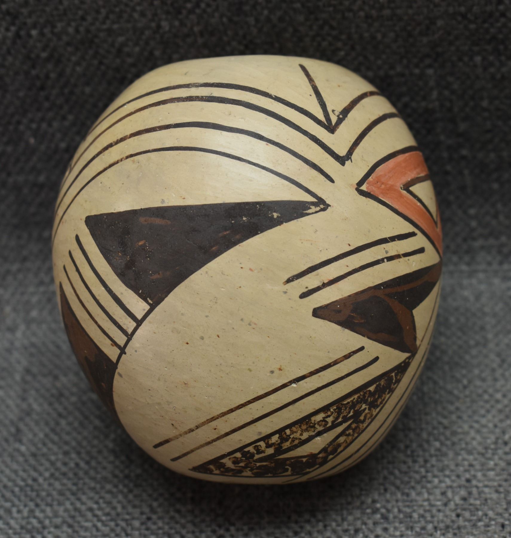1970's Hopi. Hand coiled and painted design pottery bowls 3'' x 5.5'' and 4'' x 3.5'' both signed Elida Chapella