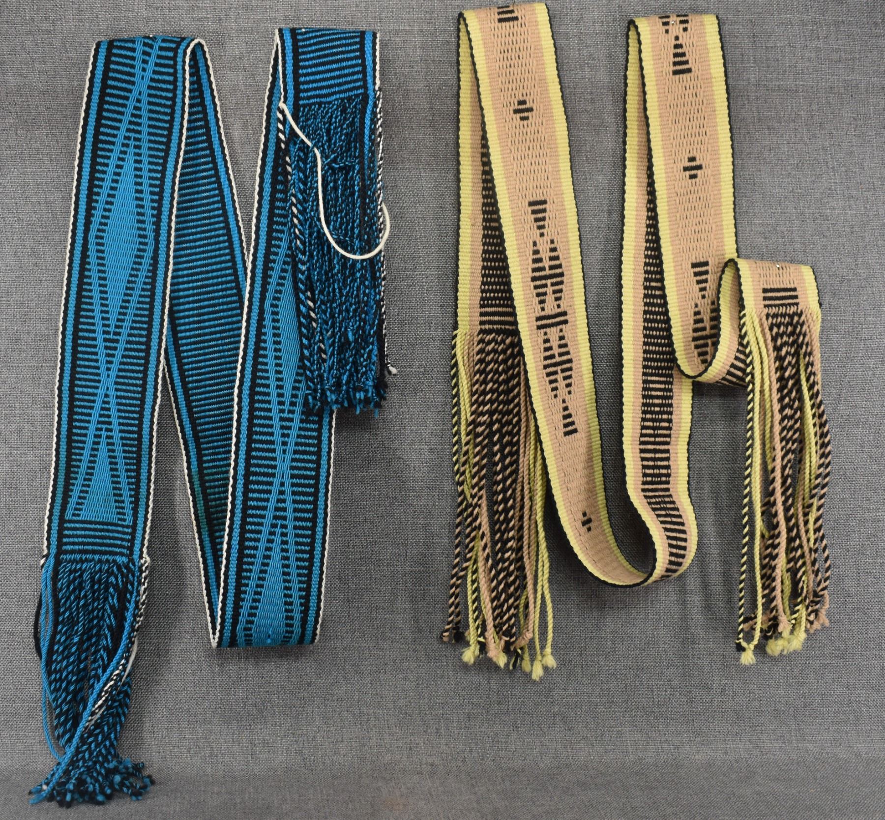 1980's Hopi. Hand woven traditional design sashes 95'' x 3'' and 88'' x 3.75''