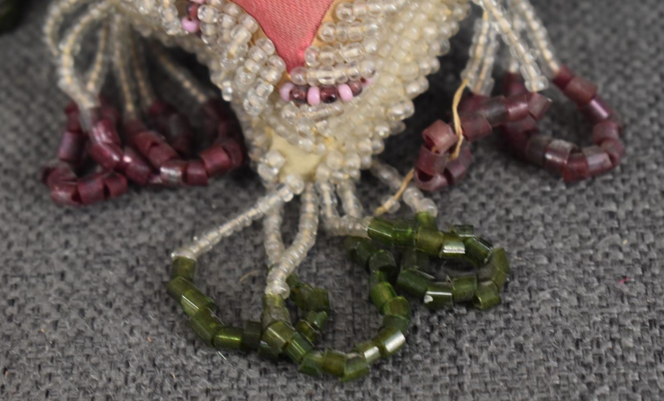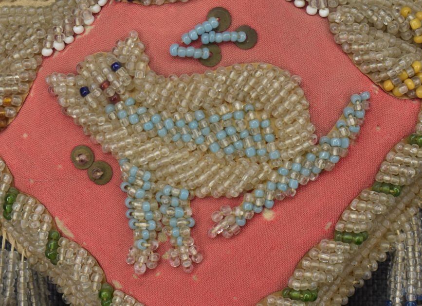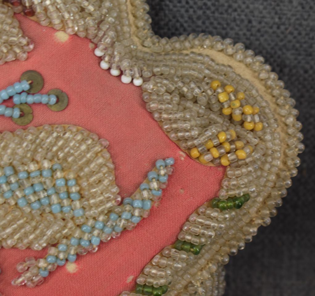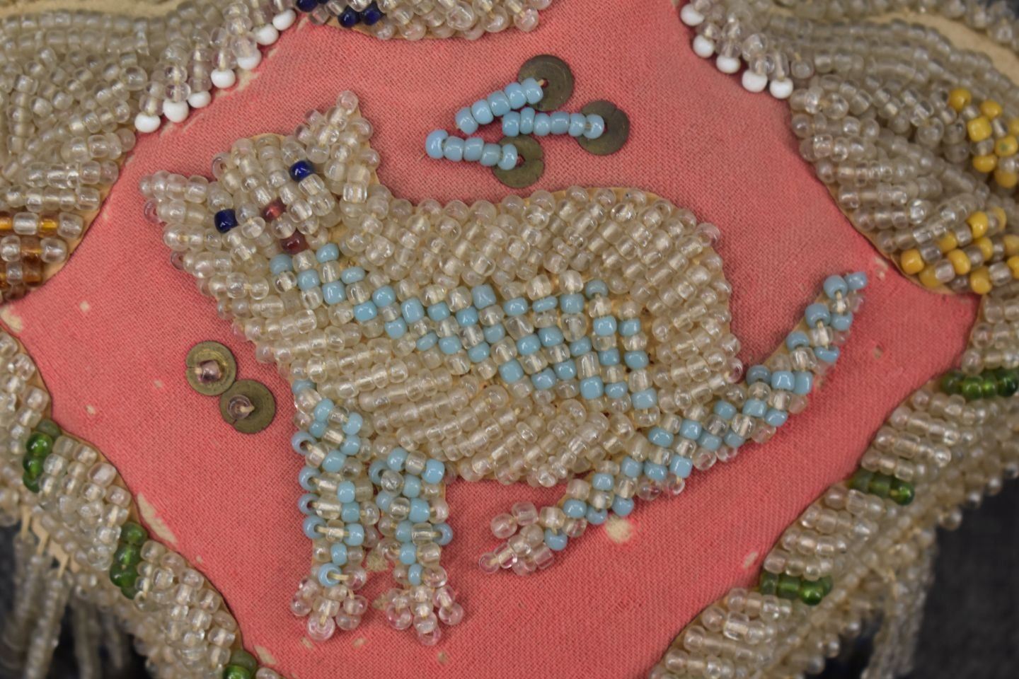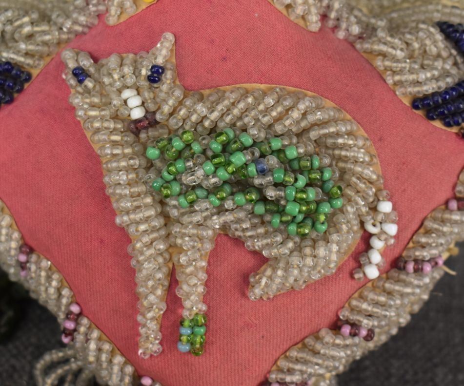 20th century Hand beaded pictorial design depicting cats pillow. 1.5" x 7"