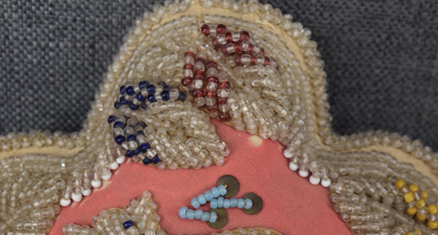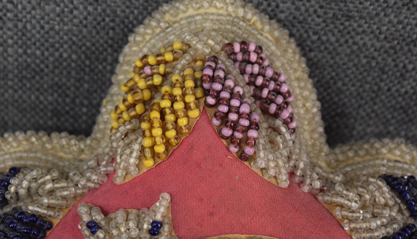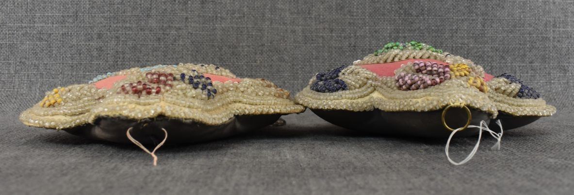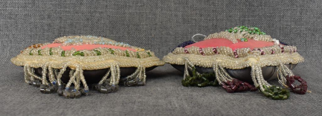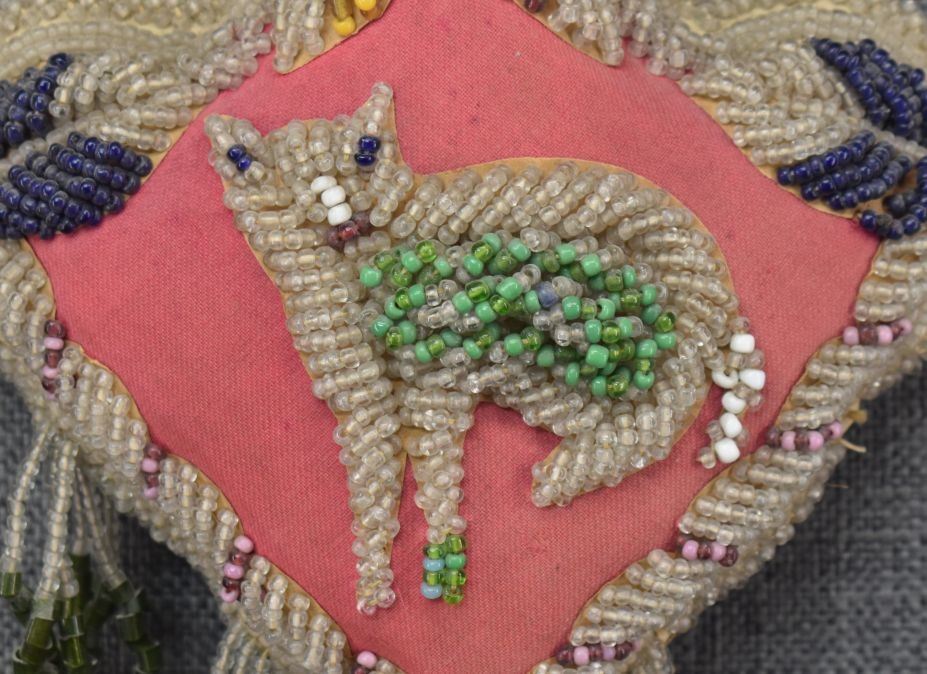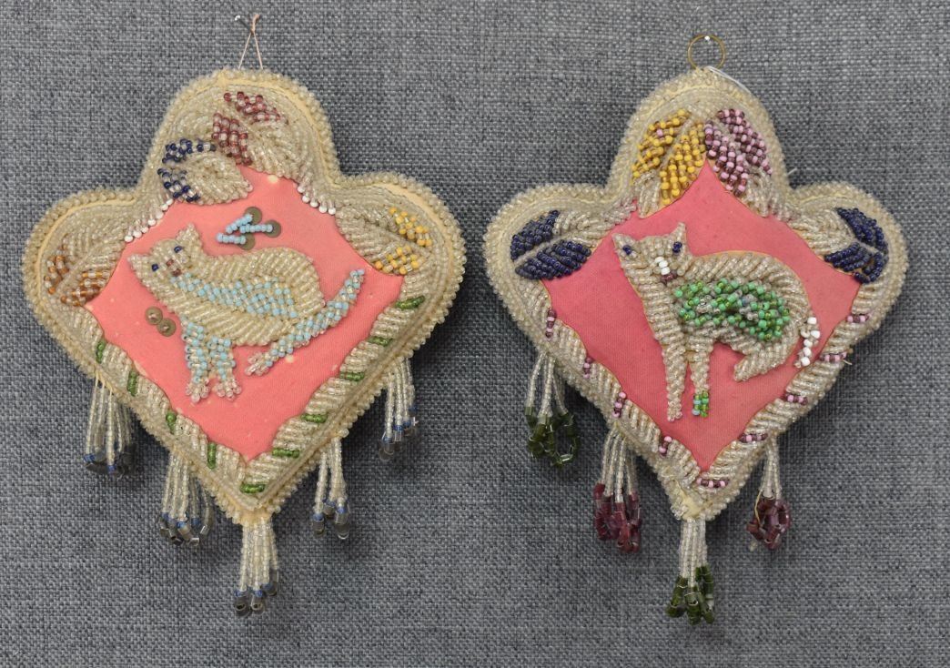 20th century Hand beaded pictorial design depicting cats pillow. 1.5" x 7"
