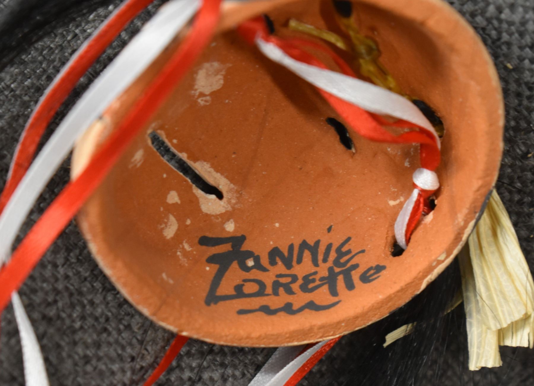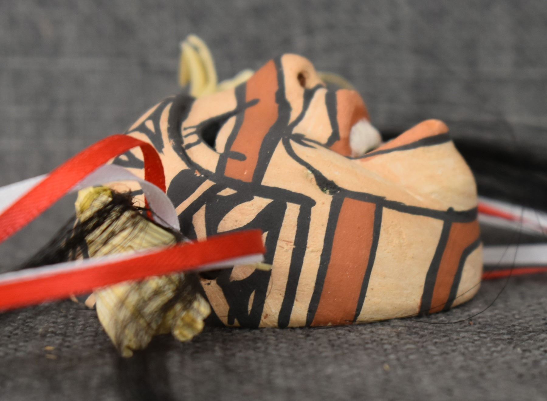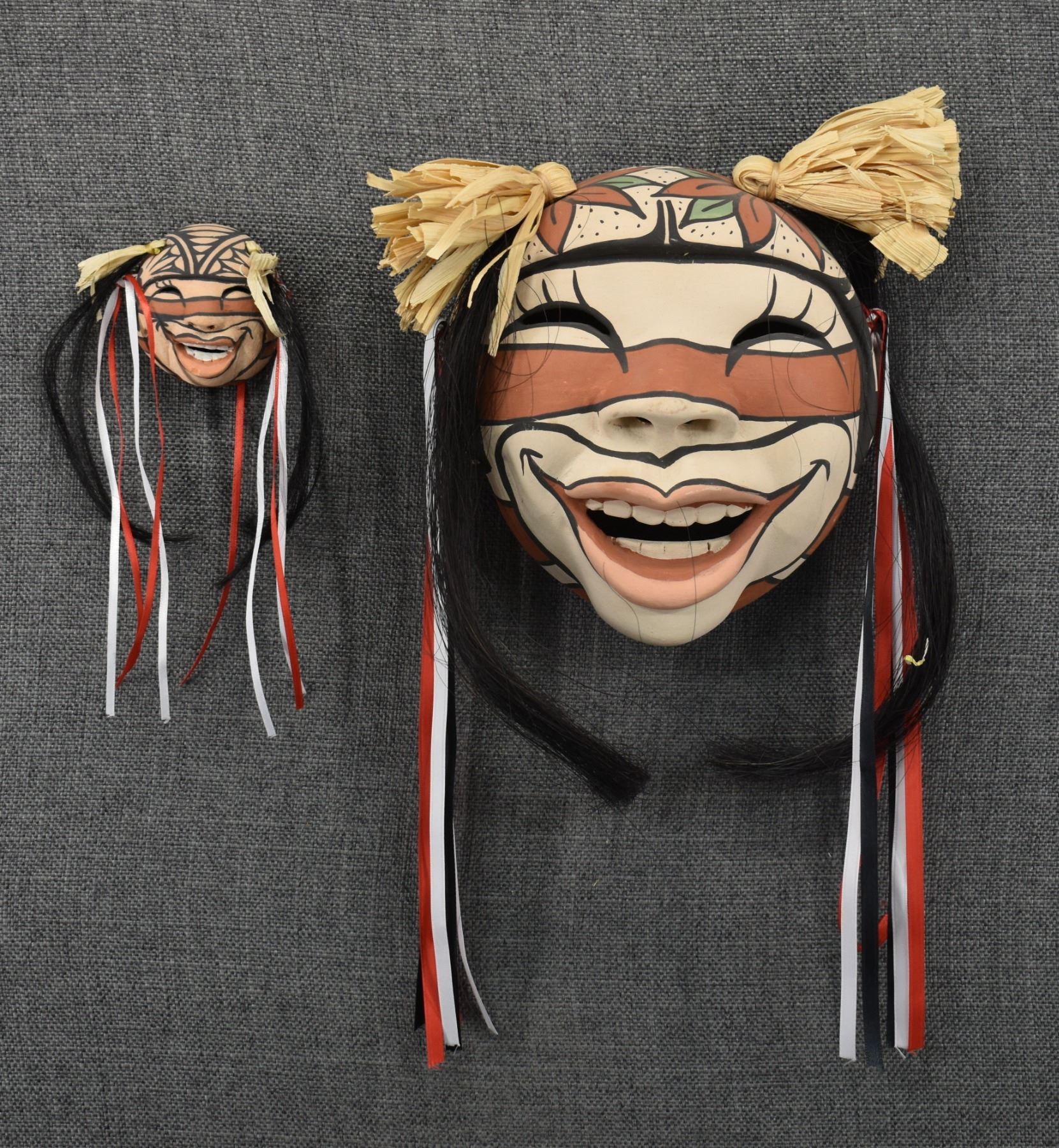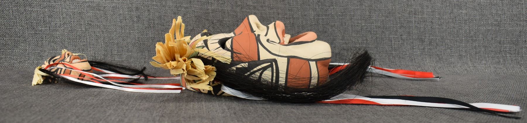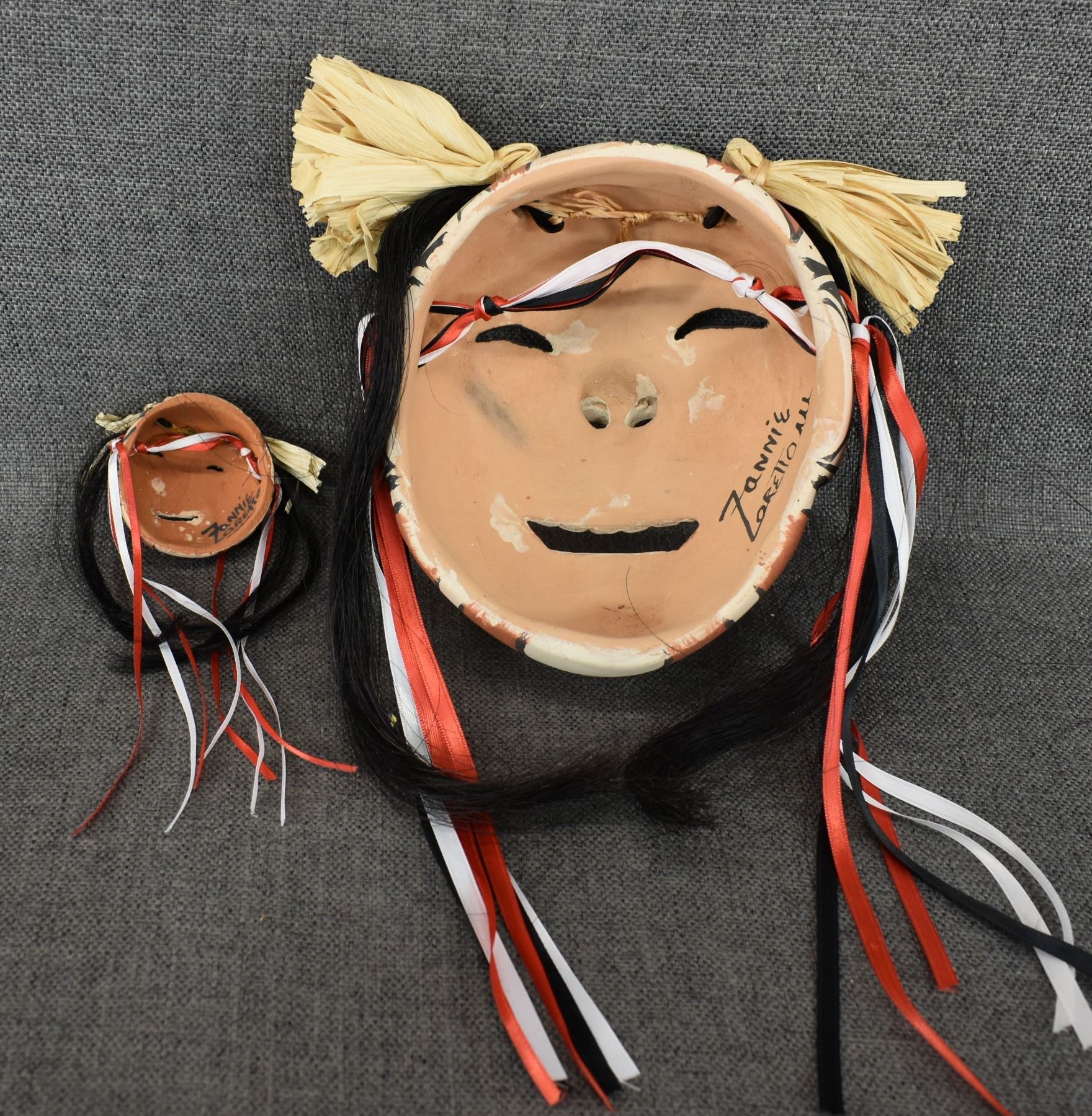 1990's Jemez, hand made and polychrome painted masks by Fannie Loretto 7" x 6.25" x 3" and 2.5" x 2.5" x 1.5"