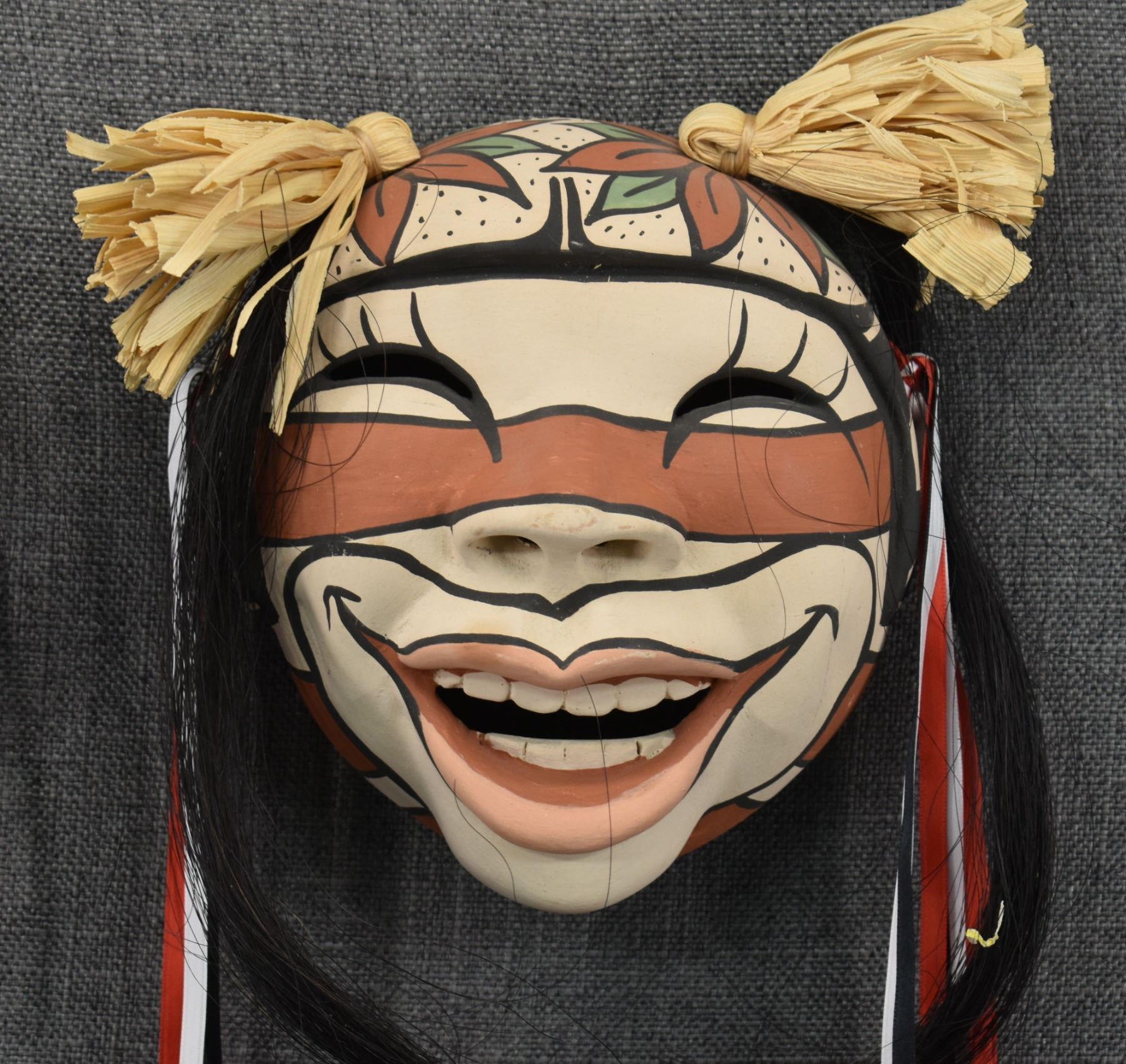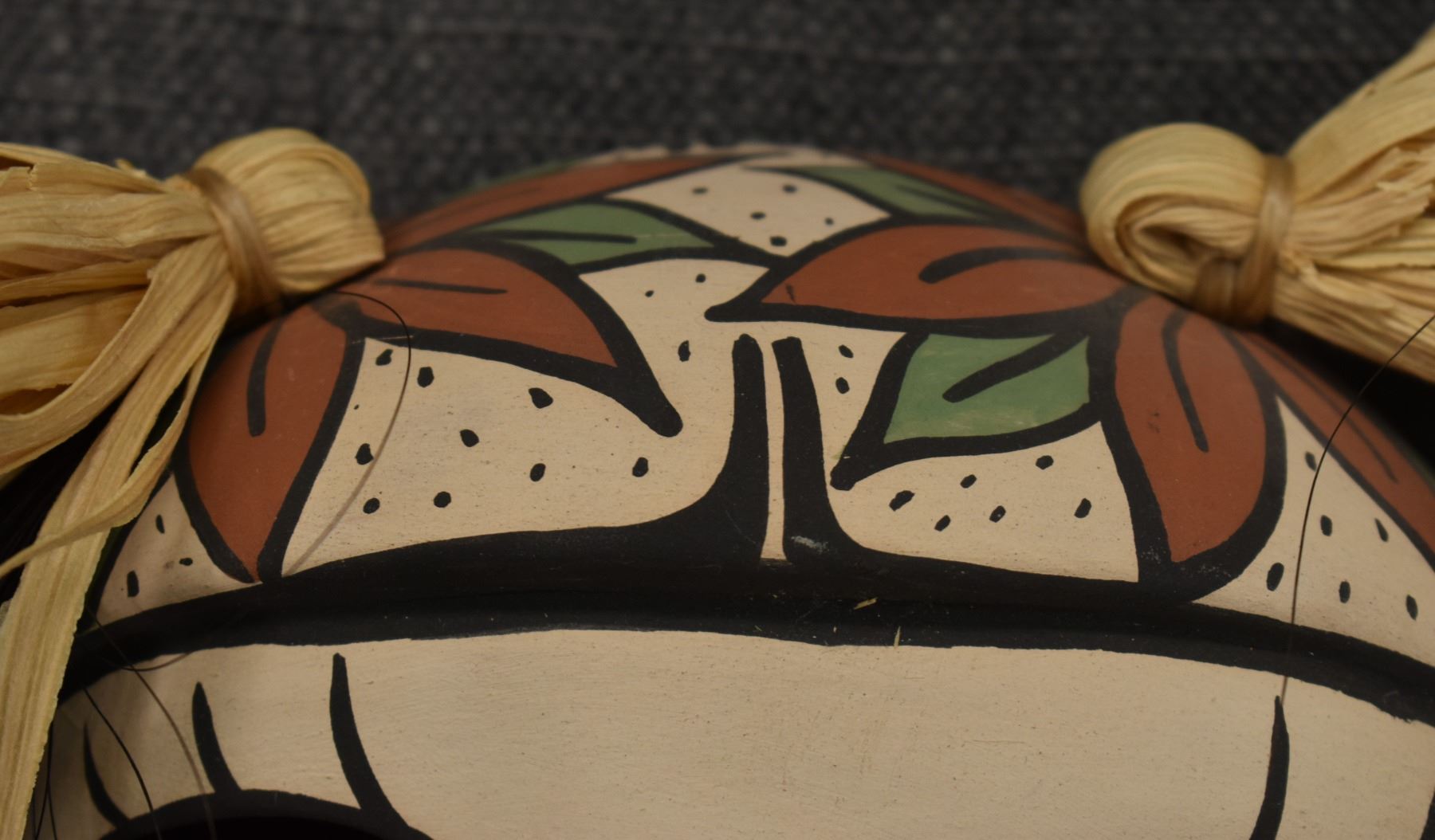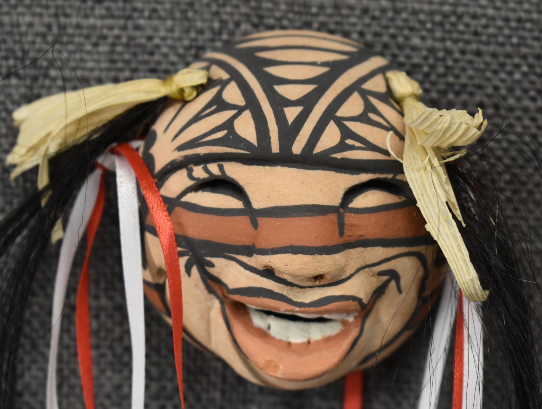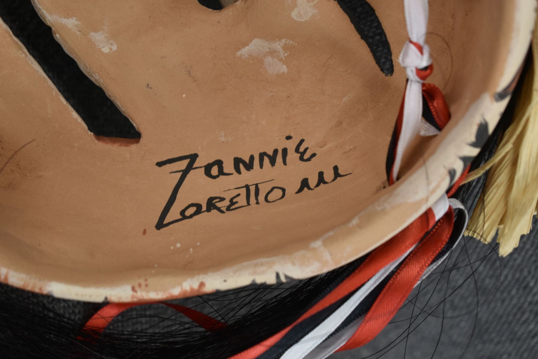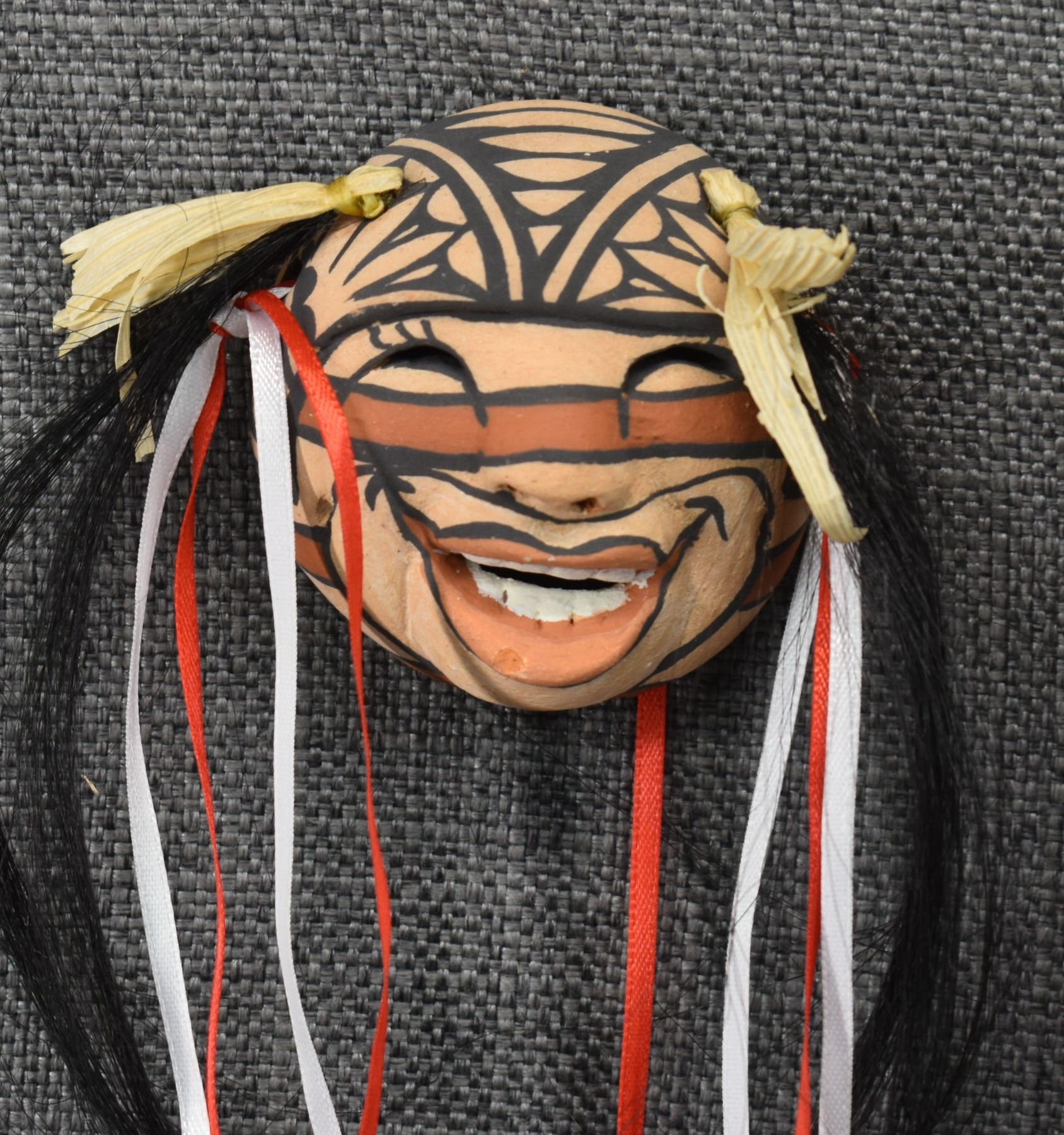 1990's Jemez, hand made and polychrome painted masks by Fannie Loretto 7" x 6.25" x 3" and 2.5" x 2.5" x 1.5"