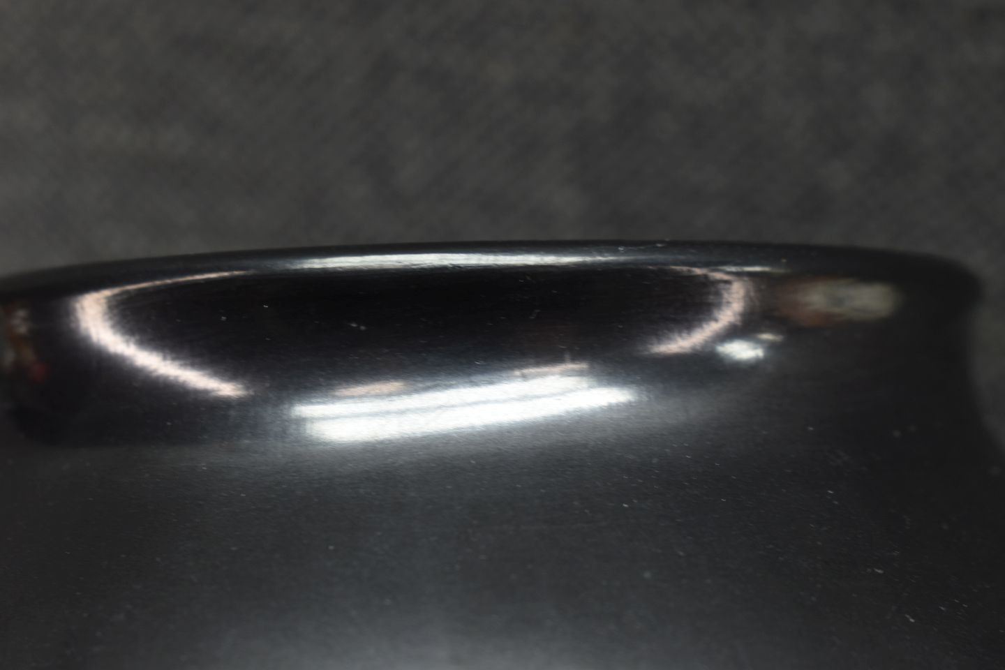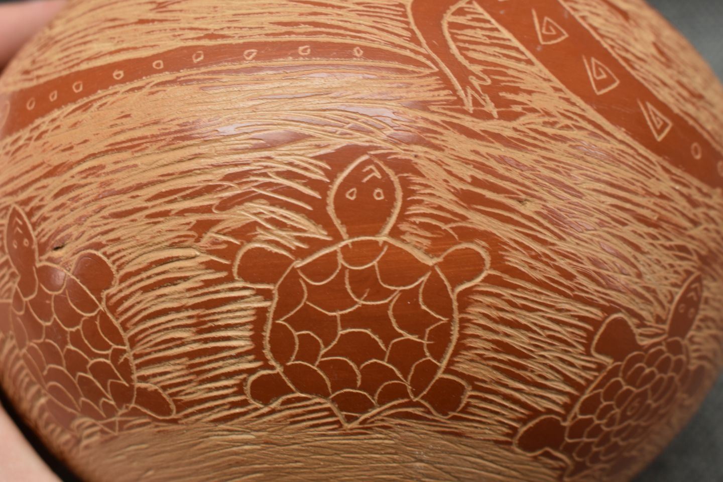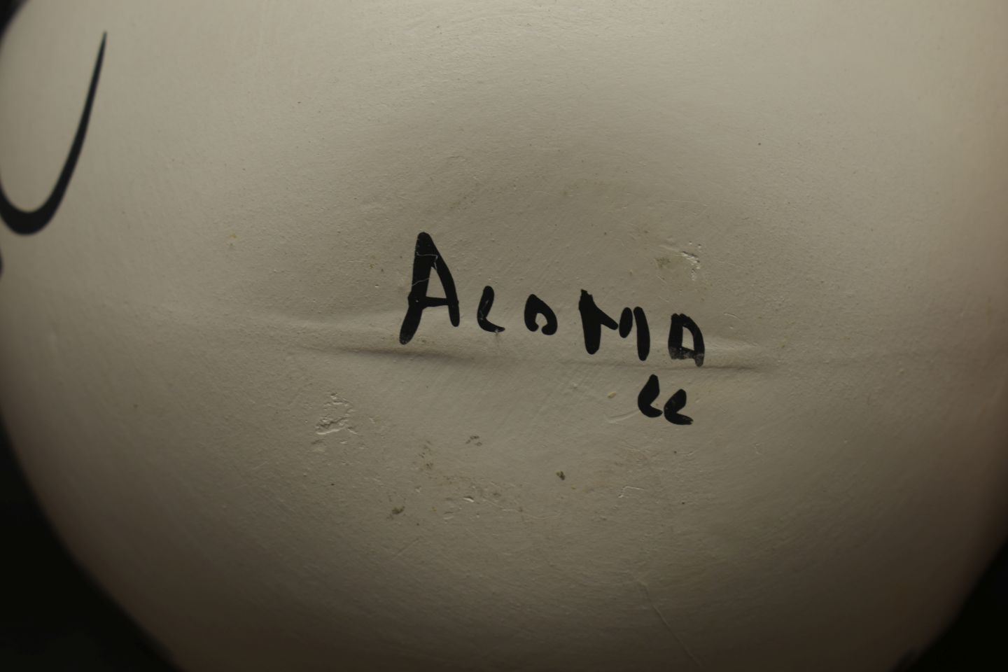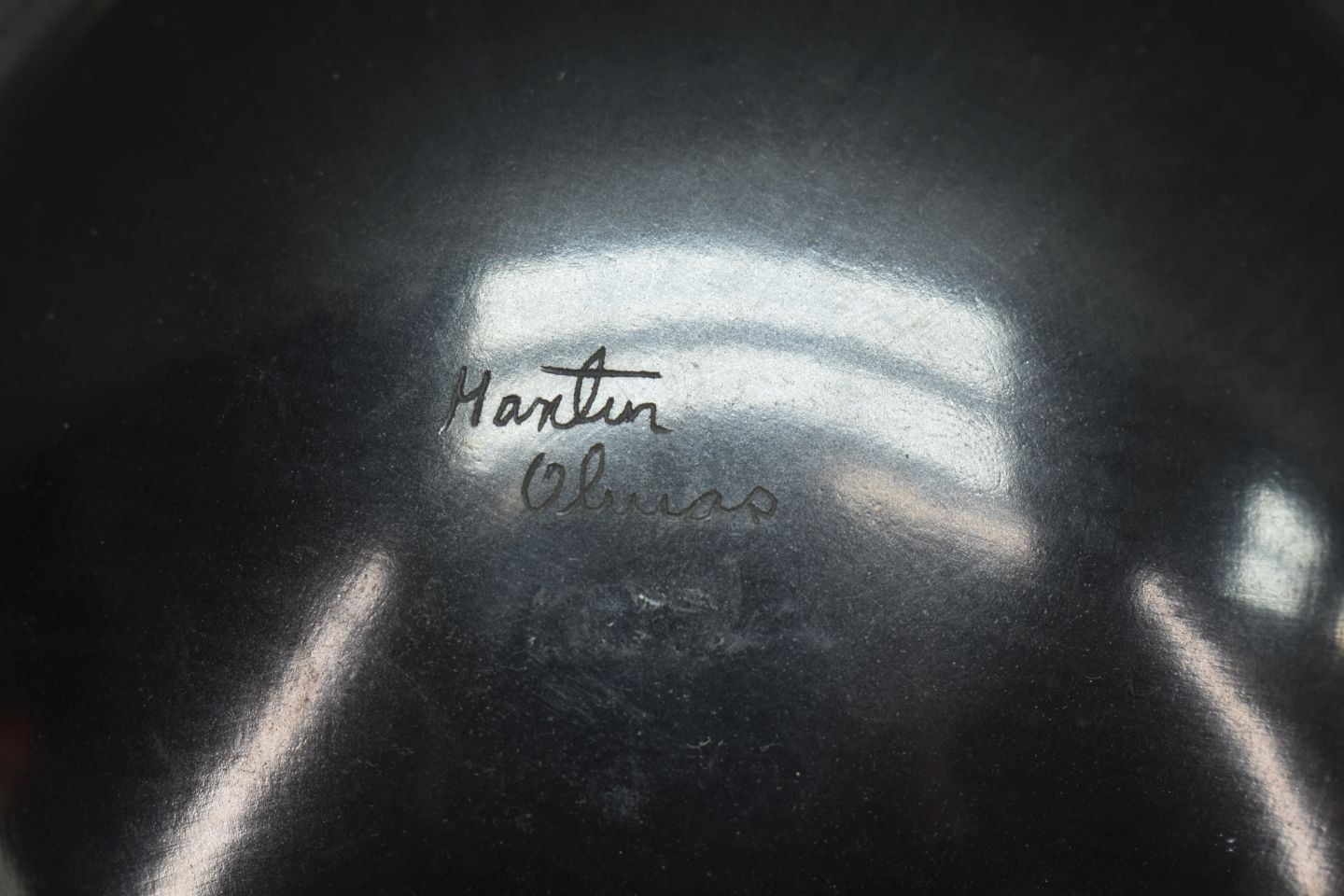 two Mata Ortiz pottery jars/one Acoma pottery jar, Mata Ortiz polished black Mantin Oluais, carved with animal design Signed Ramiro Heras, Acoma black on white depicting lizards signed, Largest 6.5"x5.5"