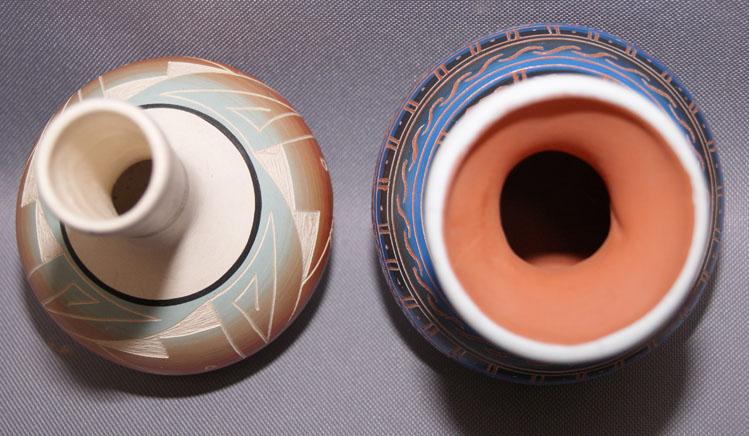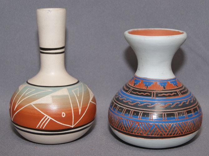 1980s hand carved and painted designs both signed, 5" x 4"