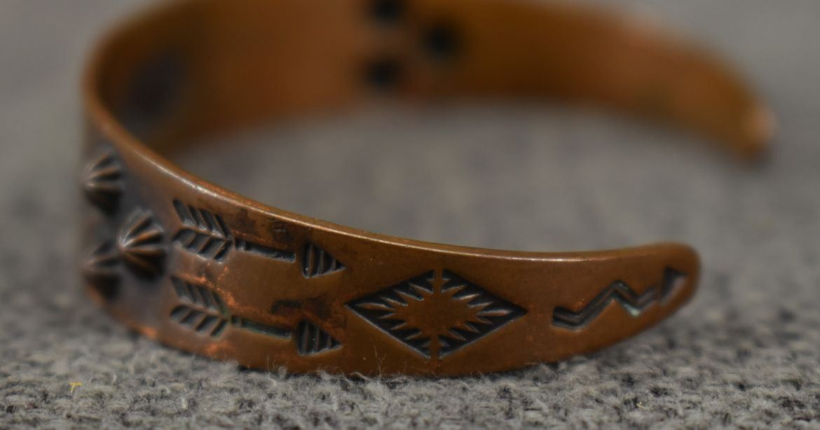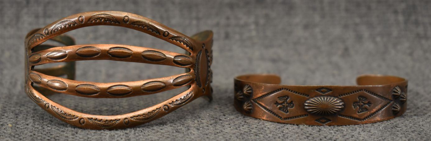 1960-70's Navajo, copper with stamped design 1.5" x 5.25" x 1.5" and .5" x 5.25" x 1"