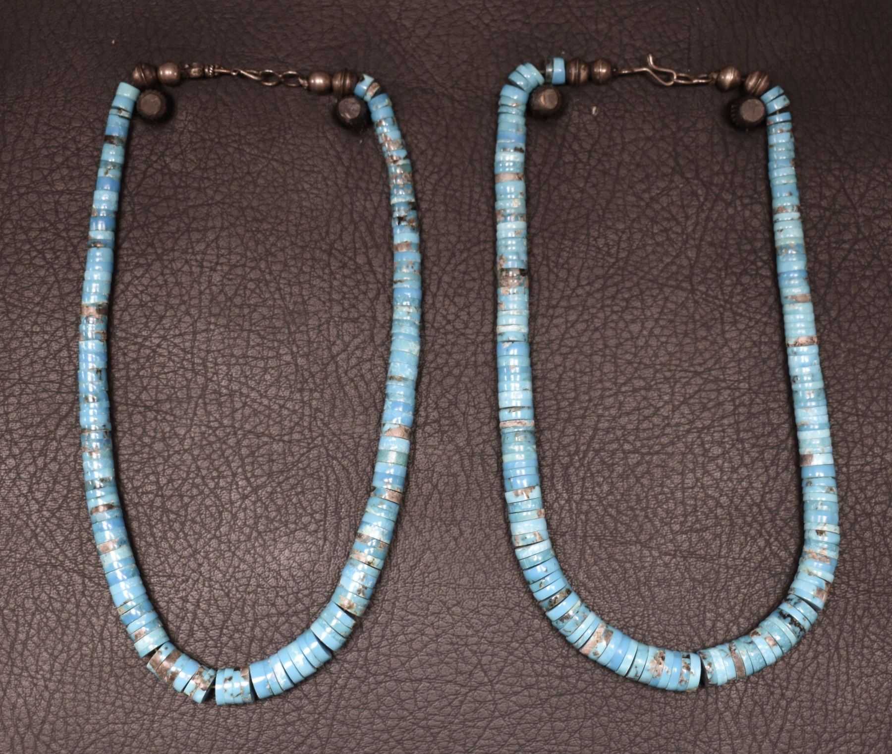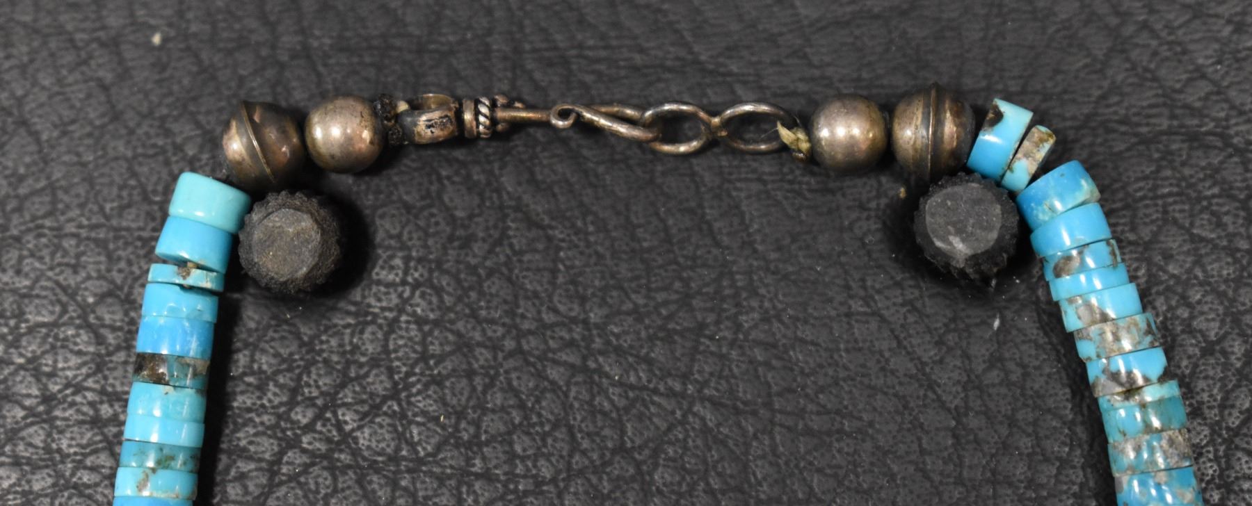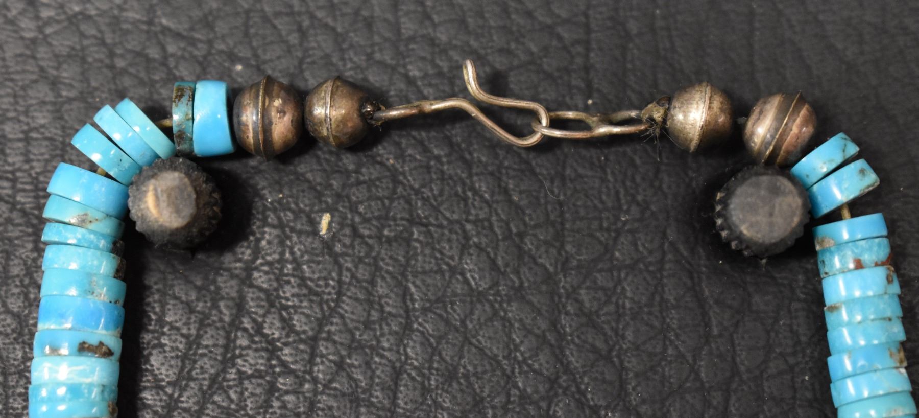 1970-80's sterling silver beads and graduated turquoise beads 14" long