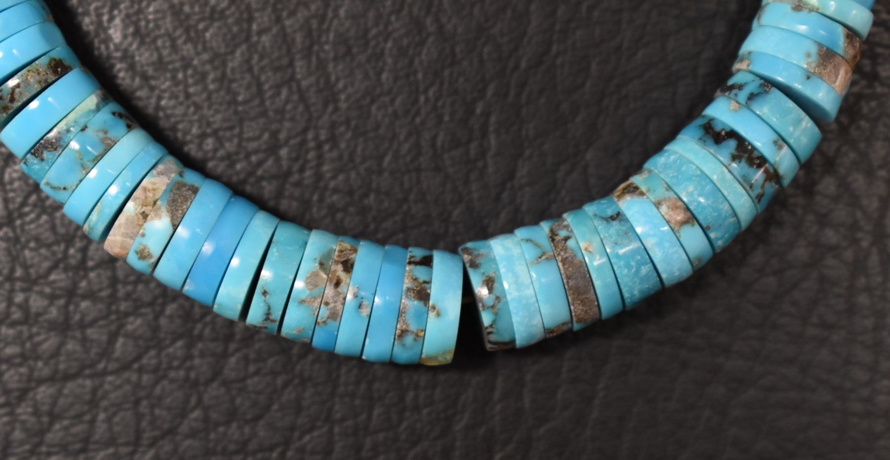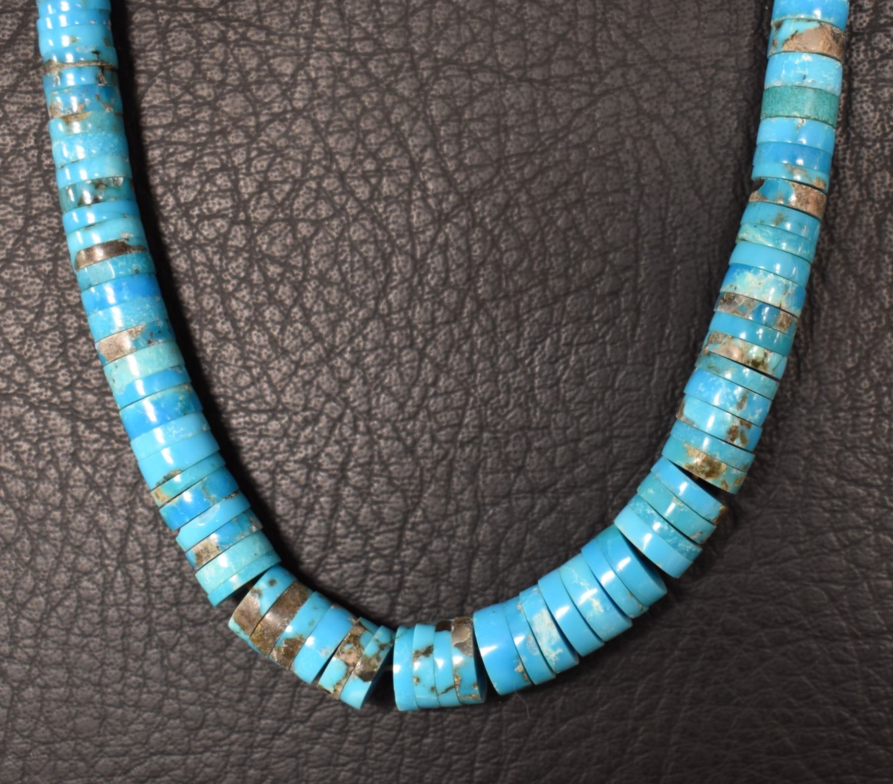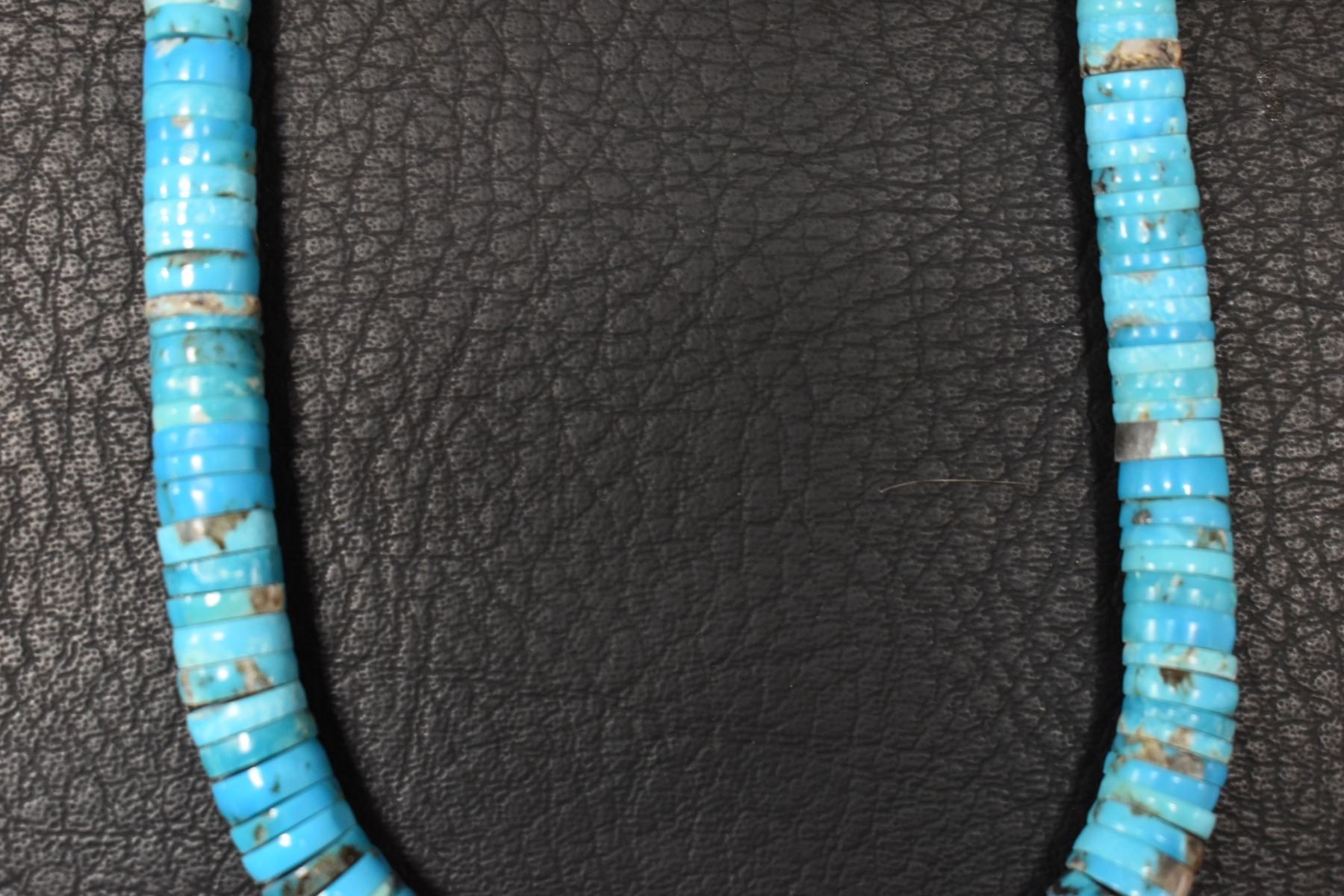 1970-80's sterling silver beads and graduated turquoise beads 14" long