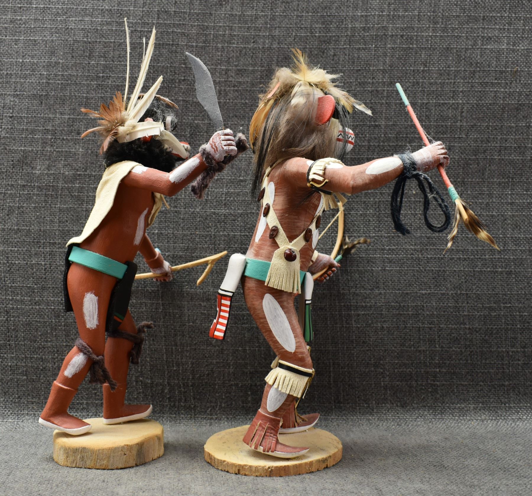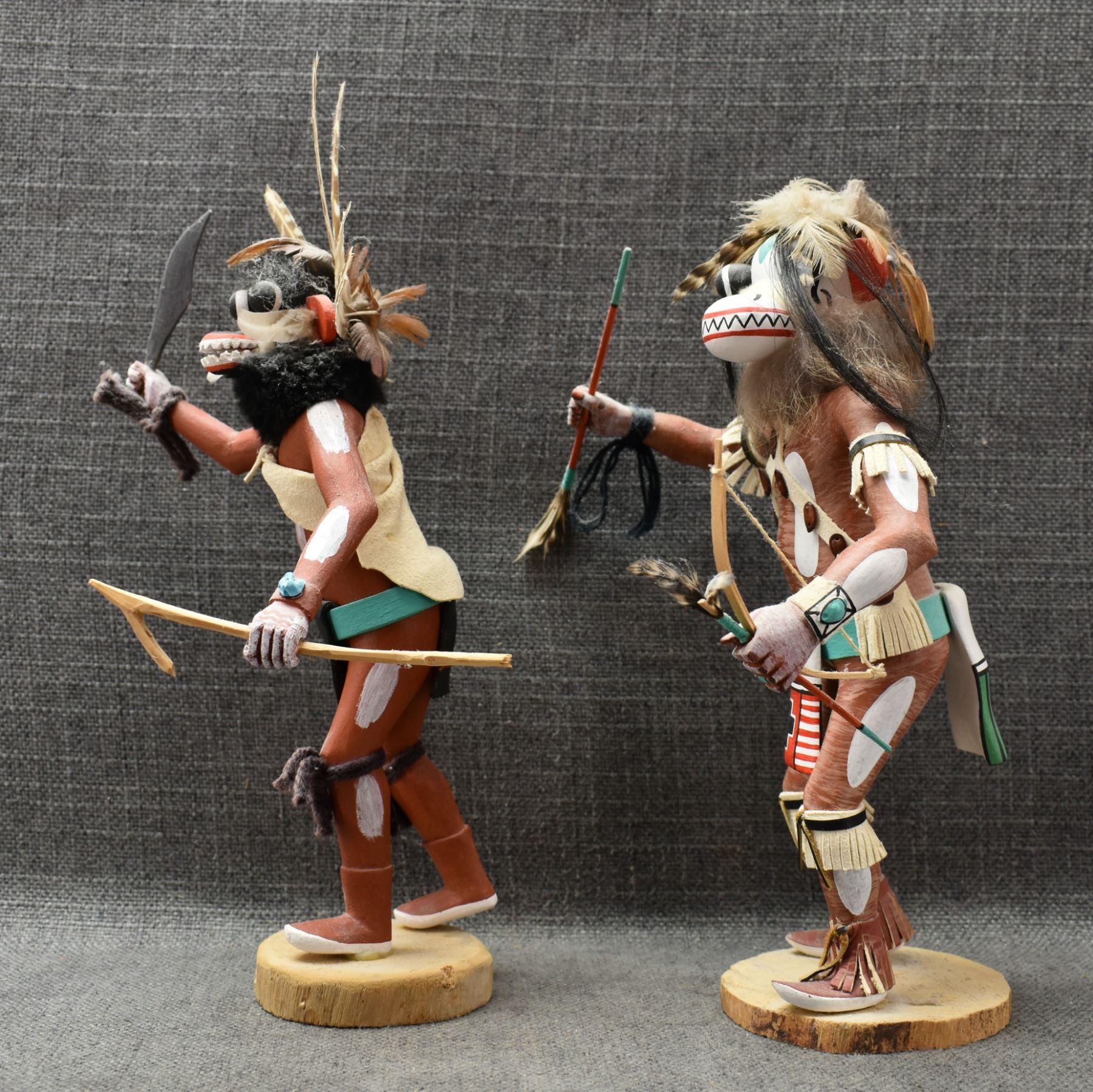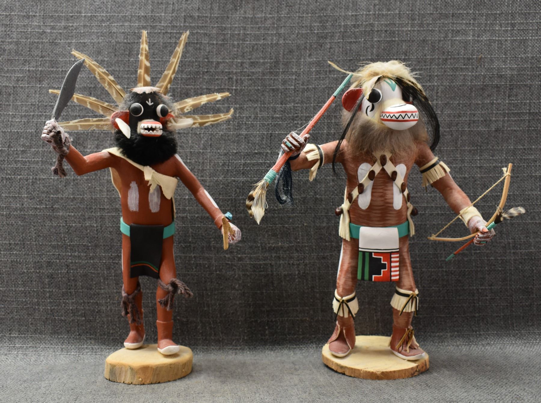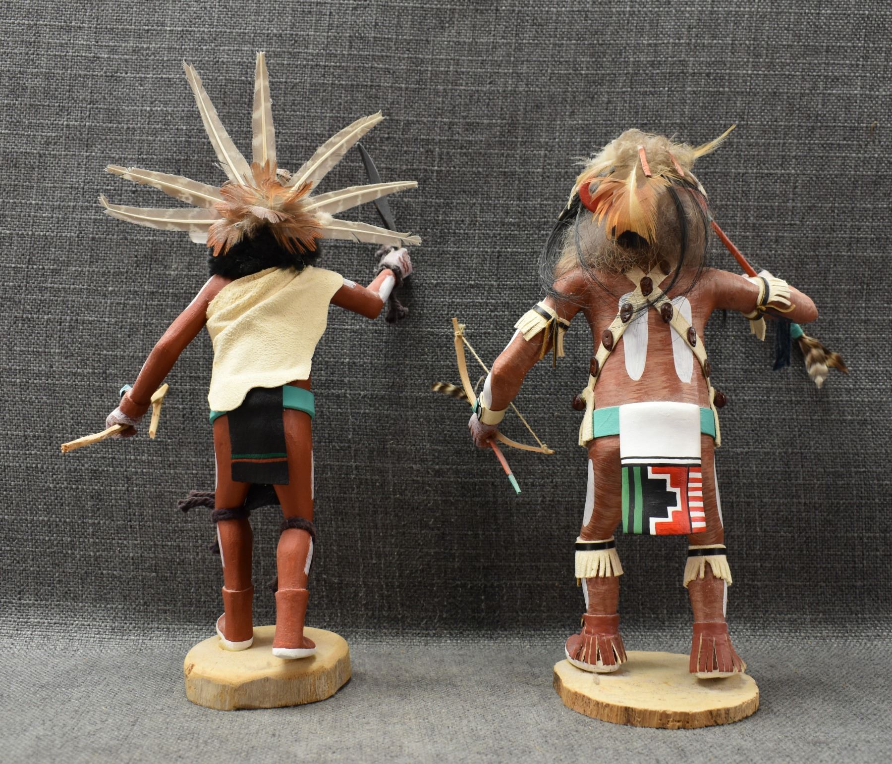 1980's Navajo hand carved wooden dolls.10'' and 12'' tall