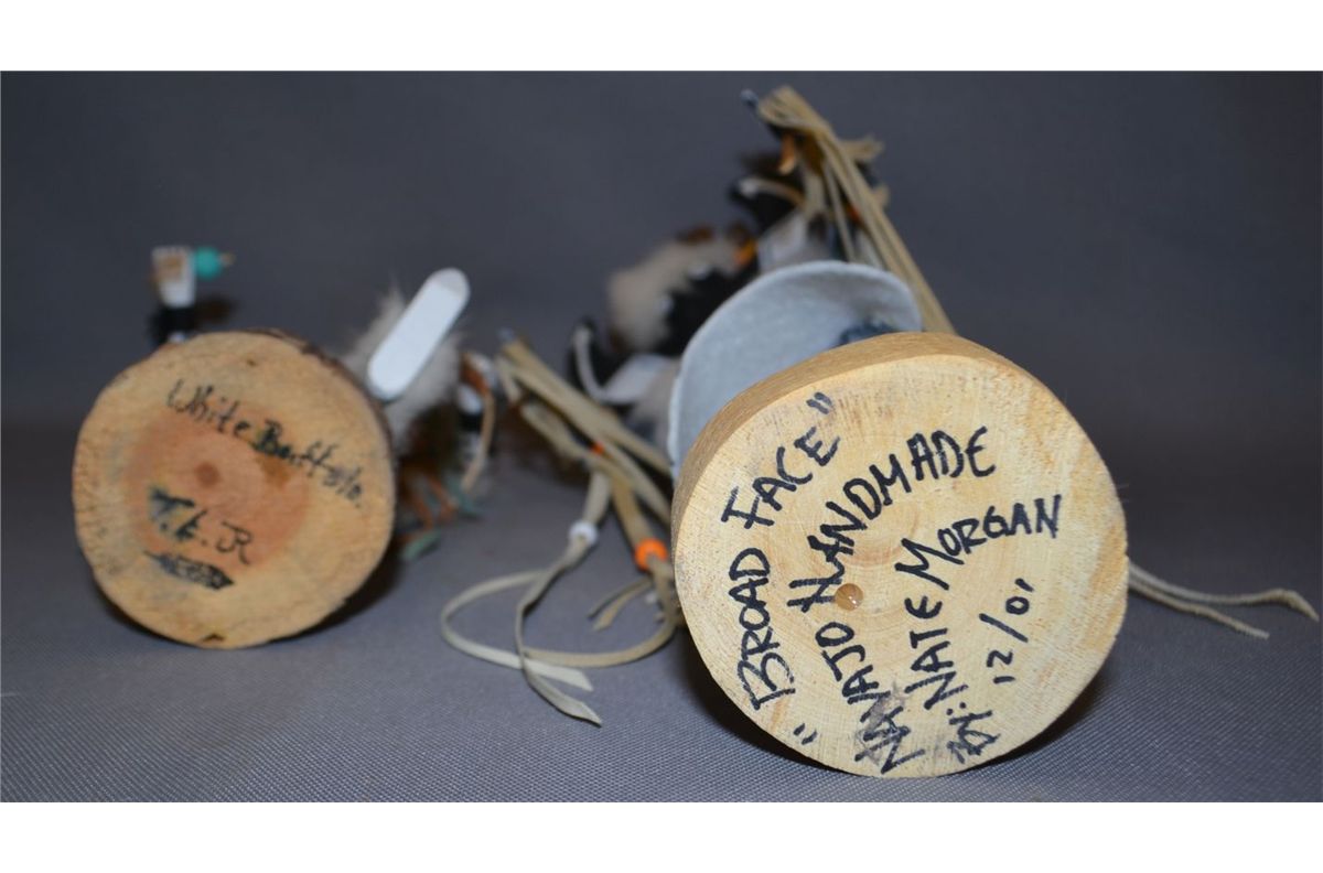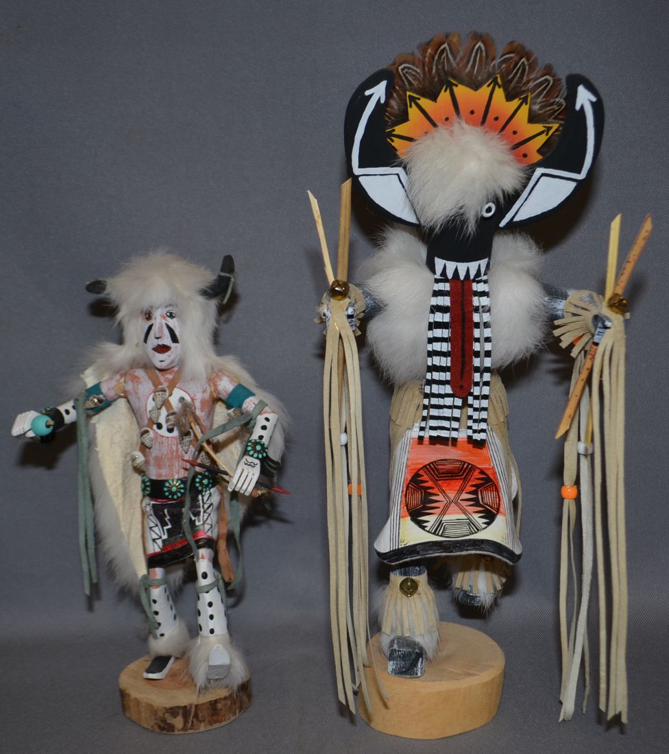 1990s 2000s hand carved and painted large one signed Nate Morgan 2001 14" tall short one signed TL JR 10" tall