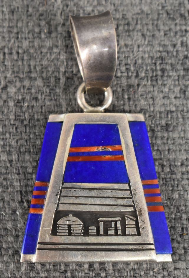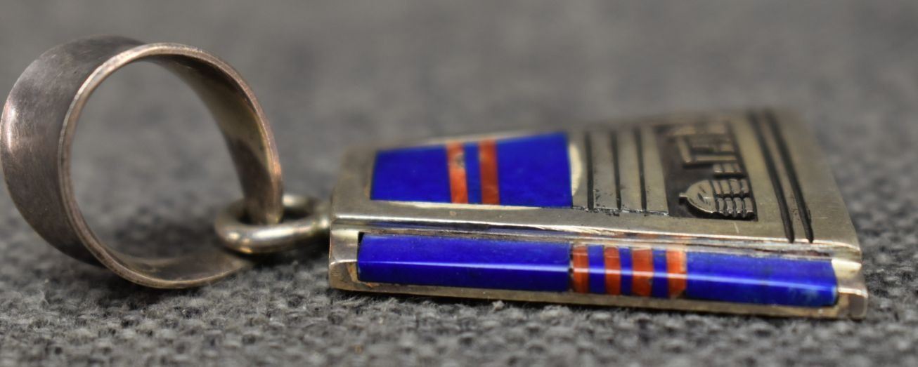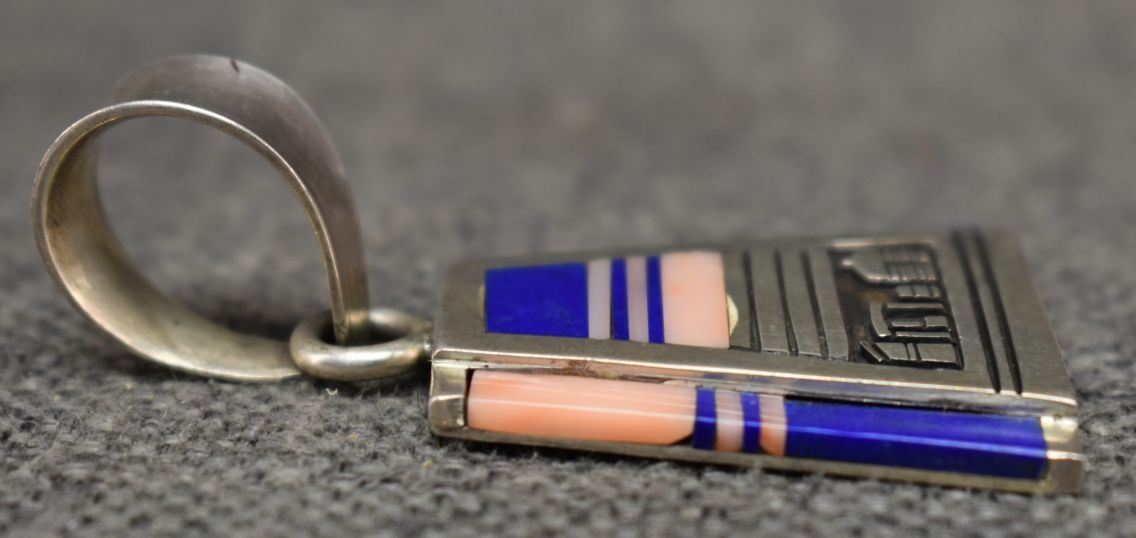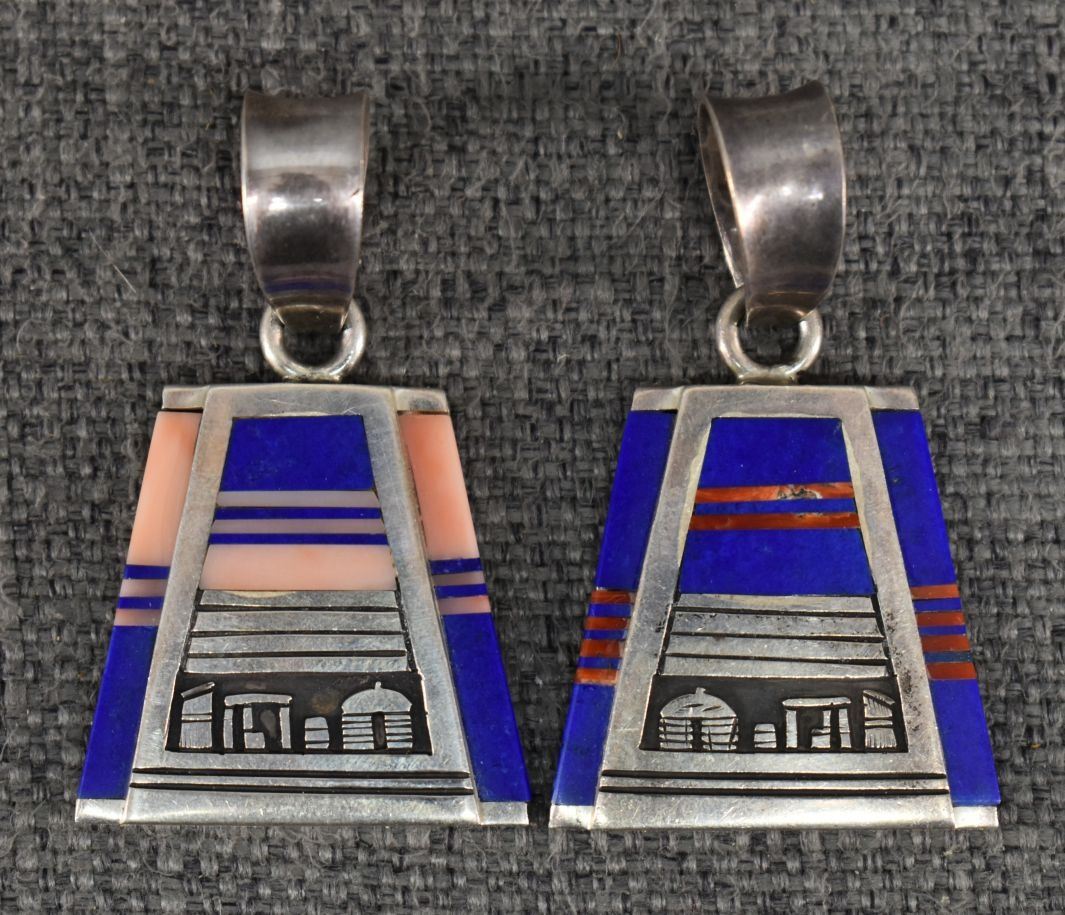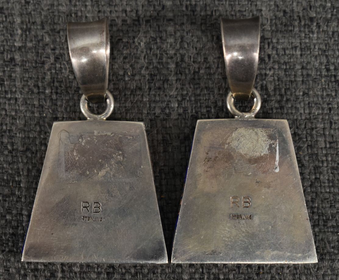 1990's Navajo. Two sterling silver pendants signed R.B. 2.5'' x 1.5''. Total weight 50 grams