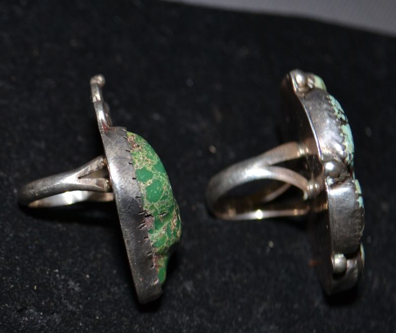 1970s 80s sterling Silver one single turquoise stone size 3.5 cluster turquoise one size 6
