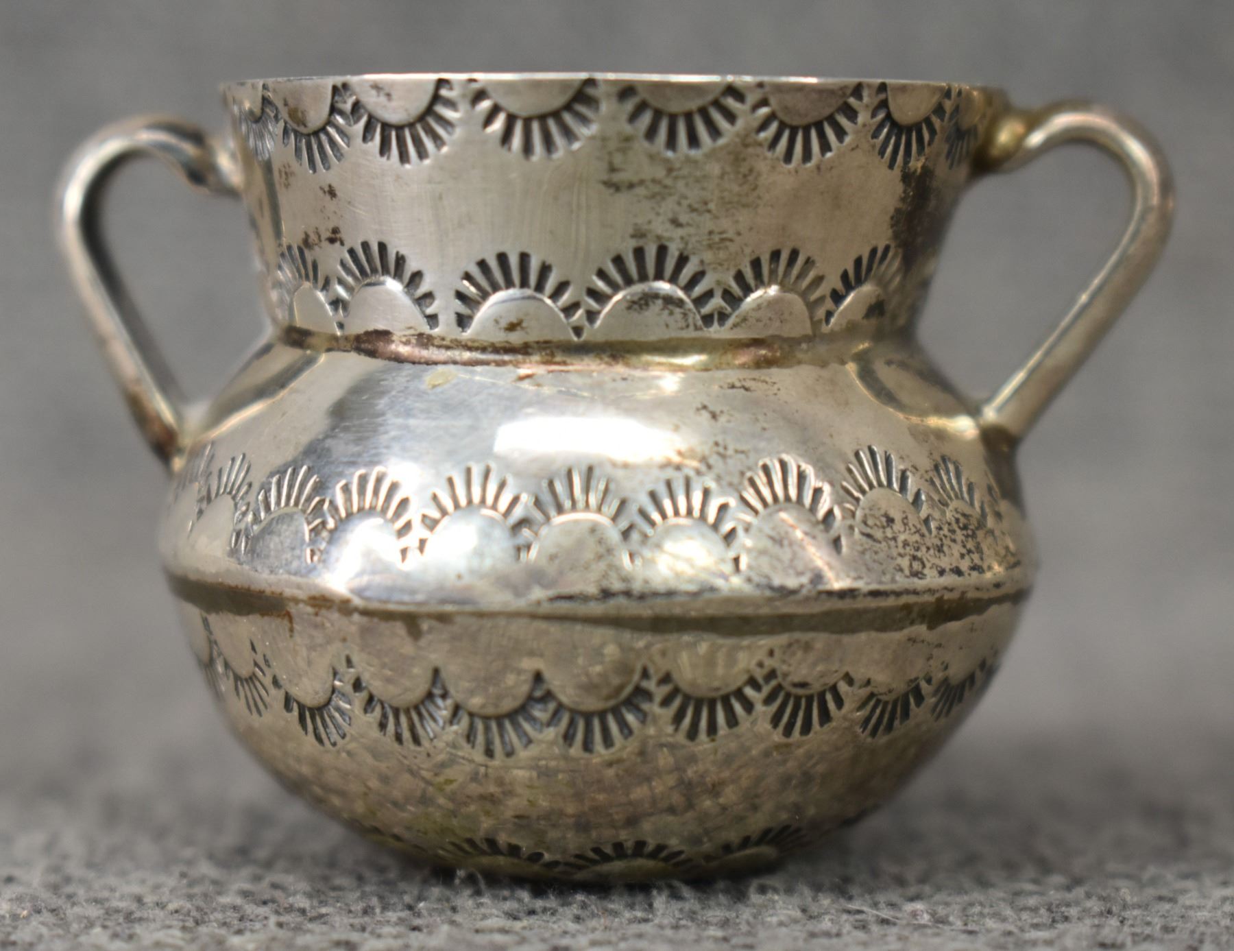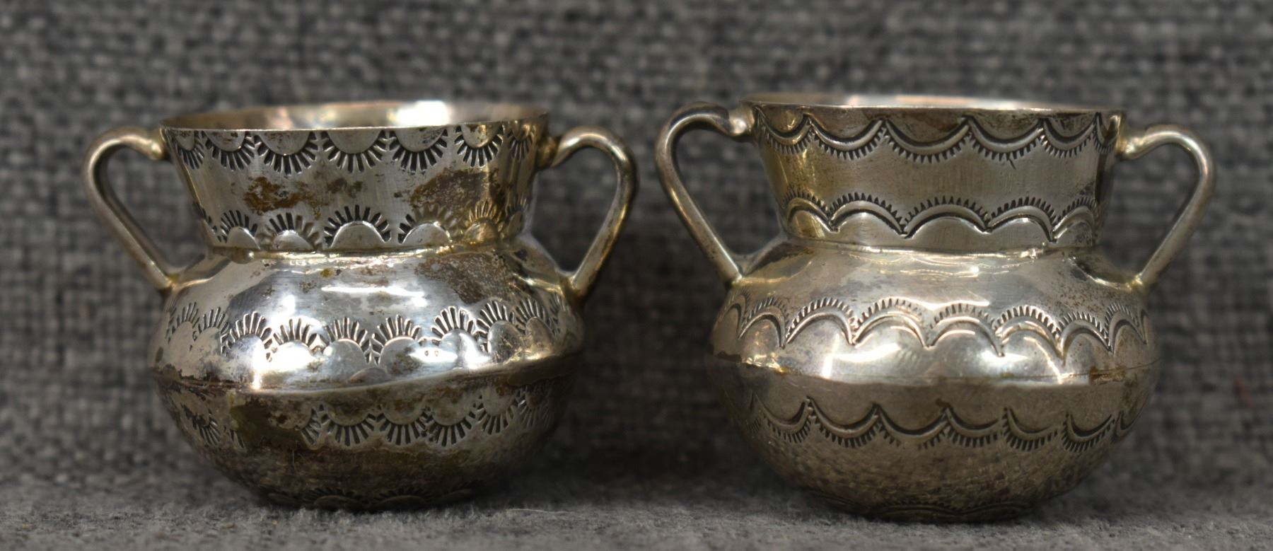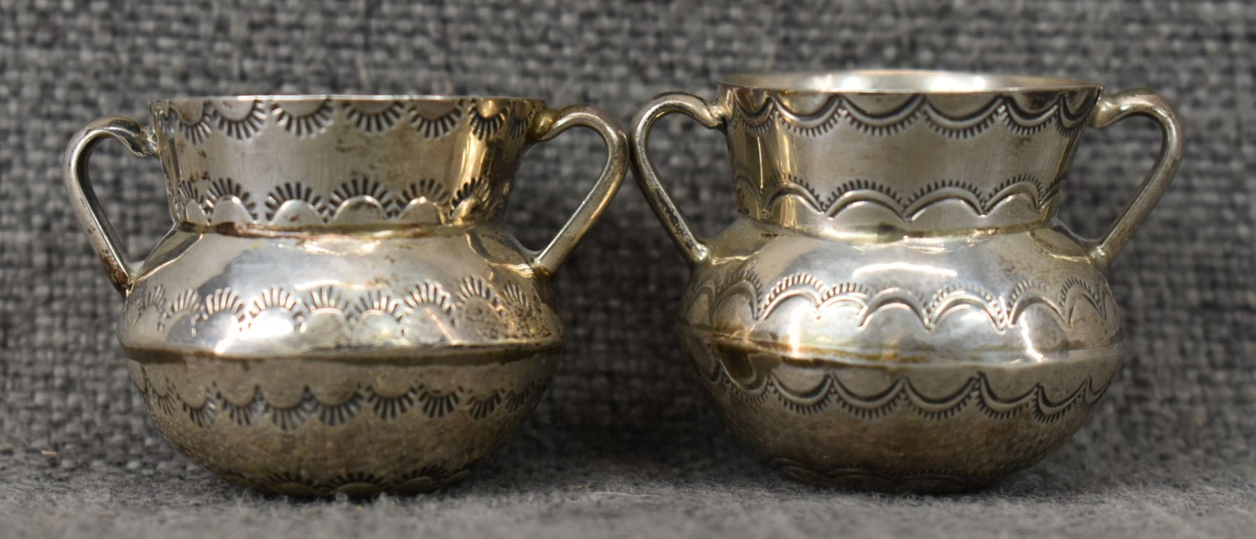 1970's Navajo, sterling silver hand made with stamped design, 1.5" x 2" total weight 49 grams