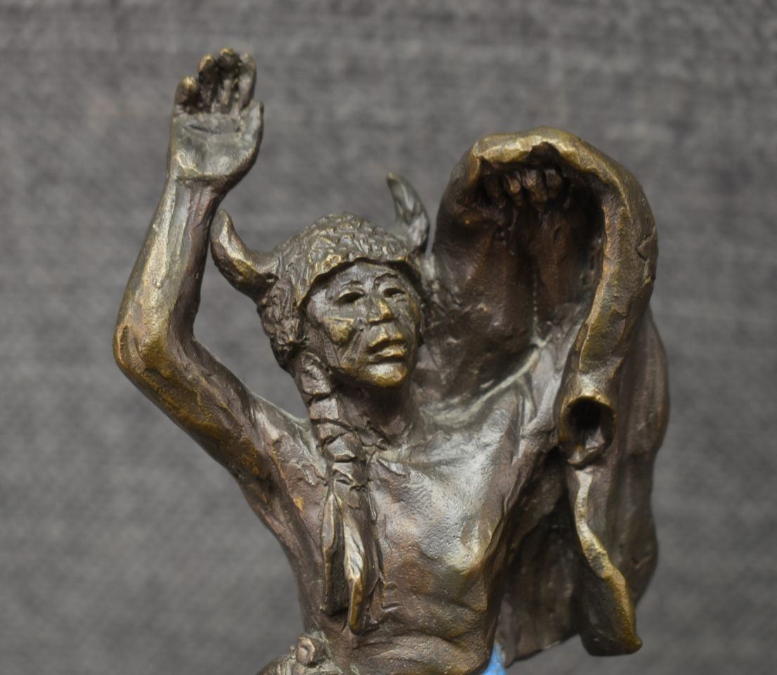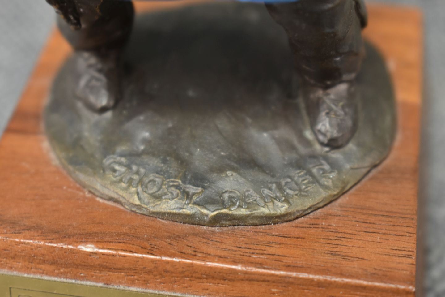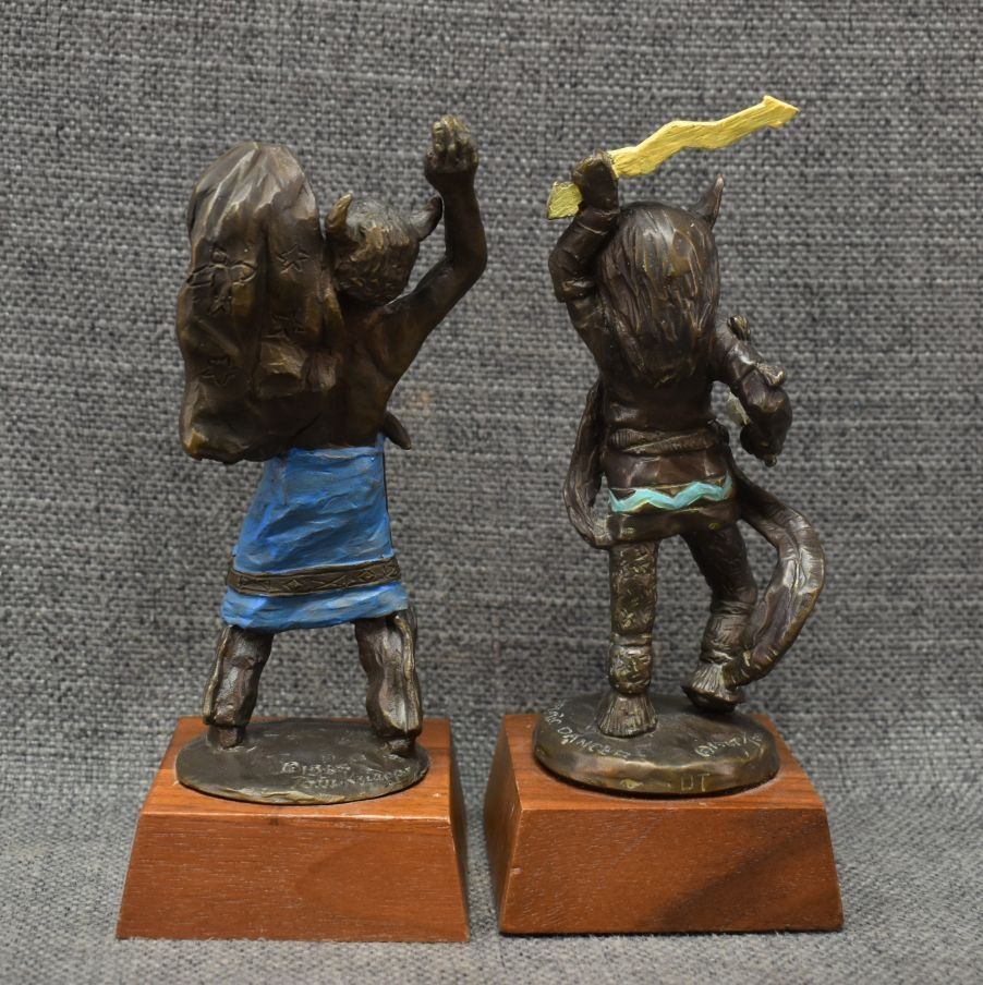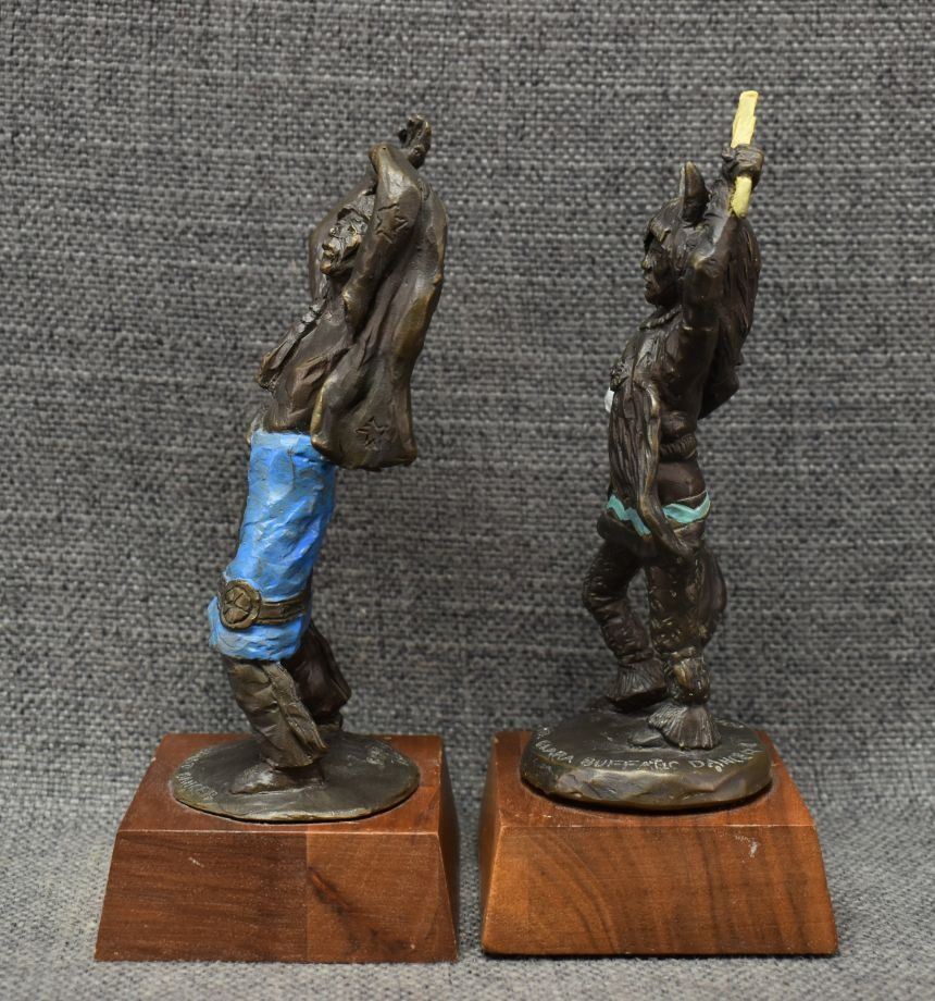 1980's New Mexican, Cast Bronze titled "Santa Clara Buffalo dancer" and "Ghost Dance" by Tom Knapp. Largest 6" x 2.75" x 2.75" including base