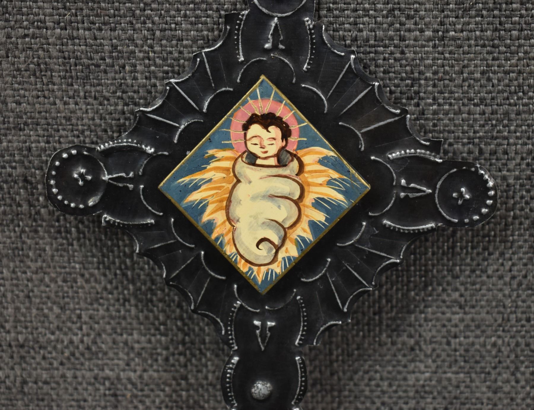 2011 New Mexican, hand punched tin cross 5.25" x 4.25" picture frame 6" x 3" by Nicholas Madrid