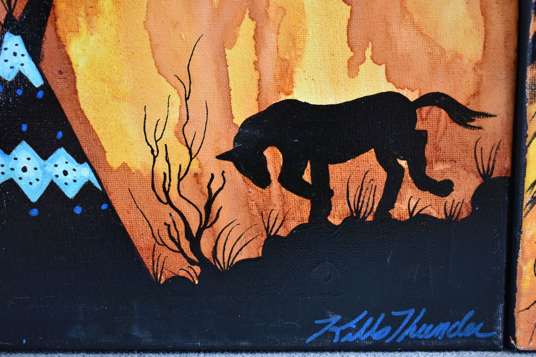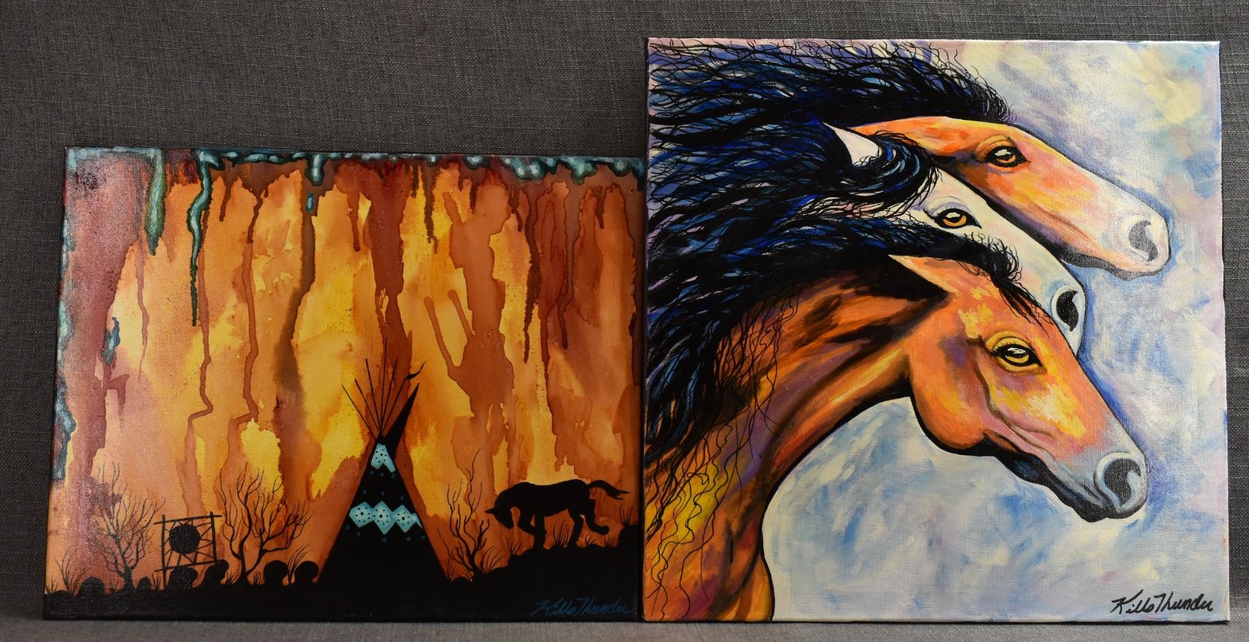 2016's Two original paintings on canvas. Signed Killsthunder. 20'' x 20'' and 16'' x 20''