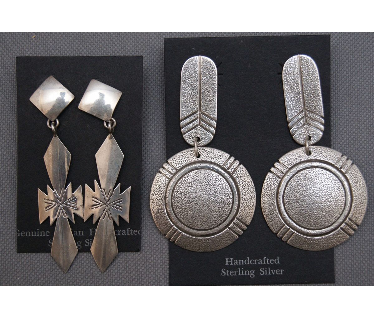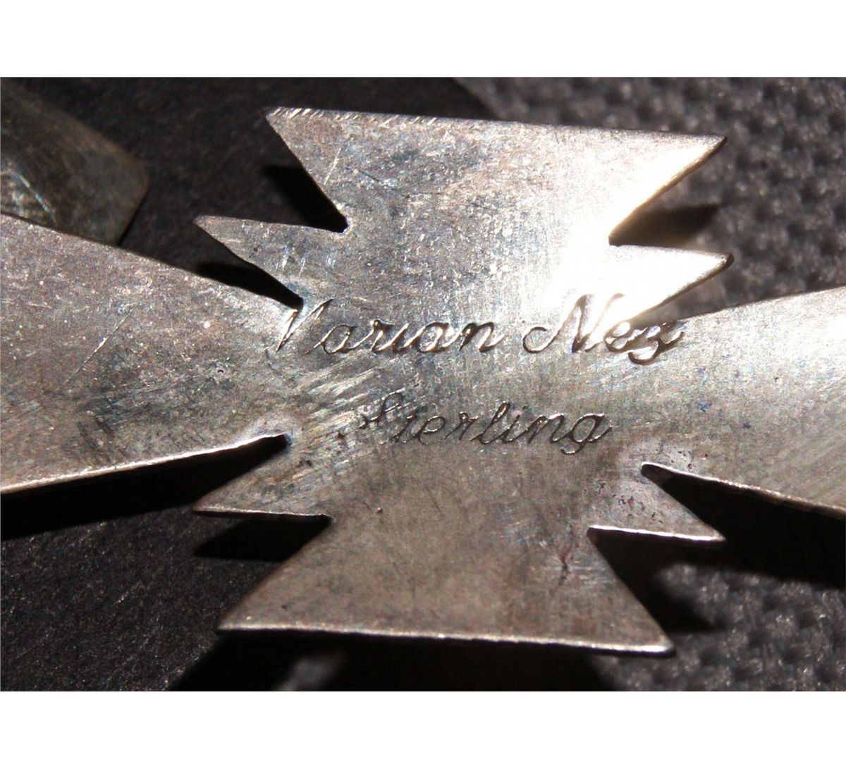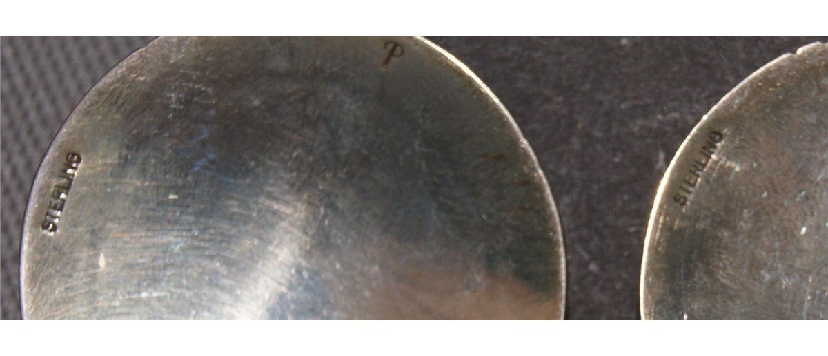 1980s 90s sterling silver stamped design signed Varian Nez 2.75" x .75, cast design signed P 2.75" x 1.5