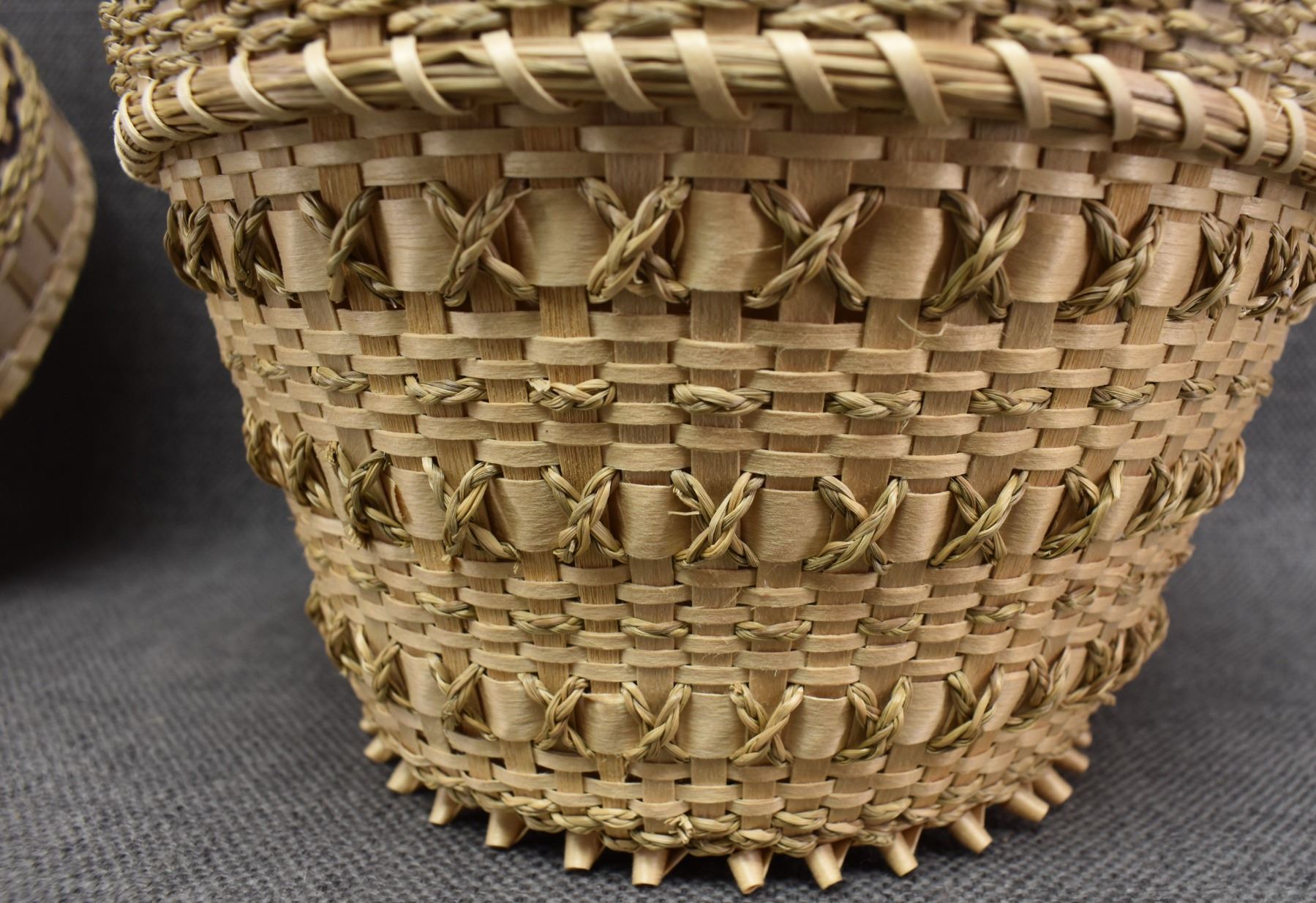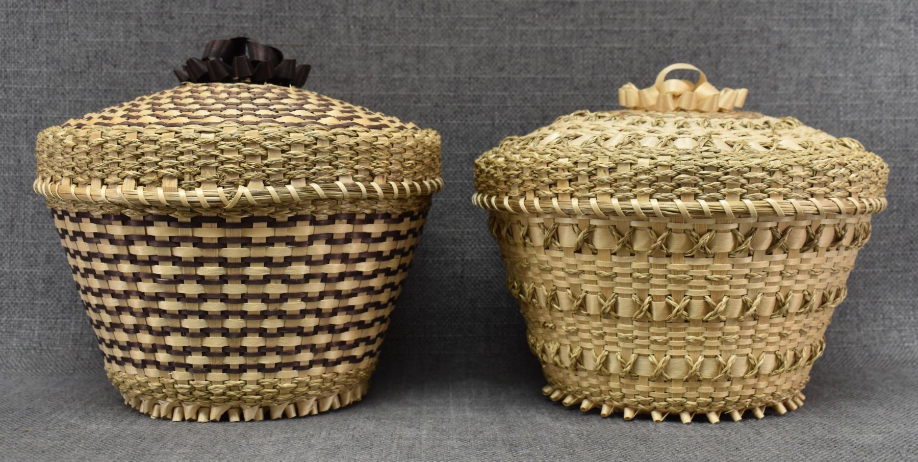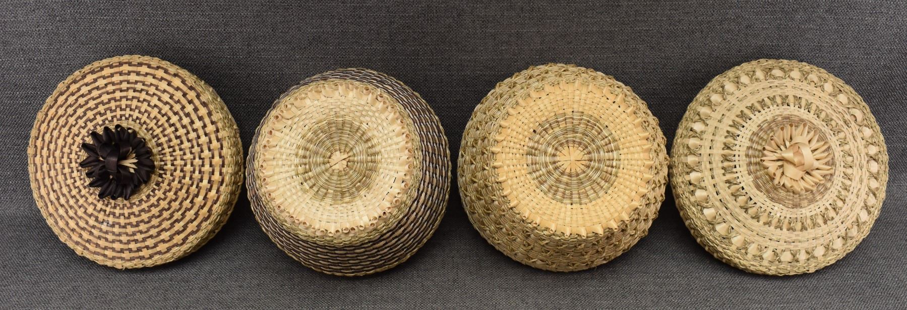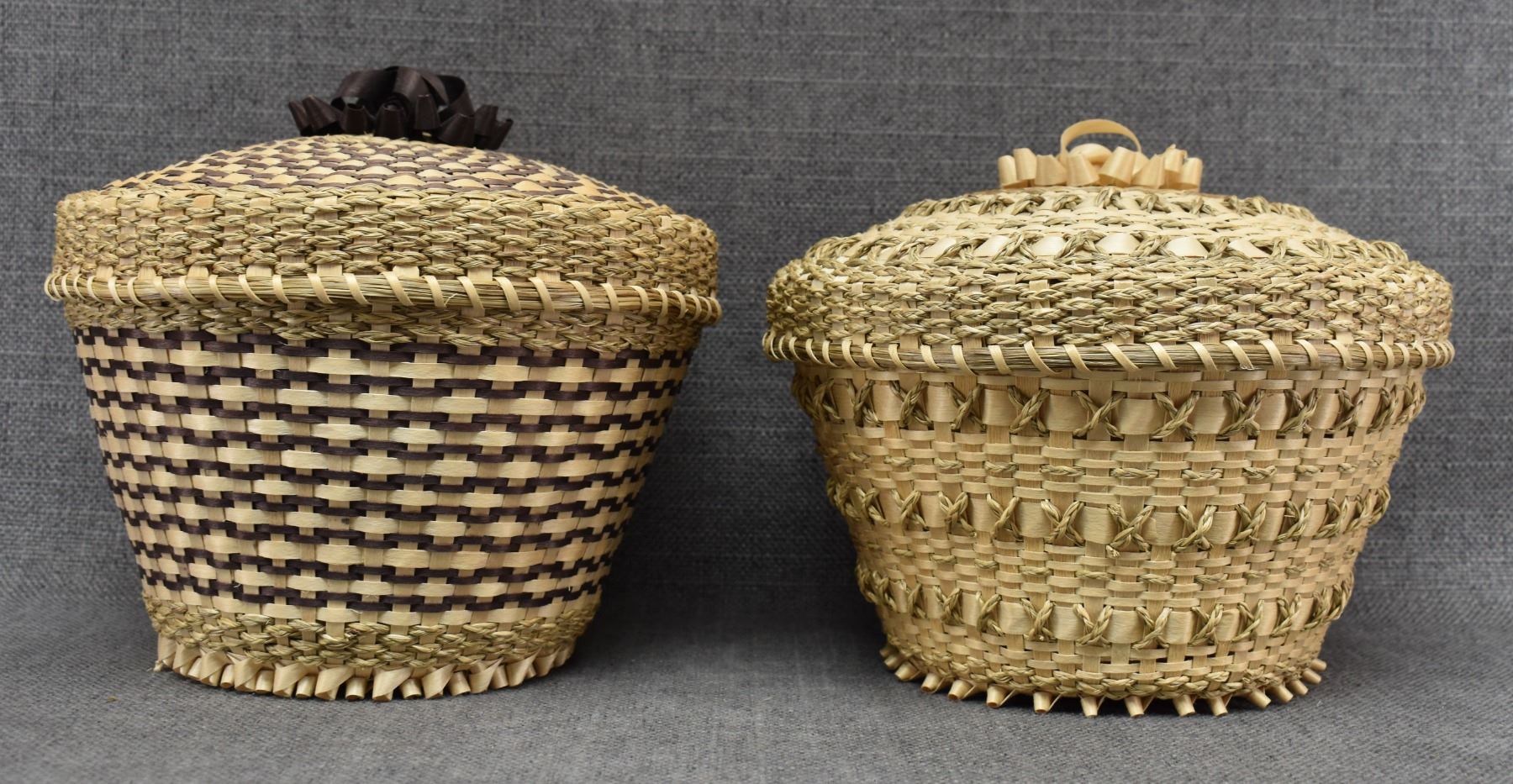 1970's Penobscot. Hand woven lidded baskets. 7'' x 8''