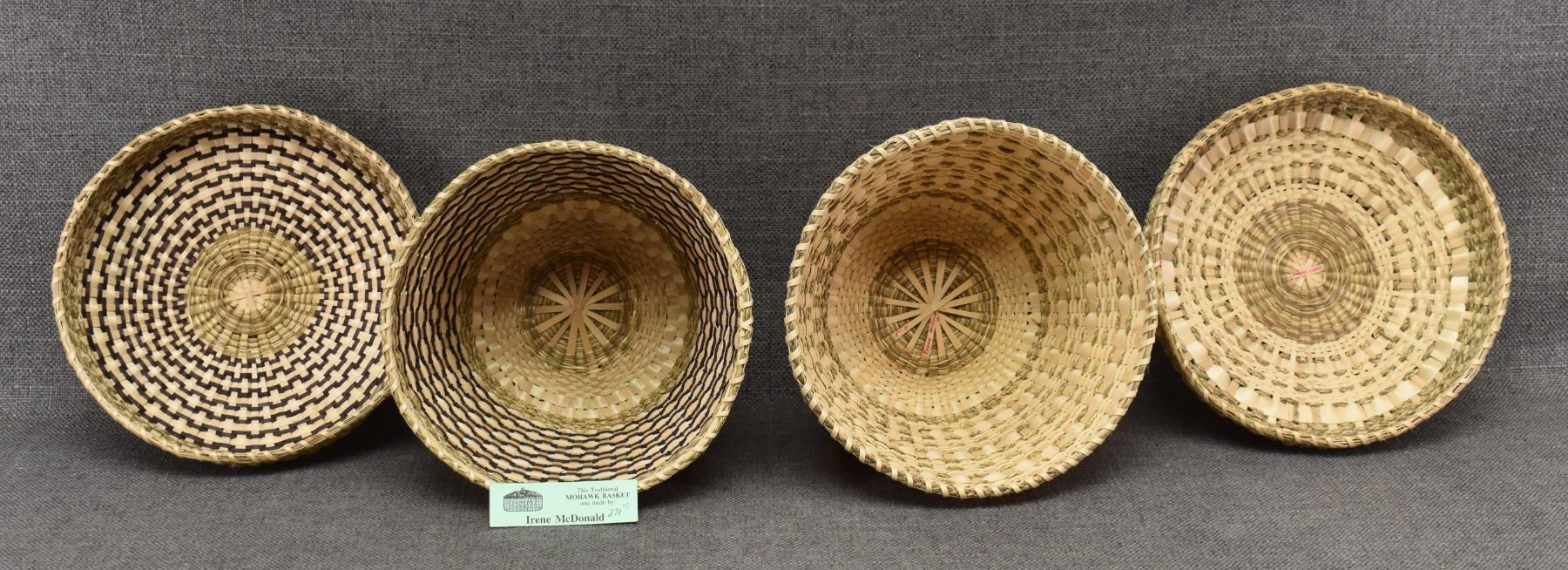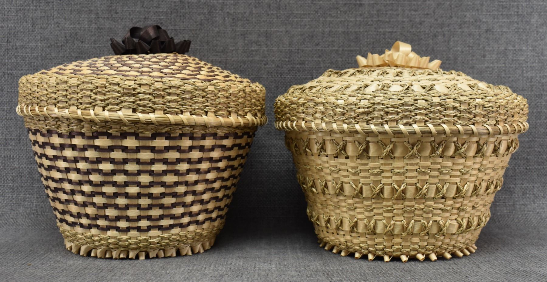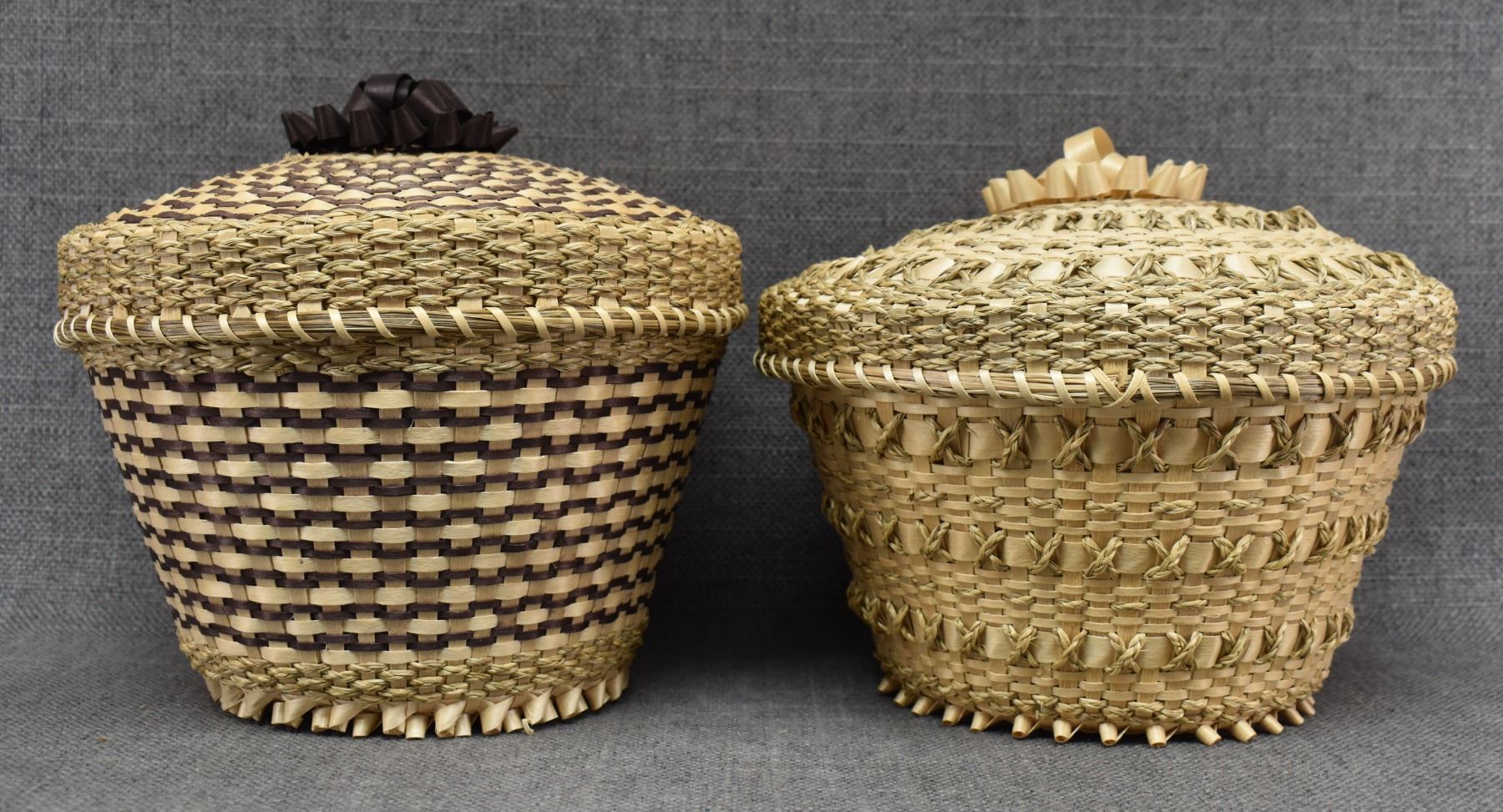 1970's Penobscot. Hand woven lidded baskets. 7'' x 8''