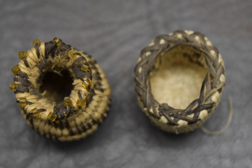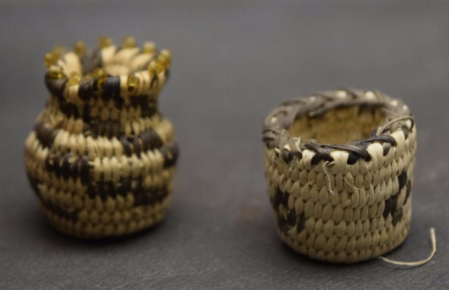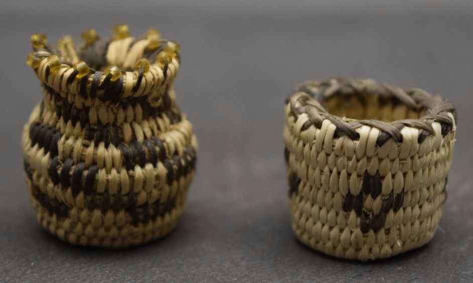 1970's hand woven geometric design of willow .75''x .75'' and 1'' x .75''