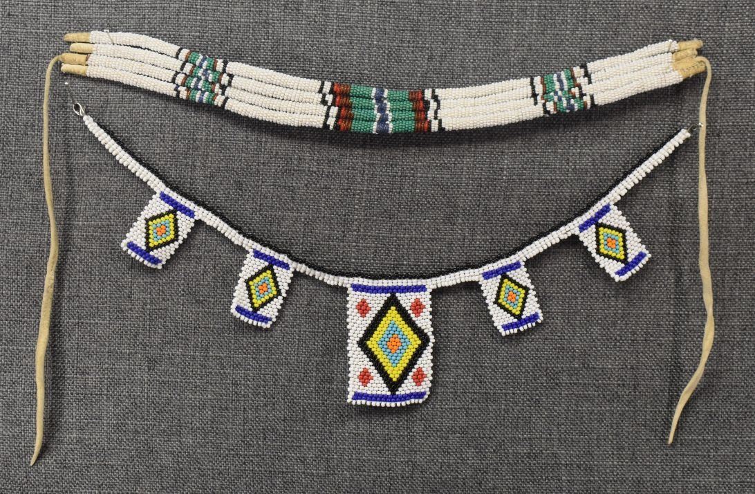 1980's Plains Indian, beaded chocker 1" x 15.5", loom beaded chocker 17" long